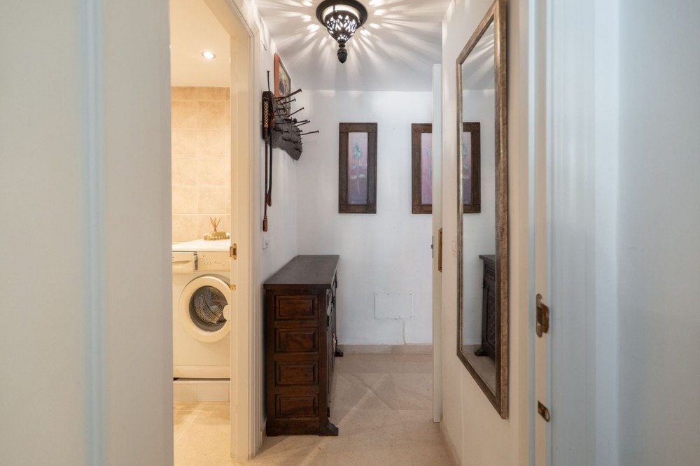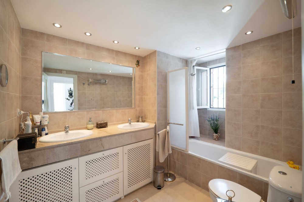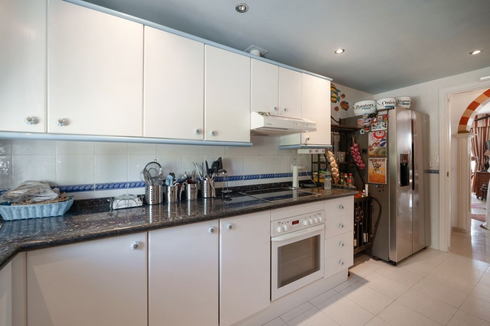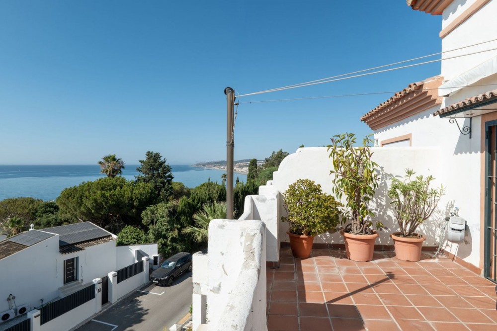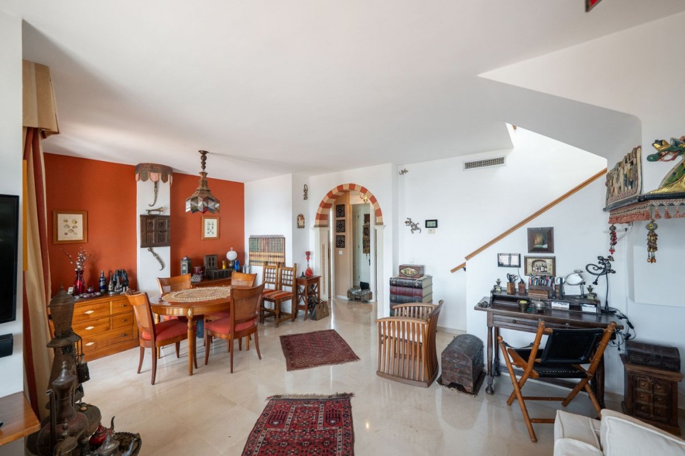 - Townhouse with panoramic sea views in Casares”. Located in the residential complex Terrazas de Bahía, this townhouse offers a rare combination of sea views, privacy, and convenient access to daily amenities. Casares Costa is a peaceful and green area with a relaxed atmosphere, situated just 5 minutes from the prestigious Finca Cortesin resort and less than 10 minutes from Estepona town center. The property is within walking distance to the sea, sandy beaches, local restaurants, and other essential infrastructure. It is also close to some of the best golf courses on the coast, as well as luxury hotels and spa facilities. The house comprises three spacious bedrooms and three bathrooms, with an open-plan layout that allows for flexible use of space. Panoramic views of the Mediterranean Sea can be enjoyed from the terraces and balconies. The interior features charming Andalusian details, which can be preserved or redesigned during renovation. An ideal opportunity for those looking for a permanent residence, a second home, or a property with renovation potential in a prime coastal location.