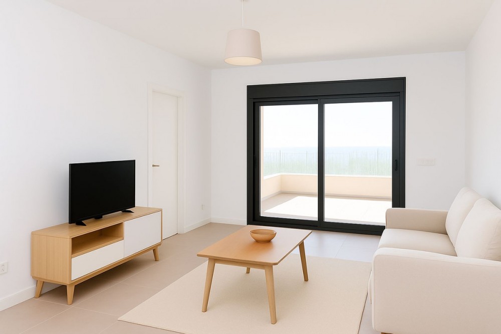 • Modern Apartment with Terrace and Partial Sea Views – Costa Blanca This charming first-floor apartment offers a comfortable Mediterranean lifestyle in one of the most sought-after areas of the Costa Blanca. Located just a few minutes from the beach and with easy access to all amenities, it is ideal as a permanent residence, second home, or holiday rental investment. The property features 2 bedrooms and 2 bathrooms, distributed across a modern, functional space filled with natural light. A standout feature is its private terrace—an ideal place to relax and enjoy the pleasant year-round climate, with partial sea views and natural surroundings. Specifications include: Furnished kitchen with ceramic hob, sink, and extractor hood Fully fitted bathrooms with furniture and shower screen Built-in wardrobes with interior fittings Double-glazed windows and motorized shutters Excellent quality materials and finishes Located in a quiet residential development with landscaped gardens and a peaceful atmosphere, this apartment combines comfort, design, and proximity to the sea—perfect for fully enjoying the Mediterranean lifestyle.