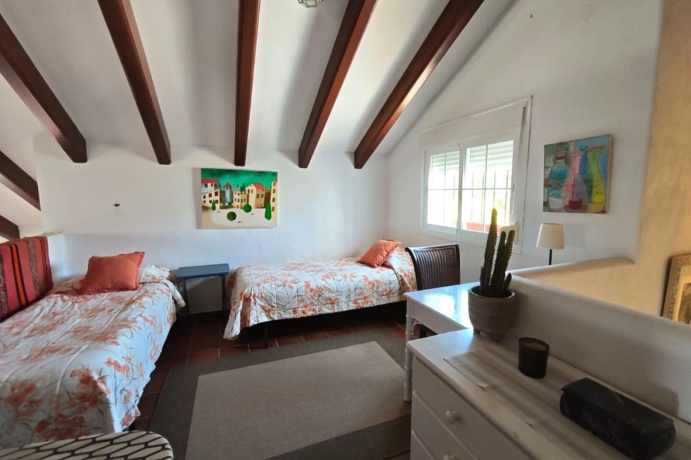 - Spectacular villa in an elevated position with stunning panoramic views of the Mediterranean Sea and the mountains. Located in the Padrón area of Estepona, surrounded by nature and just 10 minutes by car from Estepona, where you will find all kinds of services such as restaurants, bars, hotels, and supermarkets. The house is spread over two floors, featuring 4 bedrooms and 4 bathrooms, 2 living rooms, and 2 kitchens (separated with independent entrances), ideal for hosting family or friends. It also includes a completely open basement of 105m2, with a kitchen and bathroom, which also has an independent entrance, with possibilities to build a home cinema, game room, or another independent apartment. The views from both the terraces and porch are incredible. The possibilities of this magnificent house are fantastic. In the outdoor area, there is a swimming pool, 2 porches, parking space for several cars, and the remainder of the 4037m2 of land that the property possesses. The property has a tourist license. The best option on the market, don't miss it. Come and see it!