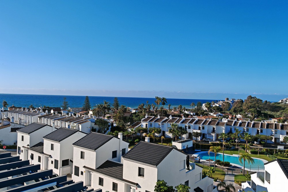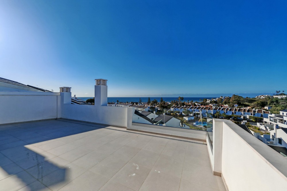 - Duplex Penthouse for sale in Arroyo Vaquero, Estepona with 4 bedrooms, 3 bathrooms, 2 en suite bathrooms, 1 toilet and with orientation south, with communal swimming pool, private garage (1 parking spaces) and communal garden. Regarding property dimensions, it has 182 m² built and 149 m² terrace. Has the following facilities amenities near, transport near, air conditioning, central heating, fully fitted kitchen, fireplace, guest room, storage room, alarm, double glazing, video entrance, dining room, private terrace, kitchen equipped, living room, sea view, security shutters, laundry room, covered terrace, fitted wardrobes, garden view, beach side, close to children playground, close to sea / beach, glass doors, balcony, optional furniture, excellent condition, close to town and surveillance cameras.