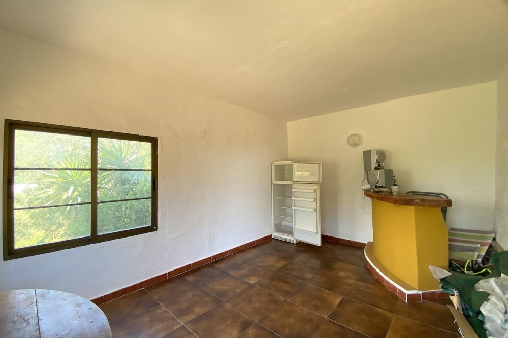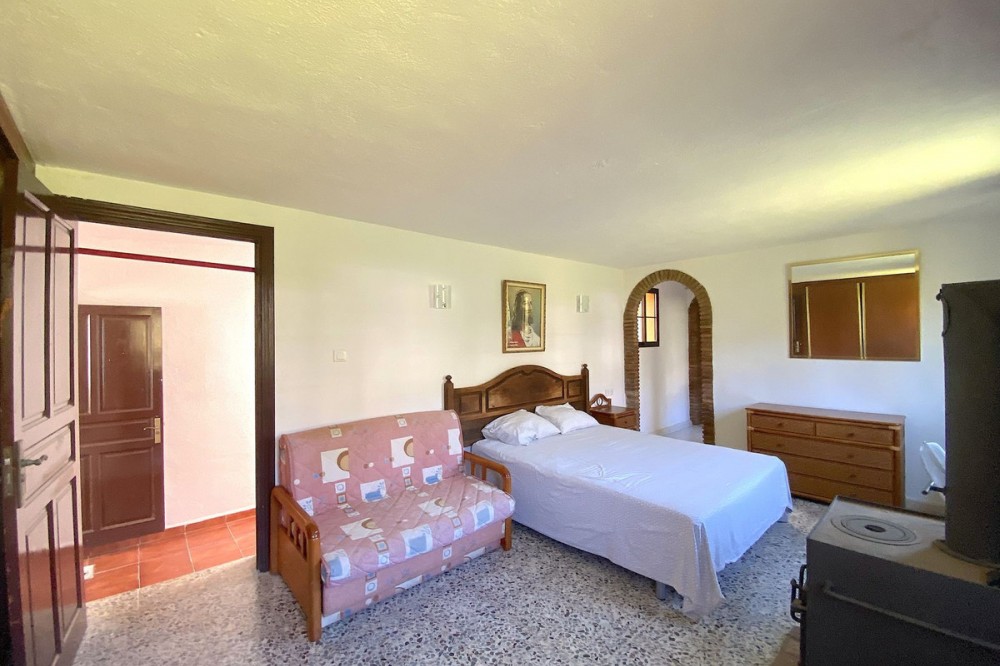 - Investment opportunity! Authentic Andalusian finca near Mijas Pueblo. The robust finca has a south orientation, offering on the ground floor three bedrooms, two bathrooms, a spacious living room with a fireplace, a separate dining area with another fire place, a fully fitted kitchen with a separate laundry/utility room and an office space. Below there is a separate guest apartment with a bedroom and a bathroom, the second room can be a sitting area or another bedroom. Both rooms have a south-west orientation with views to the green area around the property. The property has an east-facing patio and a private garden with pool. There is also a water well. This charming property was build in 1967 and is in need of some renovation. Very interesting is that the property comes with a 21.000 m2 plot. There is the possibility to build stables as you can keep horses here. It is also urban land so it is possible to build more properties on the land. The plot is easy accessible and just a few minutes drive to the picturesque white village of Mijas. Must be seen!