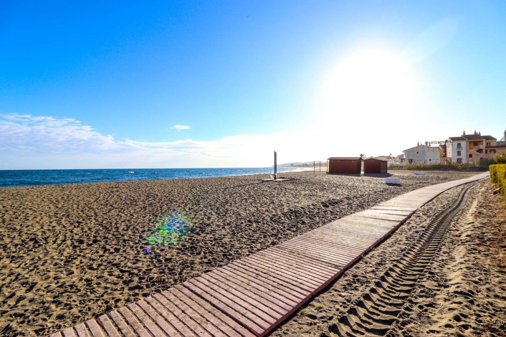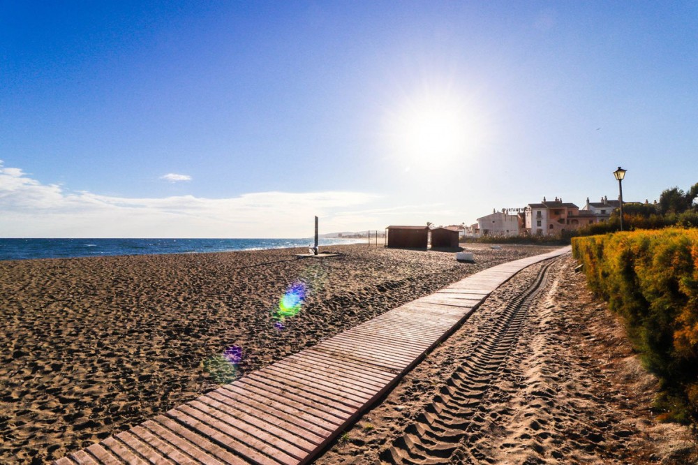 - Absolutely beachfront, with uninterrupted panoramic sea views, this completely renovated apartment in Casares Costa sits directly on the beach promenade, offering the perfect blend of modern comfort and unbeatable coastal lifestyle. Stylishly refurbished throughout, it combines elegant contemporary design with one of the most sought-after locations on the Costa del Sol. The apartment features a bright open-plan living area with floor-to-ceiling sea views and direct access to a private terrace and garden, just steps from the sand. The modern open-plan kitchen is fully equipped and seamlessly integrated into the living space, ideal for relaxed seaside living or entertaining guests. Currently configured as a one-bedroom apartment, the clever layout allows for an easy conversion into two bedrooms, making it suitable for couples, small families, or investors seeking flexibility. The bedroom includes built-in wardrobes, and the property is equipped with air conditioning, heating, and high-speed internet for year-round comfort. A valuable feature is the private storage area, perfect for keeping beach equipment such as paddleboards, kayaks, or kiteboarding gear. A private parking space is also included. Located within a secure gated beachfront community, the property enjoys south-facing orientation for maximum sunlight all day long. With the beach and promenade right at your doorstep, there’s no need for a pool — you can step out and enjoy the sea whenever you wish. Its prime location puts you within walking distance of numerous restaurants and beach bars, including the well-known La Sal Chiringuito. A short, pleasant walk along the promenade takes you to San Luis de Sabinillas, a charming coastal town offering every amenity — shops, supermarkets, pharmacies, schools, cafés, and bars. With Estepona and Marbella only a short drive away and excellent road connections to both Malaga and Gibraltar airports, this property is ideal as a permanent residence, holiday home, or high-demand rental investment. A truly unique frontline beach opportunity on the Costa del Sol.