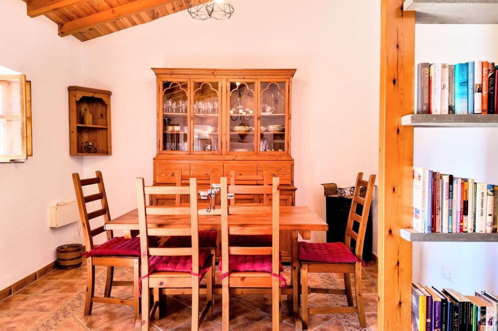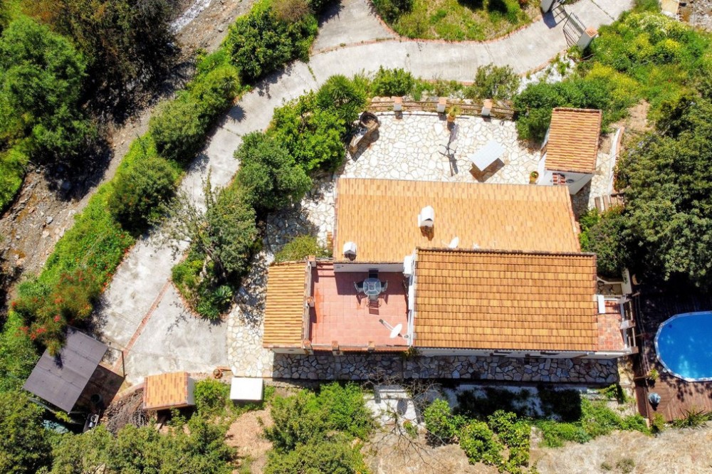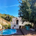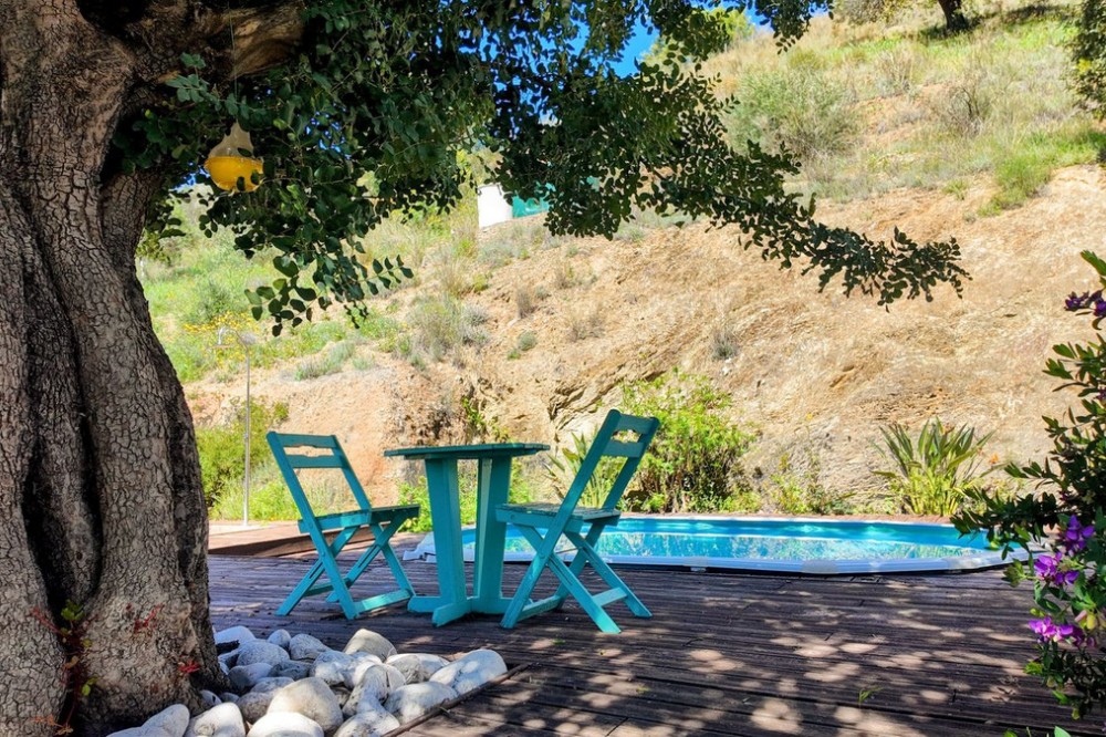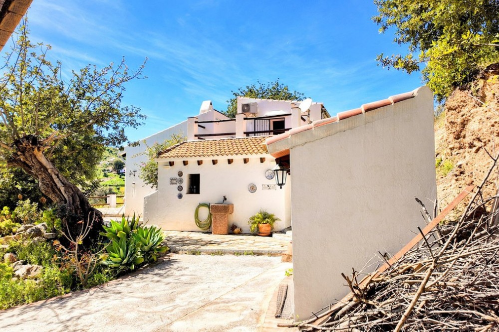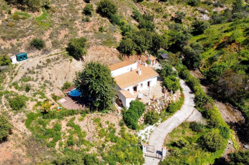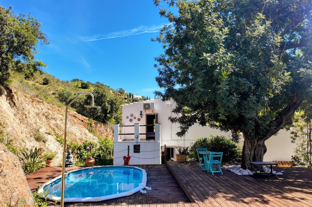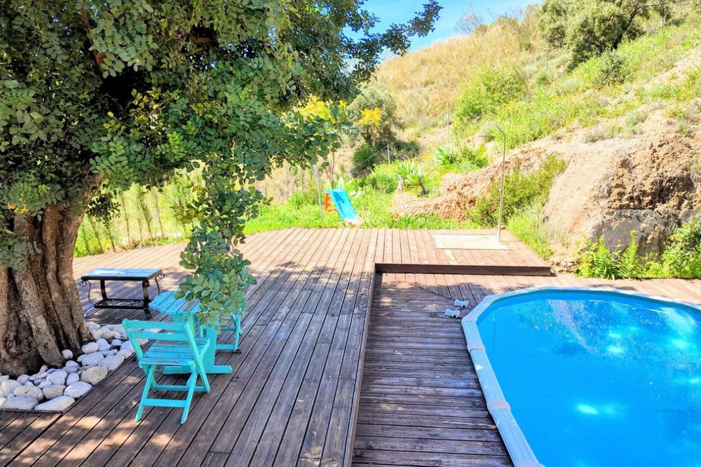 - This charming property features a spacious 3-bedroom, 1-bathroom house with two levels, located in the peaceful Barranco del Sol neighborhood. only 25 min drive to Malaga The house is well-maintained and offers a range of desirable amenities, including access to city water and electricity, as well as a 3000-liter water tank for backup. The living area is bright and inviting, with a cozy sitting area, dining space, and a charming stove and fireplace to create a warm atmosphere. The fully equipped kitchen includes a stove, dishwasher, and two refrigerators, with a door leading directly outside for easy access to the outdoors. The bathroom is fitted with a bath, shower, sink, and heated floor. Outside, you'll find a covered terrace, perfect for both winter and summer use. There's a door leading to the garden, where you'll discover the inviting pool area, along with a shower next to the pool for convenience. The master bedroom has its own private terrace with a door leading to the garden, offering stunning views. Upstairs, two additional bedrooms each have their own terraces, offering beautiful views of the valley and the pool area. The second bedroom has direct views of the pool. Additionally, there's a laundry room and a storage area for extra convenience. The property is easily accessible, with a 200-meter driveway and a stream running along the property, enhancing the natural charm. The municipality is also planning to repair the road for improved access. This property offers ample parking space and is located in a tranquil area with easy access to nearby amenities. It's an ideal home for those looking for a peaceful retreat with beautiful views and plenty of space. Pre-AFO in place