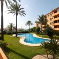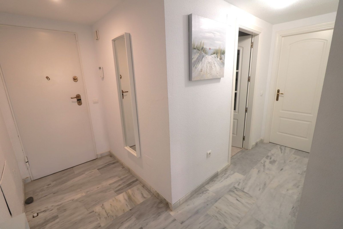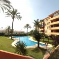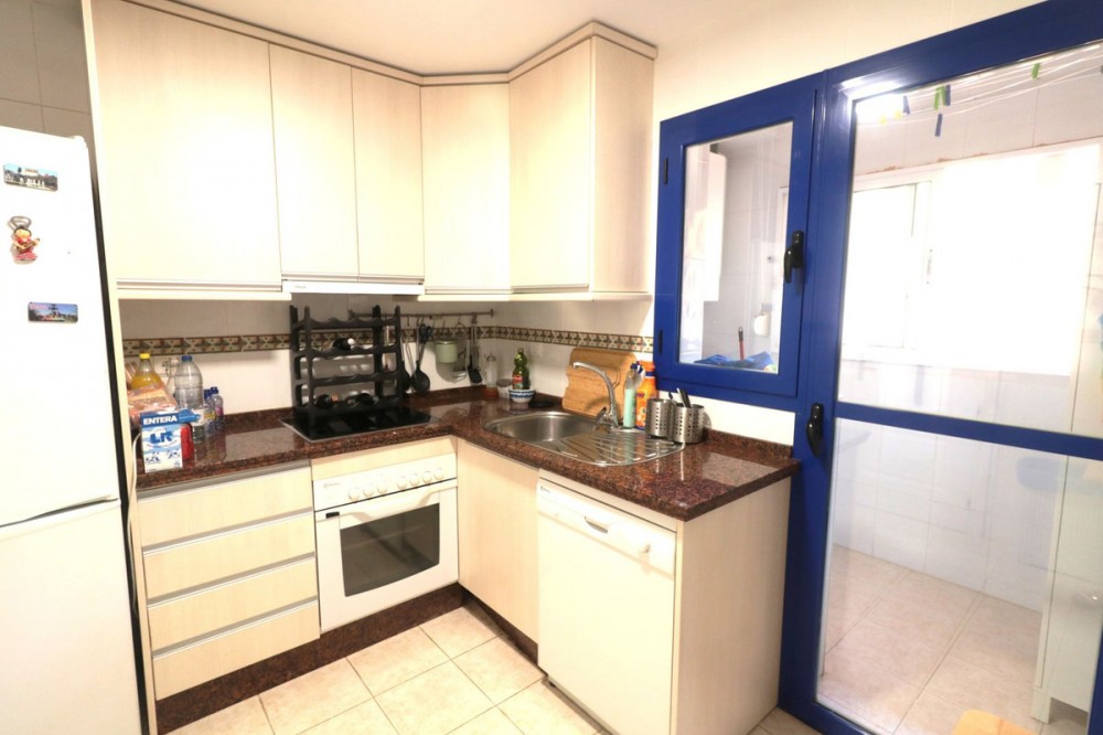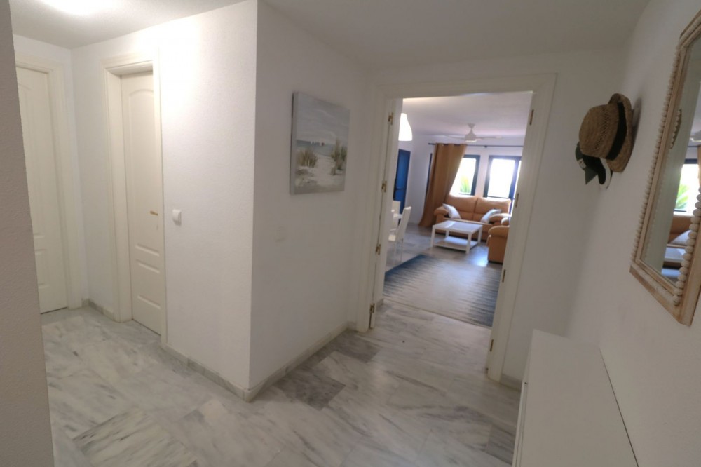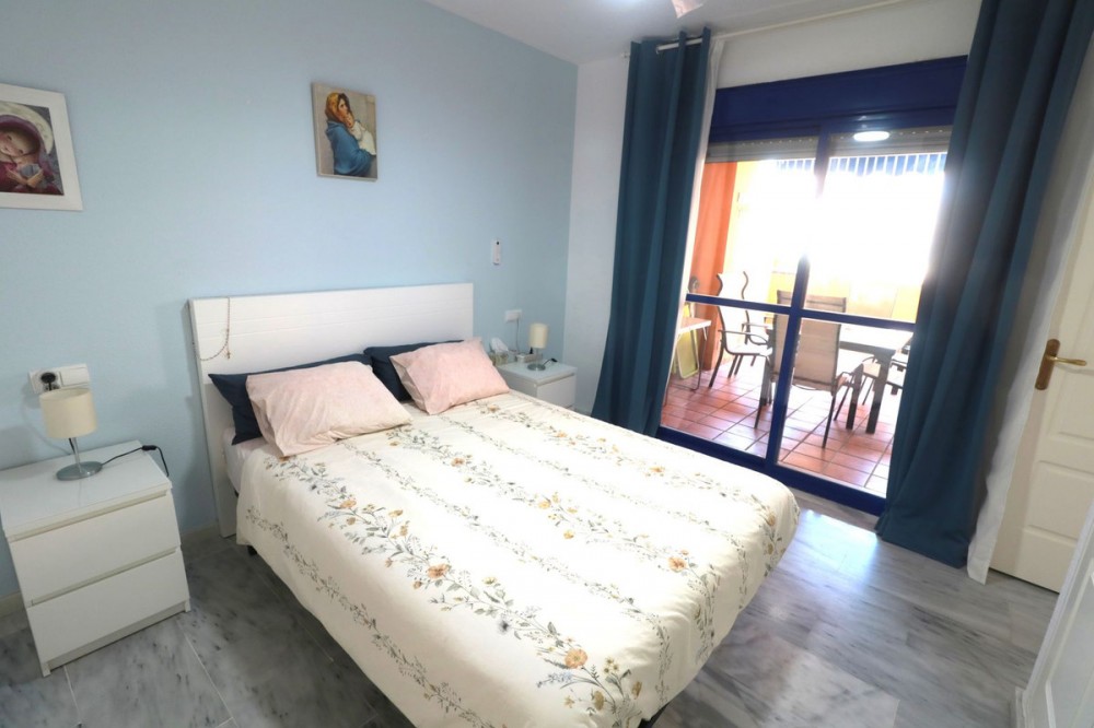 - BEAUTIFUL, very spacious ground floor flat with two bedrooms and two bathrooms, only 100m from the beach! This very well maintained property offers a large enclosed terrace with wonderful views to the pool and to the sea. The flat is very bright, has a spacious living room and two well designed bedrooms as well as two bathrooms - one of them en suite with window. A fully equipped kitchen with utility room makes this property even more interesting. Only a few minutes drive to Sabinillas and Estepona with all amenities. The property is located in a gated complex, with video surveillance, cleaners, gardeners and lifeguard in summer. In addition, beautiful communal tropical gardens, a large swimming pool with sun umbrellas and sun loungers - just a few steps from the sea. The area offers many beautiful beaches, restaurants, shopping centres, golf courses and hiking trails, to enjoy the nature. A great family home or a perfect holiday home with high rental potential. We recommend a visit!
