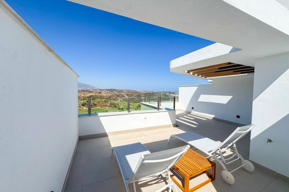 - Spectacular Duplex Penthouse in the Ipanema urbanization of La Cala de Mijas. One of the highest apartments of the complex with panoramic views all over the coast, mountains and Calanova Golf. Only 5 minutes drive to the beach and 10min drive to Marbella, this apartment is the perfect holiday home or investment becuase Airbnb rentals are allowed in the community which counts with many facilities. Living in Ipanema is a lifestyle in itself. The unique architecture that defines the project continues in each of the homes. A display of good taste and beautiful scenery, Ipanema offers a collection of community spaces designed with intimate and elegant landscaping. The complex features two outdoor pools, one with a beach finish, as well as a lagoon within a beautiful garden area. Vegetation plays a key role in creating an environment in which Ipanema's architectural design can flourish. Ipanema's themed paths lead through beautiful green areas to facilities such as the fully equipped professional gym and a private spa with a heated indoor pool, sauna, steam room, and men's and women's locker rooms. The perfect combination of home-like comfort and privacy, along with the services of a high-quality resort.