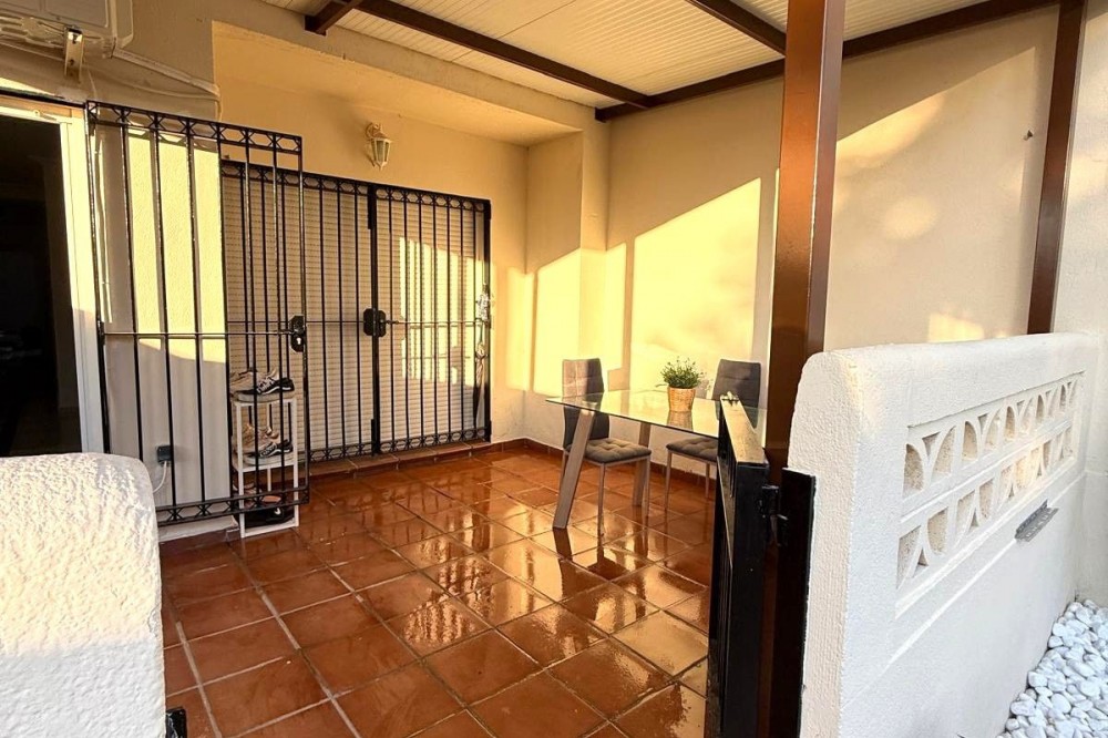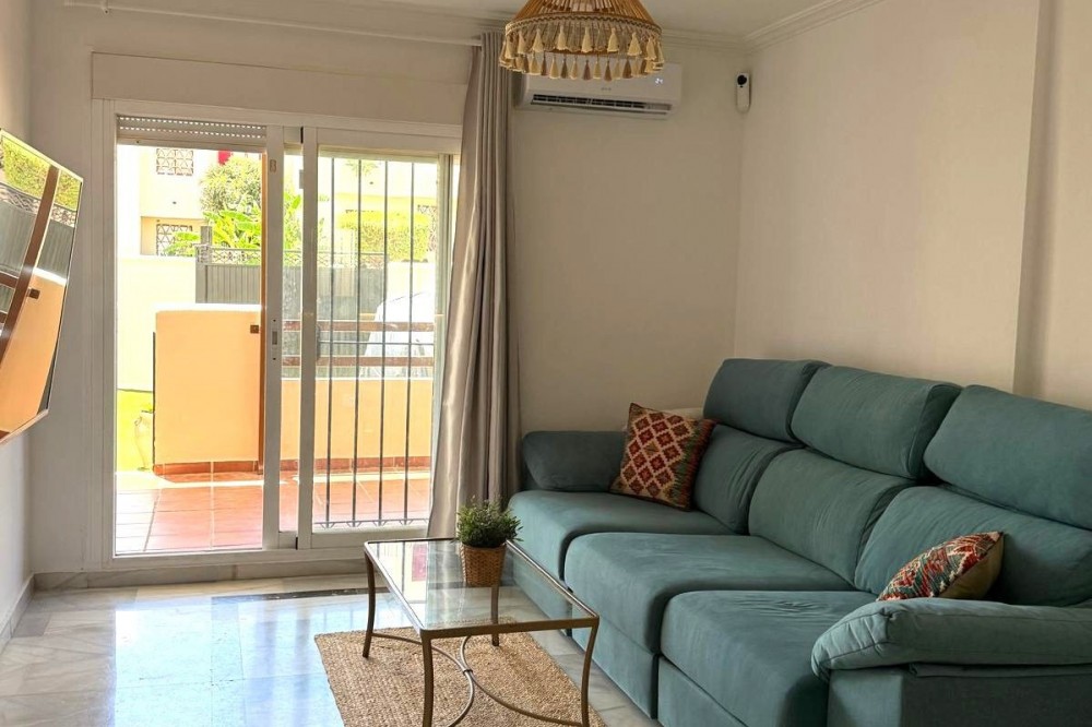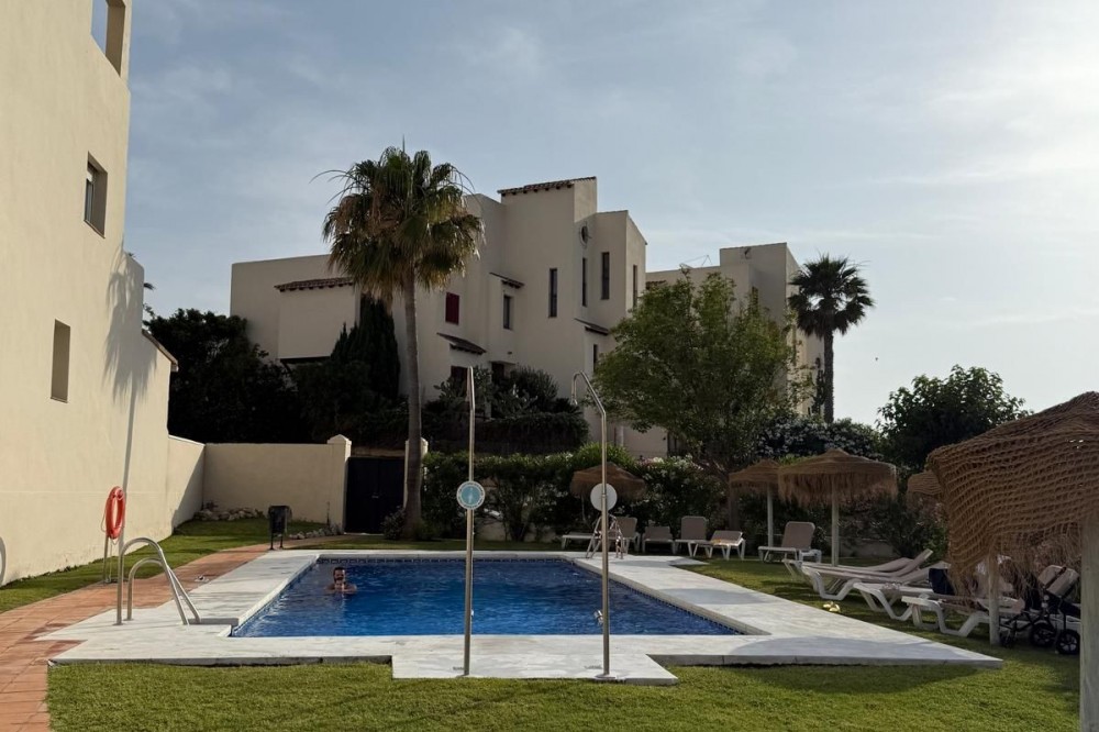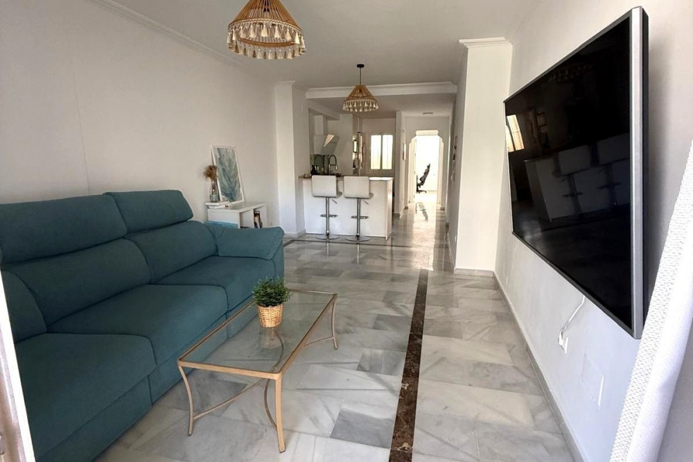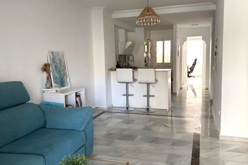 - Spectacular Home in Casares Costa We are delighted to present this magnificent property located in one of the most sought-after areas of the Costa del Sol, just 10 minutes from the beach and perfectly connected to all essential services such as supermarkets, pharmacies, schools, health centres, and Estepona’s High Resolution Hospital. This home stands out for its dual access: one directly from the street, where you can conveniently park either in front of the property or inside its private garage, and another through the gated community, providing extra security and privacy. The exterior features a spacious private patio with a lawn and barbecue area, perfect for summer evenings, as well as a covered porch designed for year-round enjoyment. Inside, the property combines brightness and generous spaces with a modern and functional design. The living-dining room connects seamlessly with a designer kitchen fully fitted and separated by an elegant peninsula. The home offers three bedrooms, all with natural light and built-in wardrobes: The master bedroom includes an en-suite bathroom. The second bedroom has a window facing the front patio. The third bedroom, currently used as an office, provides direct access to the patio and the communal areas. The property has been fully renovated, including all interior carpentry. The gated community offers a communal swimming pool and children’s playground, all in a quiet residential area surrounded by high-end developments.