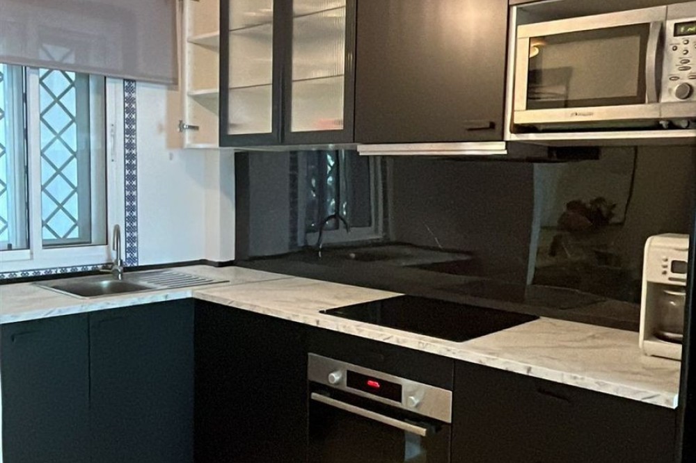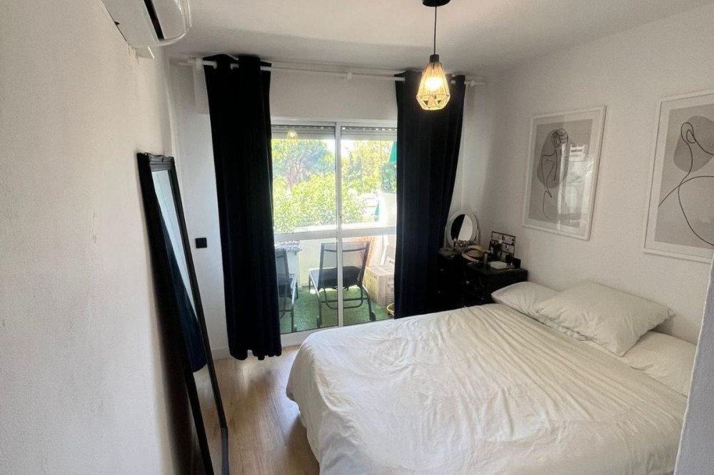 - Newly renovated apartment with aprox 5 min walk to the beach in Artola Baja area. The apartment building has approved rental license. It is a farmacy in the building. Parking is outside. There are parking spaces in the basement that you can purchase upon availibility. The apartment has gone thrue a few renovations like new floors, new kitchen with Bosch dishwasher and owen and integrated extraction fan. New Bathroom with walk in shower and washing machine. New doors in the apartment. New Bosch AC in bedroom and livingroom. L- shaped terrace with glass enclosure between new tiled terrace and to te open space of the terrace. The L-shaped terrace has two functions. One part of the terrace is a winter but it is beeing used as a play room for the owners childreen today. You can use it as a dining room to enjoy the beautiful sunset and views of the gardens in front. The enclosed winter garden can be opened to the other part of the terrace. This apartment is close to transport, farmacy, restaurants, schools and only 2 min drive to Cabopino and 10 min drive to Marbella Center. it is 40 minutes to Malaga Airport. This is a perfect holiday apartment with very good rental income or just enjoy a low maintanance cost apartment, very close to the beautiful beaches in Artola and Cabopino. The owner is eager to sell so she acsept offers.