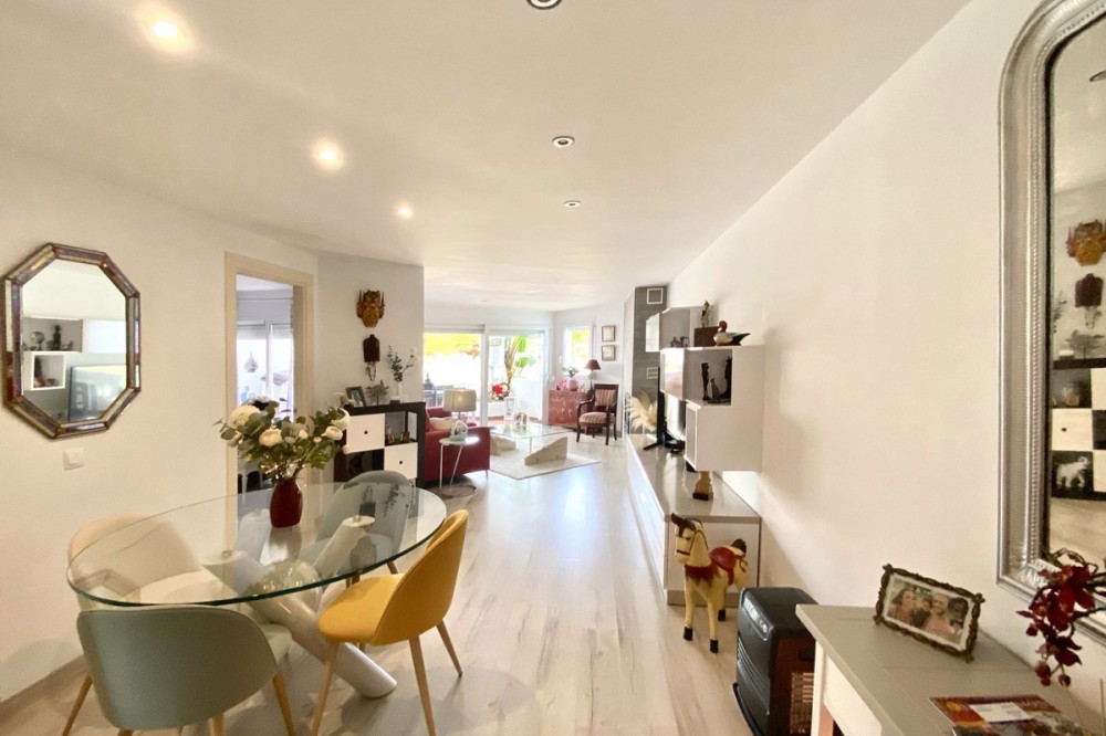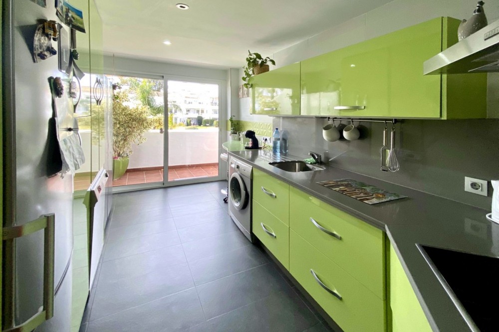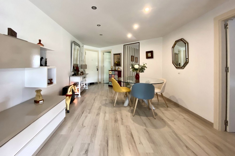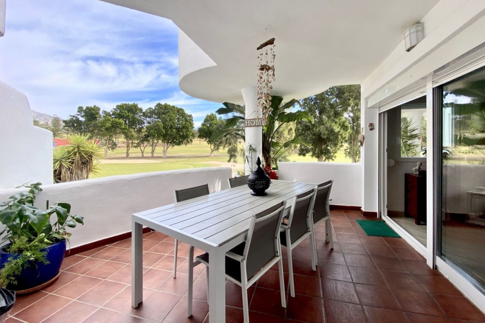 - STUNNING ULTRA LUXURY/MODERN APARTMENT in front-line Mijas Golf location. Refurbished to the very highest of standards. The property consists of a spacious lounge/dining room, modern fully fitted kitchen, master bedroom with en-suite bathroom, another double bedroom with walk in wardrobe, formerly second bathroom (picture included), but with all plumbing still in place to be able to be made back into a bathroom again easily, a small southwest terrace overlooking the immaculately kept communal gardens and swimming pools and a large covered north east terrace overlooking the golf course and mountains. Amongst the many improvements made to this property are: fully insulated walls, ceiling, and floors for temperature regulation and noise reduction, quality double-glazing glass on windows and sliding doors throughout the house, new plumbing and wiring, and a feature wood-burning fireplace. An Underground car parking space and a storage room are also included in the price. Just 600m to the local mini supermarket, bus stop, and a 5-minute drive to Fuengirola with its beautiful sandy beaches, massive selection of shops, bars, and restaurants, supermarkets, and just a short walk to local amenities. Fabulous for holidays and all-year-round living. A dream of a property! This community permits short-term rentals. Indoor built area: 104m². Terraces: 15m². Parking space: 13m². Storage room: 4m². Total: 136m². Community fees: €157 per month. IBI fees: €650 per year.