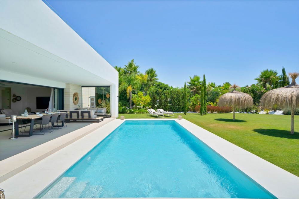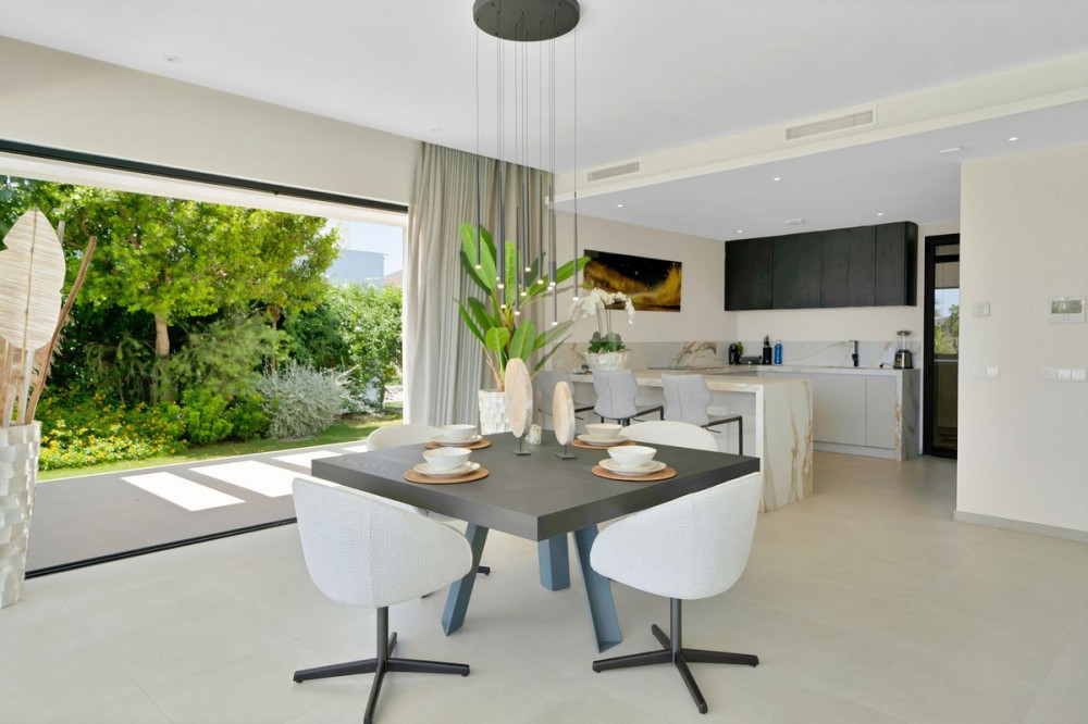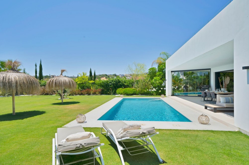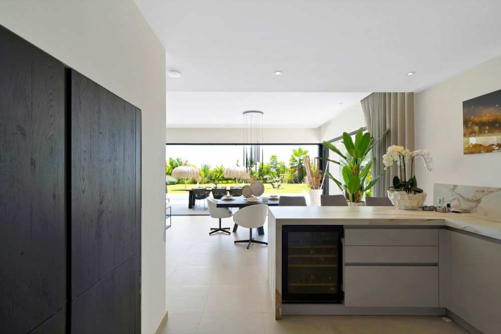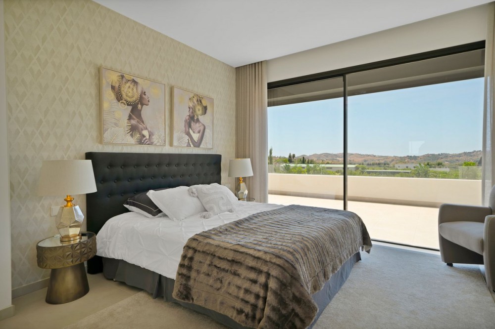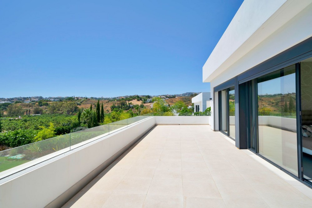 - Picture perfect? Immaculately detailed? Dream home? Yes...all of these... One of the very loveliest villas in the area of Entrerrios where we find a community of luxury homes, in divine countryside, peaceful and private. On a generous and very private plot, this luxury villa sits in its beautiful gardens, which have been lovingly manicured to ensure a Mediterranean oasis, for the enjoyment of those living in the villa. This villa is built over 314 square meters. It has the original configuration of the villas, with one bedroom and ensuite bathroom on the ground floor, and 3 bedrooms each with it's own bathroom on the first floor. The ground floor boasts a stunning open plan living area, Through the impressive wooden front door which is both wide and tall, one enters the living room area, where the immediate impact of space and light create the feeling for this fabulous la Cala Golf villa. Floor to ceiling high quality patio doors flank all of the walls and are designed to slide delightfully into the walls, allowing that the interior open plan living space blends into the perfect alfresco experience by incorporation with the south-facing terrace. This terrace is further improved with the addition of glass curtains, meaning that come rain or shine, the outdoor space of this property is to be enjoyed, with the lovely views of the green and verdant gardens and the countryside beyond. The driveway is accessed via automated gates and within the perimeter is a closed garage, an addition that was carried out by the current owners by making the carport into a more secure space for cars. Perfect if you are travelling away and want to be able to ensure that the whole property is locked up to leave. Dreaming of a sun-drenched peaceful home under the Andalusian skies? This designer villa offers tranquility and luxury all in equal measure. With 4 bedrooms and huge open plan living spaces the opportunity to enjoy as a family and socialise with friends is presented in high style. Located on the perimeter of the world-famous la Cala Golf Resort, it provides easy access to 3 Championship golf courses, a high-end luxury Spa and within a 10 minute drive to the beach. Available now for viewings ! Discover your dream home nestled in the prestigious Ur La Cala Golf area, a haven for those who appreciate the perfect blend of modern luxury and serene golf course living. This exquisite property, now available for sale, offers an unparalleled lifestyle opportunity for a discerning buyer. The development is located just a few minutes’ drive inland from the beachfront of La Cala de Mijas, and sits right above La Cala Golf in the picturesque countryside. This location is peaceful and tranquil and promotes the outdoor lifestyle that Marbella is known for.