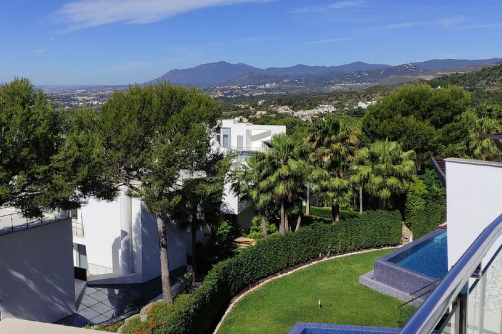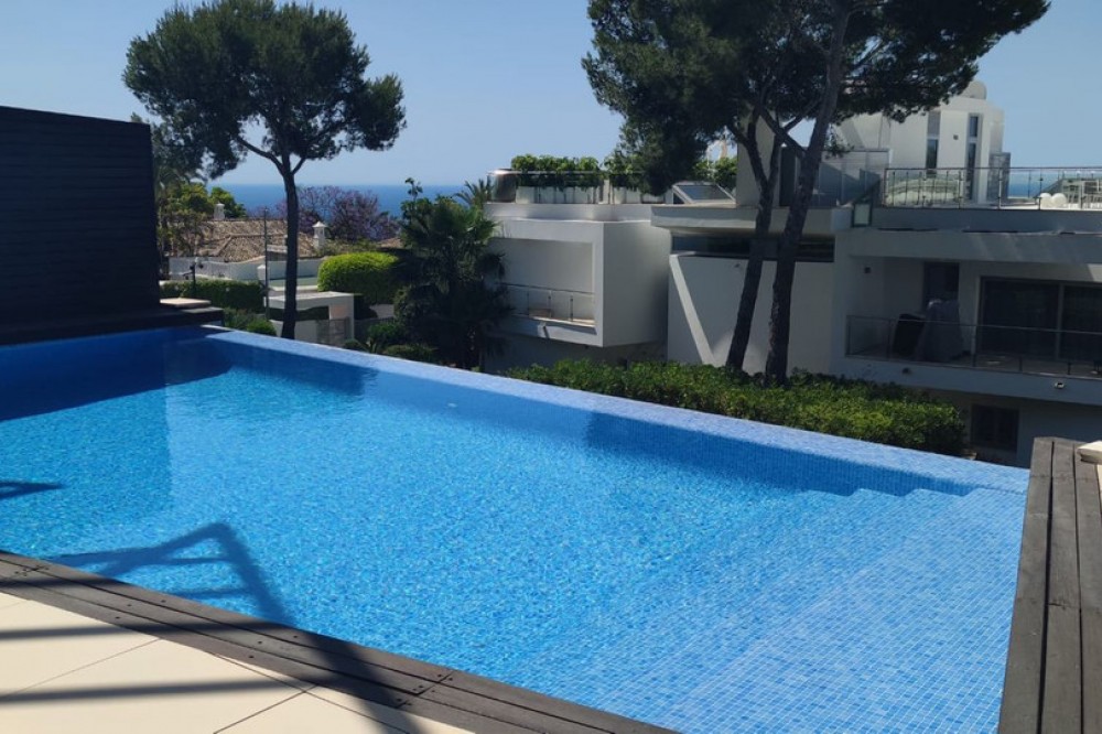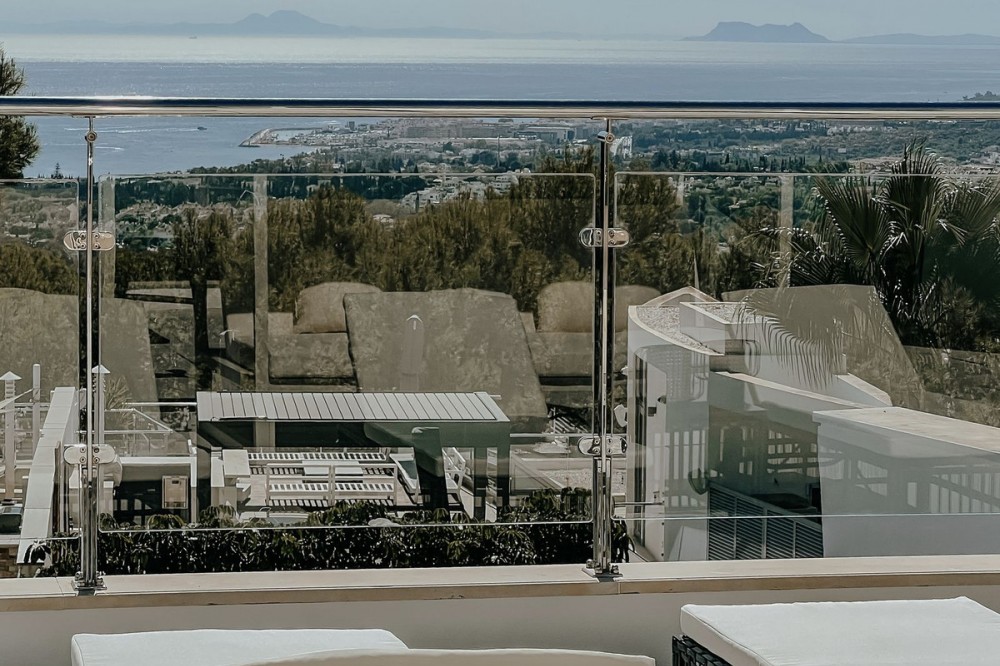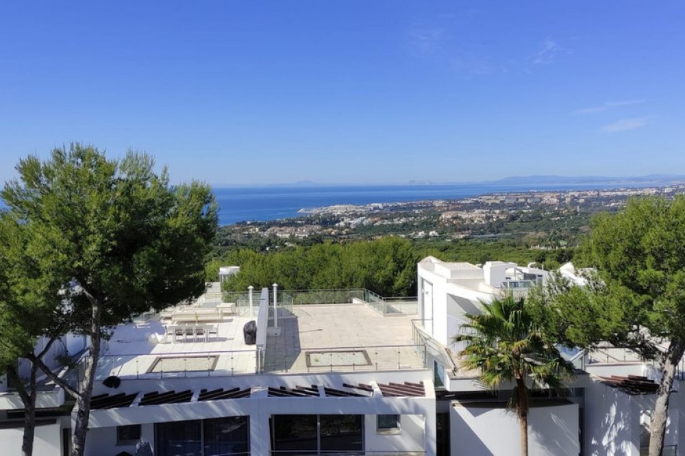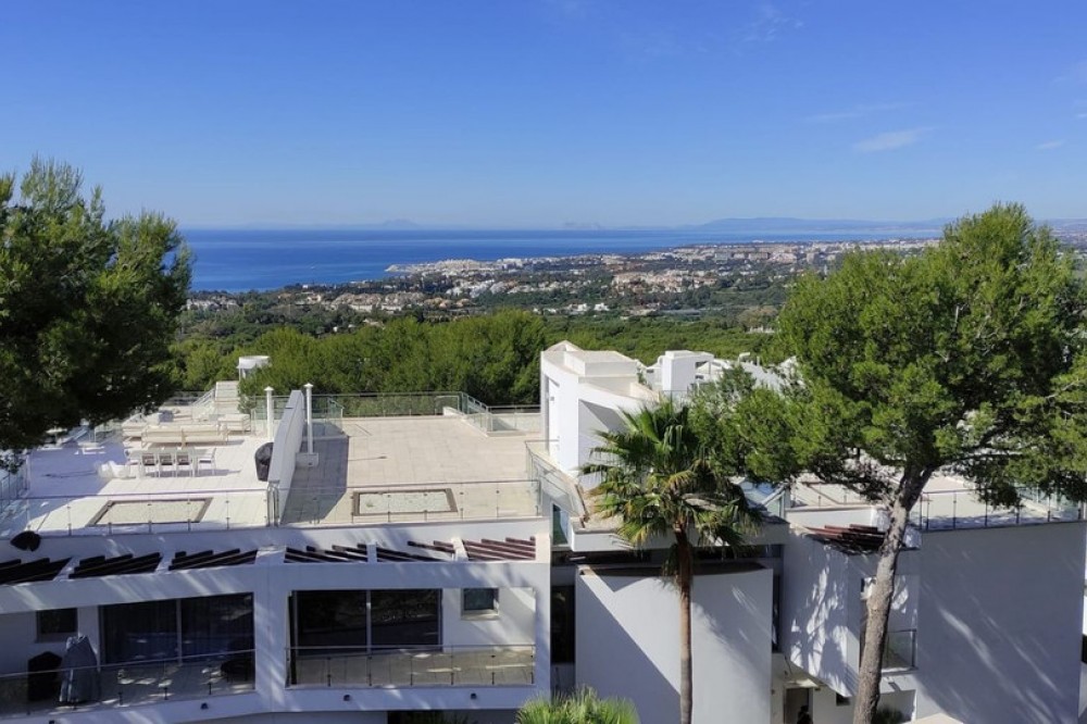 - 3 bedrooms and 3 en suite bathrooms plus 1 guest toilet, It has sea views from the ground floor, first floor and the solarium. private garage for two cars and storage room. underfloor heating system throughout the house. It has an elevator that goes up from the garage to the solarium, total built 480 meters. terrace with private pool of 147 meters and solarium of 130 meters. in total it has 683 meters according to the cadastre. air conditioning, sophisticated lighting, built in wardrobes, double glazing, underfloor heating throughout the house, etc. ). Only the highest quality materials have been used in the design of the development, combining natural materials, from wood and stone to marble. Luxury features include spacious terraces, private pools and gardens, wine cellars, and elevator access from secure garages below. the fully gated complex with restricted access, cctv, manned patrols 24 hours a day on site gives residents peace of mind. there are also 3 spas with saunas, Turkish baths, a heated indoor pool and a fully equipped gym. Lift. Garage. Furnished. Storage