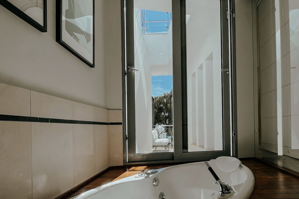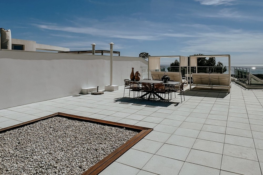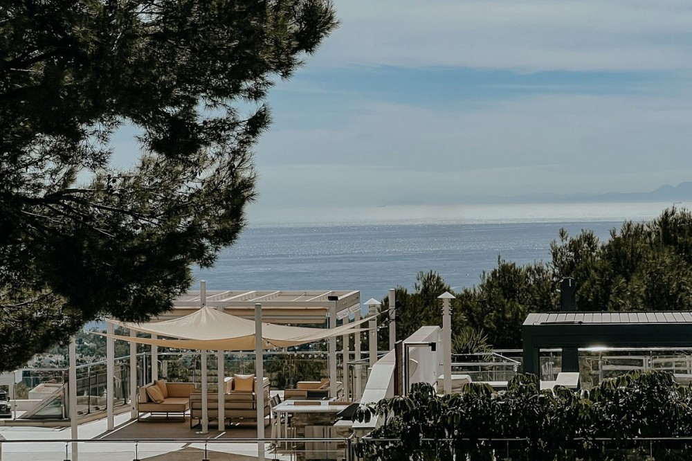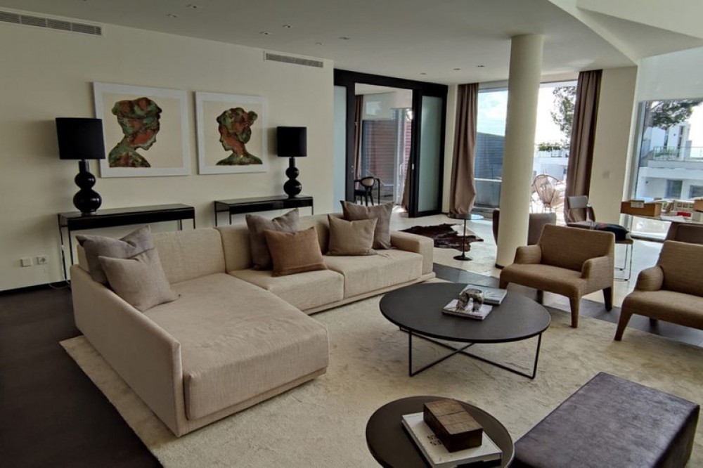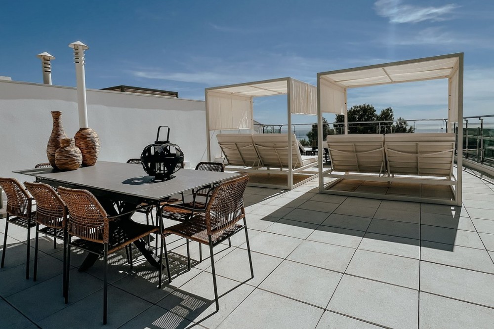 - 3 bedrooms and 3 en suite bathrooms plus 1 guest toilet, It has sea views from the ground floor, first floor and the solarium. private garage for two cars and storage room. underfloor heating system throughout the house. It has an elevator that goes up from the garage to the solarium, total built 480 meters. terrace with private pool of 147 meters and solarium of 130 meters. in total it has 683 meters according to the cadastre. air conditioning, sophisticated lighting, built in wardrobes, double glazing, underfloor heating throughout the house, etc. ). Only the highest quality materials have been used in the design of the development, combining natural materials, from wood and stone to marble. Luxury features include spacious terraces, private pools and gardens, wine cellars, and elevator access from secure garages below. the fully gated complex with restricted access, cctv, manned patrols 24 hours a day on site gives residents peace of mind. there are also 3 spas with saunas, Turkish baths, a heated indoor pool and a fully equipped gym. Lift. Garage. Furnished. Storage