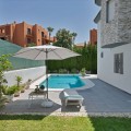 - Located in the peaceful and sought-after area of Buenas Noches, just 2 minutes from the beach, this stunning property has been fully renovated using high-quality materials and refined contemporary design. Ideal as a family home or a second residence, it offers a perfect blend of luxury, technology, and nature in a unique setting. Key Features: Plot size: 600 m² Built area: 258 m² distributed over two floors 3 spacious bedrooms, including one with a custom-designed wooden walk-in wardrobe 3 full bathrooms 2 large living rooms, one on each floor Modern, fully equipped kitchen Full smart home automation system throughout the property Landscaped garden with private swimming pool 49 m² terrace with panoramic sea views Covered garage Independent access to each floor from the outside The walk-in wardrobe, entirely finished in wood, offers a refined and functional space worthy of a high-end property. Every corner of this home has been thoughtfully designed to offer maximum comfort with style. Location: Buenas Noches, Estepona – just 2 minutes from the sea, with quick access to local amenities, shops, and the motorway.