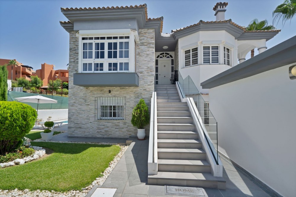- Located in the peaceful and sought-after area of Buenas Noches, just 2 minutes from the beach, this stunning property has been fully renovated using high-quality materials and refined contemporary design. Ideal as a family home or a second residence, it offers a perfect blend of luxury, technology, and nature in a unique setting. Key Features: Plot size: 600 m² Built area: 258 m² distributed over two floors 3 spacious bedrooms, including one with a custom-designed wooden walk-in wardrobe 3 full bathrooms 2 large living rooms, one on each floor Modern, fully equipped kitchen Full smart home automation system throughout the property Landscaped garden with private swimming pool 49 m² terrace with panoramic sea views Covered garage Independent access to each floor from the outside The walk-in wardrobe, entirely finished in wood, offers a refined and functional space worthy of a high-end property. Every corner of this home has been thoughtfully designed to offer maximum comfort with style. Location: Buenas Noches, Estepona – just 2 minutes from the sea, with quick access to local amenities, shops, and the motorway.