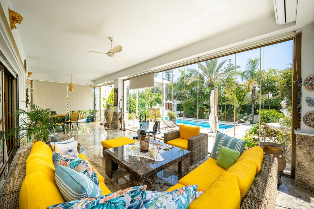 - Tucked away in a prestigious beachside enclave of Marbella, this exceptional Andalusian villa is a masterclass in refined coastal living. A harmonious blend of traditional charm and contemporary design, the property offers an inviting sanctuary just moments from the Mediterranean shoreline. Stepping through the entrance, you're greeted by a grand open-plan living and dining area, flooded with natural light from expansive windows that frame idyllic views of the sea, garden, and pool. Every detail is curated for both comfort and elegance, from the warm textures of the traditional architecture to the sleek modern finishes. The heart of the home is the spacious kitchen—a culinary dream outfitted with a central island, top-of-the-line appliances, and an industrial-sized refrigerator, perfect for entertaining with ease and sophistication. The villa boasts four beautifully appointed bedrooms, each offering serene outlooks and peaceful privacy, with the option to easily add a fifth if desired. The master suite is a private haven, complete with its own lounge area, a large walk-in wardrobe, and an en-suite bathroom featuring a luxurious walk-in rain shower. Wall-to-wall windows in the master bedroom open onto a generous balcony, where morning light and sea breezes create the perfect place to unwind. Outdoors, the villa continues to impress. A sparkling private pool is surrounded by lush landscaped gardens, with ample terrace space for lounging in the sun, hosting guests at the fully-equipped bar, or dining al fresco under the stars. Traditional Andalusian elements such as tiled accents and arched features are gracefully woven throughout the grounds, enhancing the home’s rich character. For a crowning touch, the rooftop solarium offers breathtaking 360º views—stretching from the deep blue of the coast to the dramatic silhouette of La Concha mountain. It’s the ultimate vantage point to soak in Marbella’s beauty, whether basking in the sun or watching twilight settle over the sea. This villa is more than just a residence; it’s a coastal lifestyle of elegance, privacy, and inspiration—an extraordinary opportunity to live beautifully by the sea.