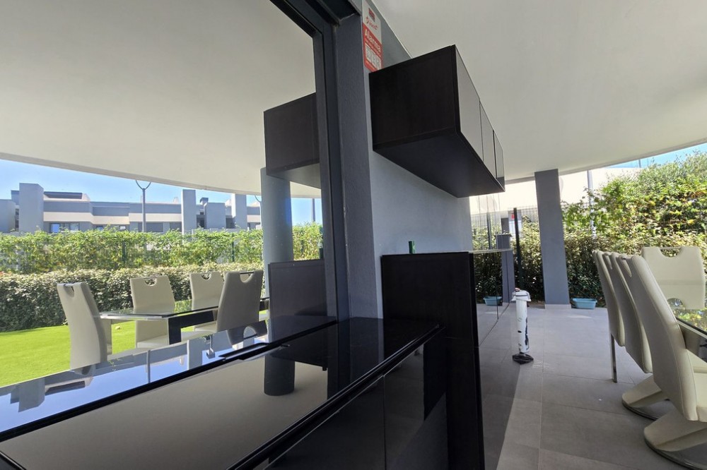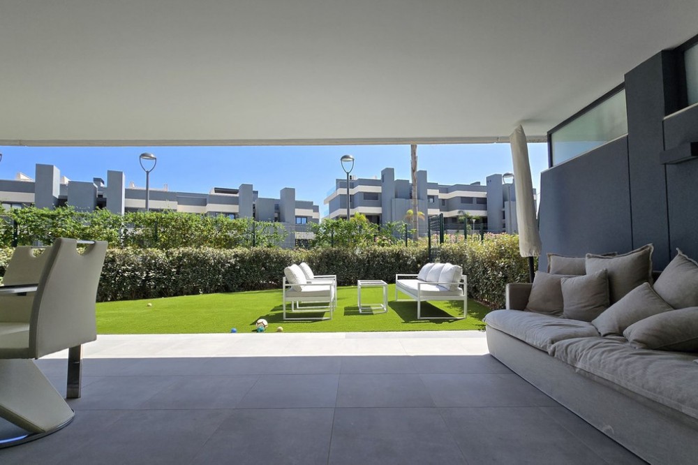 - ESTEPONA / NEW GOLDEN MILE Between Estepona and Puerto Banus Modern 3 bedroom 2 bathroom corner ground floor apartment with wonderful garden and swimming pool views Homes specially designed for enjoying the Mediterranean lifestyle. The south-facing position and the spacious terraces ensure an optimum use of sunlight. Inside, the meticulous layout is focused on enhancing social life and preserving the privacy of the most intimate rooms of the house. The open-plan area containing the kitchen, living room and dining room extends outwards in the form of a continuous terrace and private garden Every detail of this apartment has been carefully designed to achieve a perfect combination of functionality and style. The kitchen has been expanded with additional cabinetry and a fully integrated XL refrigerator. It also features a practical laundry area, a separate storage room, and two underground parking spaces, making this property as functional as it is luxurious. All bedrooms include fully equipped built-in wardrobes, as well as electric blinds for added comfort. The master bedroom also opens onto a private terrace enclosed by glass curtains. 1 underground parking space and a storage room included. *** With option to purchase a second parking if desired The owners enjoy exclusive access to a club house with indoor pool, gym, spa with steam room and sauna as well as communal room for parties and entertaining. The community also features green areas and an outdoor swimming pool Relax in your own private oasis and experience nature from every part of your home. LOCATION The Atlas American School of Malaga, situated next to the Russian Orthodox Church, is going from strength to strength. It has a capacity of 700 students and is accelerating demand for high quality real estate in the area. Our immediate neighbors, the large national developer, Aedas are constructing a large number of luxury apartments at a rapid pace. One of their brands, Libella is selling in the range of €660,000 to €1,300,000. Another, Australy Aures, is about to be marketed as a top end luxury development of apartments and is likely to be significantly higher in price. Construction has started of more luxury apartments by leading national developers, Azata. This is in addition to the extremely successful Vanian Gardens, located directly behind Atlas American School of Malaga. Vanian Hills, with its panoramic sea views and high quality, is also in construction. Hospiten, our local private hospital, has double its sized in 2025 The total investment in the immediate area exceeds €700 million. A new paddle tennis club (within walking distance) opened in early 2025, consisting of 11 courts as well as a spa and restaurant. The area is already well served by great up-market restaurants and beach bars such as Bossa and Sonora Beach, supermarkets such as Mercadona, Aldi, Lidl and Carrefour and several petrol stations. La Resina is a consolidated area. While we enjoy all of these benefits we still retain our rural atmosphere.