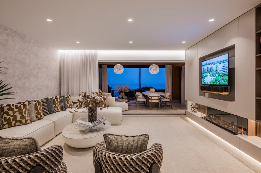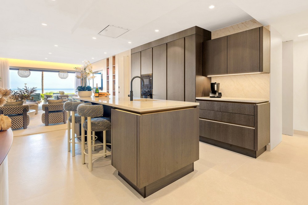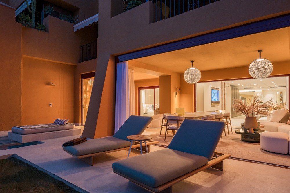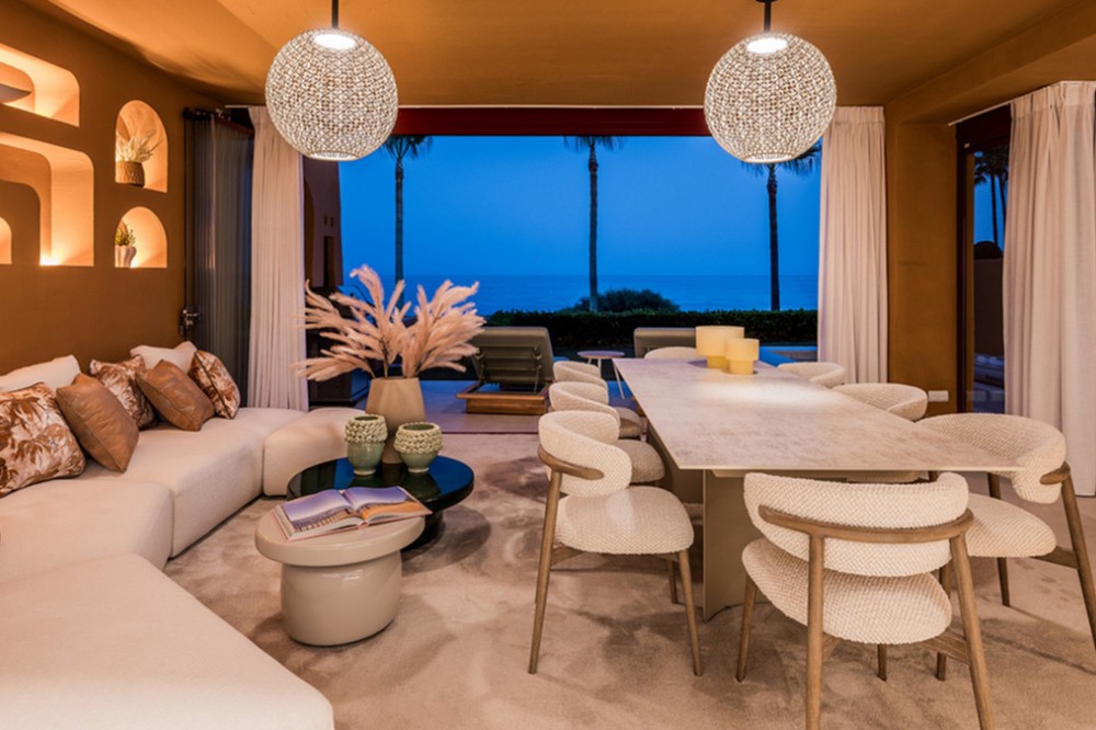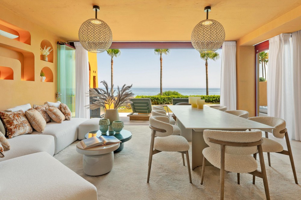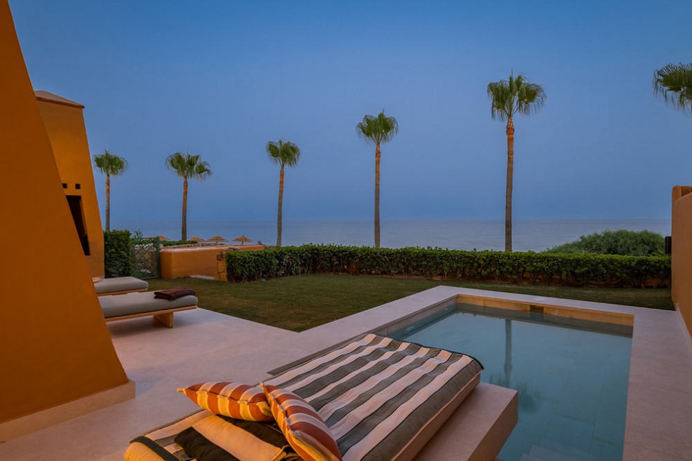 - Step into a world of beachfront luxury with this extraordinary 4-bedroom garden apartment, set on the front line of the Mediterranean in one of the Costa del Sol’s most coveted and secure developments. Located in a prestigious beachfront complex with 24-hour security, this fully renovated residence boasts 186 m² of refined interior space, private gardens, and its very own pool — a rare find that offers the ultimate in privacy, comfort, and Mediterranean sophistication. This stunning ground-floor apartment has been meticulously redesigned to the highest standards, combining contemporary elegance with timeless style. It is offered fully furnished with curated, high-end designer pieces, allowing you to move in and enjoy a luxurious lifestyle from day one. Large open-plan living areas seamlessly flow to the spacious terrace and private garden, where uninterrupted panoramic sea views stretch out before you — a perfect setting for relaxing, entertaining, or watching the sun dip below the horizon. The private pool enhances the exclusivity of this rare property, offering a serene oasis just steps from your living space. The gated community is surrounded by beautifully manicured tropical gardens and offers an exceptional array of five-star amenities, including two magnificent outdoor swimming pools, a heated indoor pool, a state-of-the-art gym, underground parking, and even an on-site restaurant — all designed to elevate your lifestyle and bring resort-style living to your doorstep. Perfectly positioned on the beachfront and just minutes from the heart of Estepona, this property offers the ideal combination of tranquility and access to the best dining, shopping, golf, and international schools the Costa del Sol has to offer. Whether you're looking for a luxurious permanent residence, a prestigious holiday retreat, or a high-value investment in an unbeatable location, this apartment is a rare and remarkable opportunity.