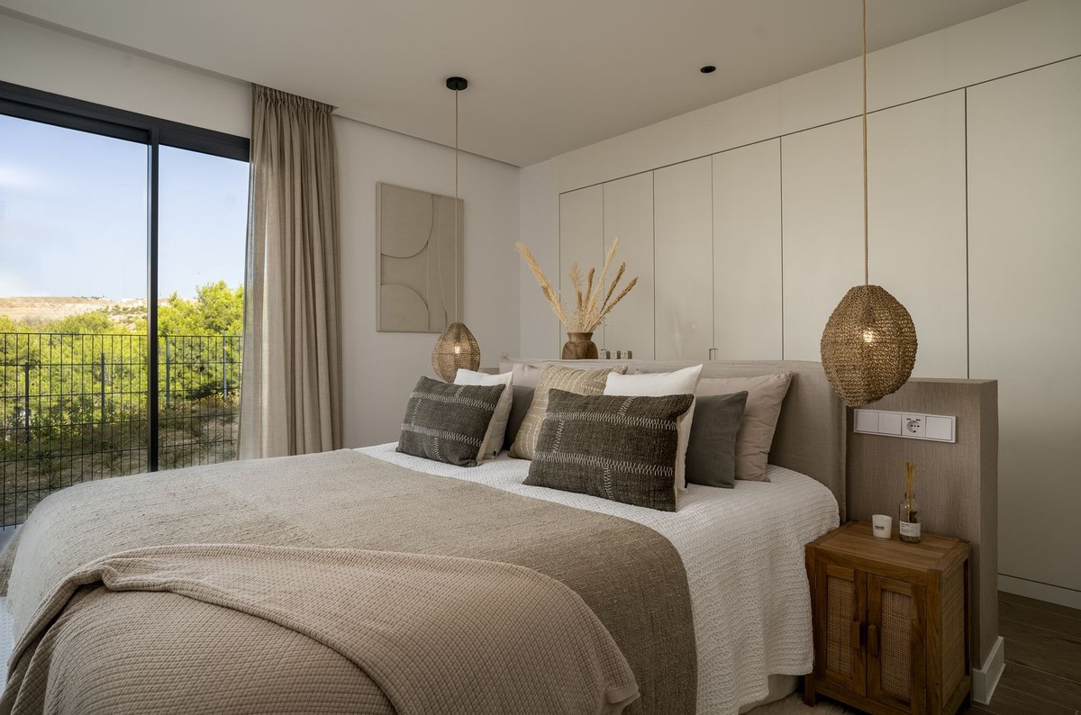 - Presenting an outstanding Garden Apartment located in the prestigious Higueron West, featuring its own pool and breathtaking views of both the sea and the mountains. There are only two such Garden Apartments in Higueron West, making this a rare opportunity to enjoy magnificent sea views, mountain vistas, and a private pool. Property Features: Bedrooms: 3 Bathrooms: 2 plus 1 guest toilet Views: All three bedrooms have access to a terrace with stunning views. Living Space: Spacious open-plan kitchen and dining area, along with a living room featuring large glass windows that open to a covered terrace and the garden with a private pool. Terraces: Enjoy multiple terraces that face south, west, and north, providing sunlight throughout the day. Complex Amenities: Large communal swimming pool and garden Wellness facilities for relaxation Two parking spaces in the garage A generous storage room Area Information: The area offers a variety of amenities with a free shuttle bus service to the beach, supermarket, and train station. Residents can also take advantage of nearby padel courts, tennis, fitness centers, wellness facilities, and excellent restaurants. Location: Situated in a tranquil environment within a beautiful complex, this Garden Villa is conveniently located just 15 minutes by car from Malaga Airport, making it easily accessible. Conclusion: This Garden Apartment represents the perfect blend of luxury, comfort, and scenic beauty in a serene setting. Don’t miss out on the opportunity to own this exceptional property! Contact: For further information or to schedule a viewing, please reach out to us today.