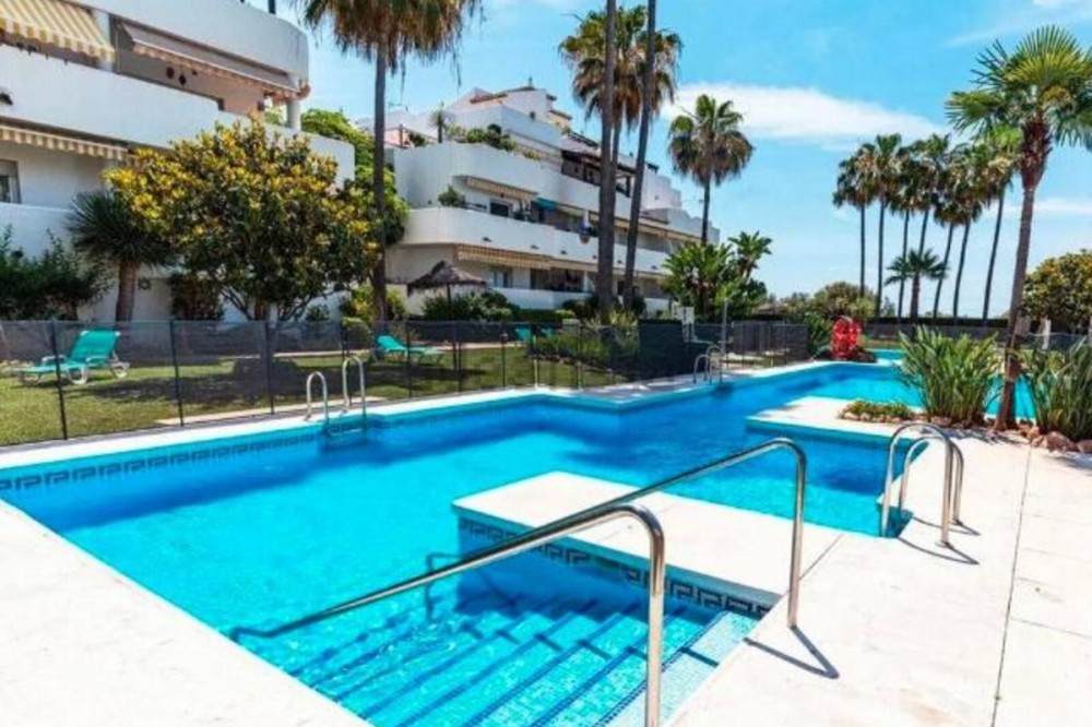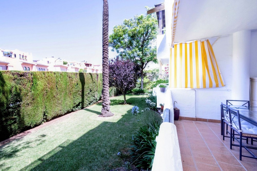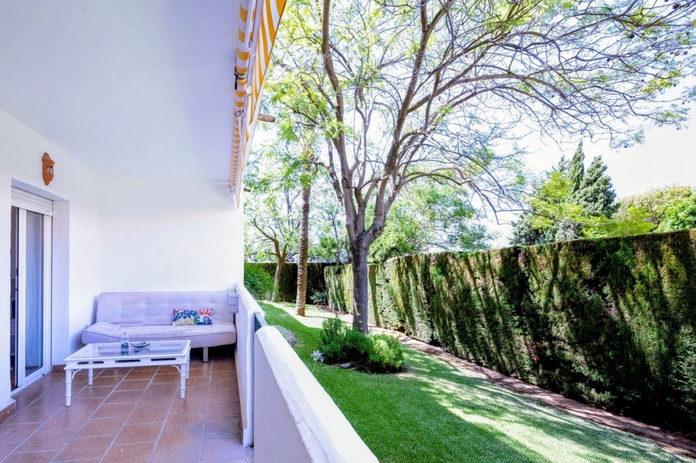 - Nestled in the exclusive Nagüeles area of Marbella’s prestigious Golden Mile, this charming 2-bedroom, 1-bathroom elevated ground floor apartment offers an unparalleled lifestyle of luxury and convenience. Just a 2-minute drive from pristine beaches, top supermarkets, elite international schools, verdant parks, and a host of premium amenities, this property is perfectly positioned for effortless living. Bright & Welcoming: West-facing orientation bathes the home in warm afternoon sunlight, creating a serene and inviting atmosphere. Spacious Layout: Features a luminous living-dining area opening onto a generous 11 m² covered terrace with tranquil garden views, an independent kitchen with laundry space, and two comfortable bedrooms, including a master bedroom with a walk-in closet and direct terrace access. Elegant Details: Beautiful wooden floors add warmth and sophistication throughout. Exclusive Community: Enjoy a secure gated complex with adult and children’s pools, plus meticulously landscaped communal gardens. Prime Location: Ideal as a forever home, vacation retreat, or high-yield investment in one of Marbella’s most sought-after neighborhoods. Community fees: 120 euros per month IBI fees: 670 euros per month Seize this rare opportunity to own a slice of Marbella’s Golden Mile—where luxury meets lifestyle!