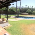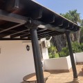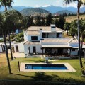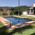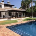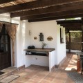 - We proudly present one of the most authentic and beautiful Andalusian Cortijos with stables separate guest house in the Estepona area! Dream location on the New golden Mile between Marbella and Estepona - 3 minutes drive to the beaches and supermarket. Best access to the property. Land of 6200sqm, with is partly laid out as a garden and partly planted with fruit trees. There is also a chicken coop. Completely flat land with an electric gate and video surveillance system. The 2 story house is in perfect condition and offers on 275 sqms entrance hall leading to the open staircase with charming, antique moorish details, wood caraved pillars as well as stone pillars. Distributed in salon with open plan modern kitchen with separate laundry room and storage room. Leading out to a large and south facing covered terrace overlooking the well maintained garden with swimming pool with solar working outdoor shower. On the ground floor there are 2 bedrooms with 1 full bathroom and a shower room. Another room, which is actually used as another storage, could be opened for 1 more bedroom. On the upper floor there are 2 more bedrooms with one en-suite master bathroom + a large south facing sun terrace with beautiful panoramic views to the surroundings. Behind the kitchen there is a covered summer kitchen. The property enjoys as well a separate wooden guest house of 26 sqms distributed in salon with integrated kitchenette, 1 bedroom and 1 bathroom and outside terrace. The wooden roof has an irrigation system. Carport for 2 cars and lots of uncovered space of parking. 2 stables + 1 storage room are on the backside of the plot. The present owner installed few years ago a Photovoltaik system on the possible power supply. As well the finca has solar panels for hot water. There is a 92 m deep own well for watering the garden. The finca is connected to main water and electricity from the town hall. Fully legal property with all documents in place. Features: fully fitted modern kitchen, separate laundry room, 3 storage rooms, stables, patio, separate guest house, air condition hot/cold, open fireplace, antique moorish style built-in wardrobes, columns, terraces covered and open, summer kitchen, carport, stone floors, double glazing windows and doors, solar panels, electric entrance gate, alarm system, fully furnished. Location: few minutes drive to Aldi market and Laguna Village and the beaches, just in opposite of Kempinski Hotel and some of the best golf courses on the coast like La Resina Golf & Country Club, Los Flamingos Golf & Country Club, El Paraiso and Atalaya Golf. Investement opportunity and a real Andalusian dream home! 60% mortgage is possible from Spanish banks.