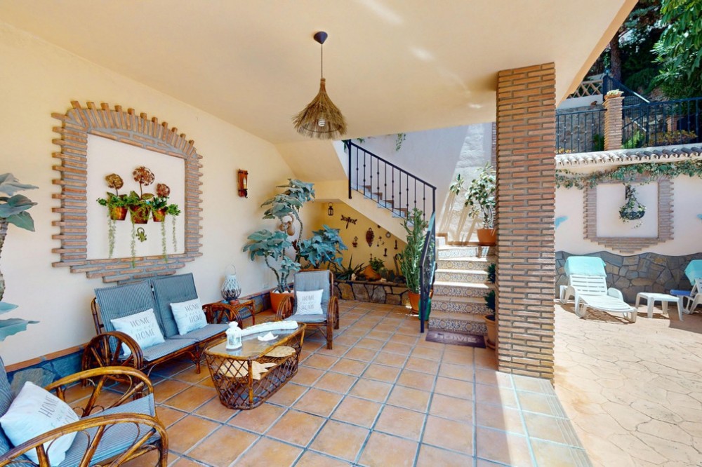 • This beautifully maintained home is located in a peaceful area of Mezquitilla, just a two-minute walk from the sea. Combining classic Andalusian charm with modern comfort, the property is in excellent condition and offers a smart, functional layout across three floors. It features 3 spacious bedrooms (one on each level) and 2 full bathrooms, providing privacy and flexibility for families or guests. One of the homes highlights is its 7 terraces, some offering partial sea views, perfect for outdoor dining, sunbathing, or enjoying the warm Mediterranean evenings. Inside, youll find a bright and airy living room, a fully equipped kitchen, and tasteful finishes throughout that reflect the local architectural style in a clean, understated way. The private infinity pool offers a peaceful outdoor space to cool off and relax, even if not directly facing the sea. The property also includes a private garage, storage room, and plenty of extra space for bikes, beach gear, or tools. Whether you're looking for a primary residence, holiday home, or a high-potential investment on the Costa del Sol, this home offers a rare opportunity close to the beach in one of the regions most charming coastal towns. Contact us today for more information or to arrange a viewing. We are pleased to be able to present this dream property to you soon, either personally or via virtual viewing. Because this world is unique - just like our Axarquía. In Andalusia. On the Costa del Sol. Here, on the sunny side of life...