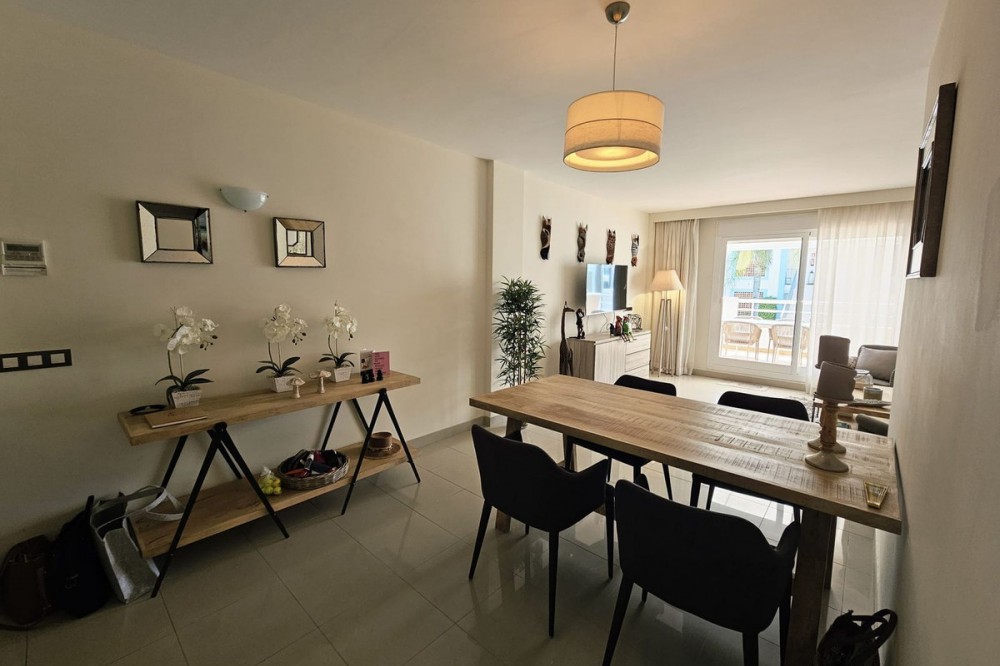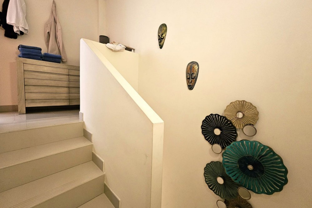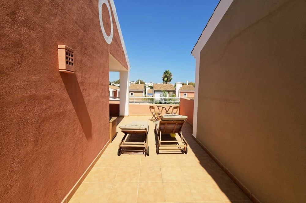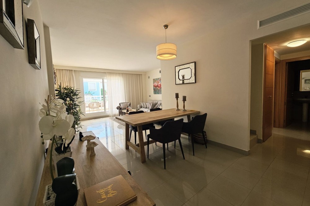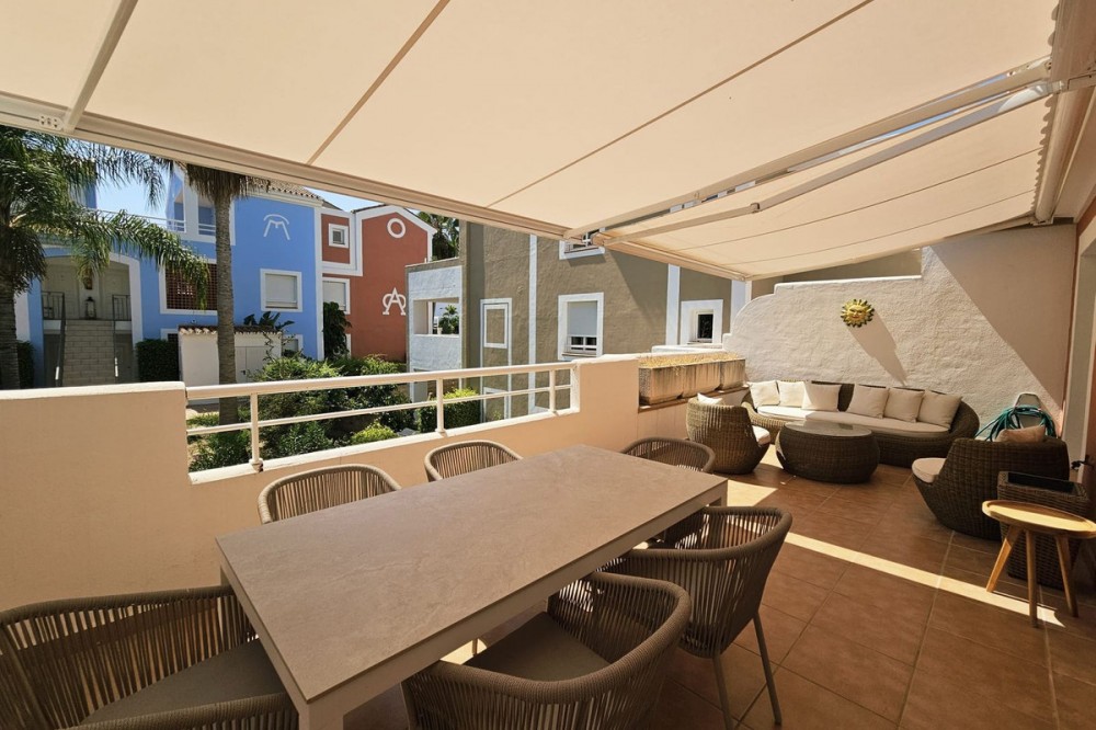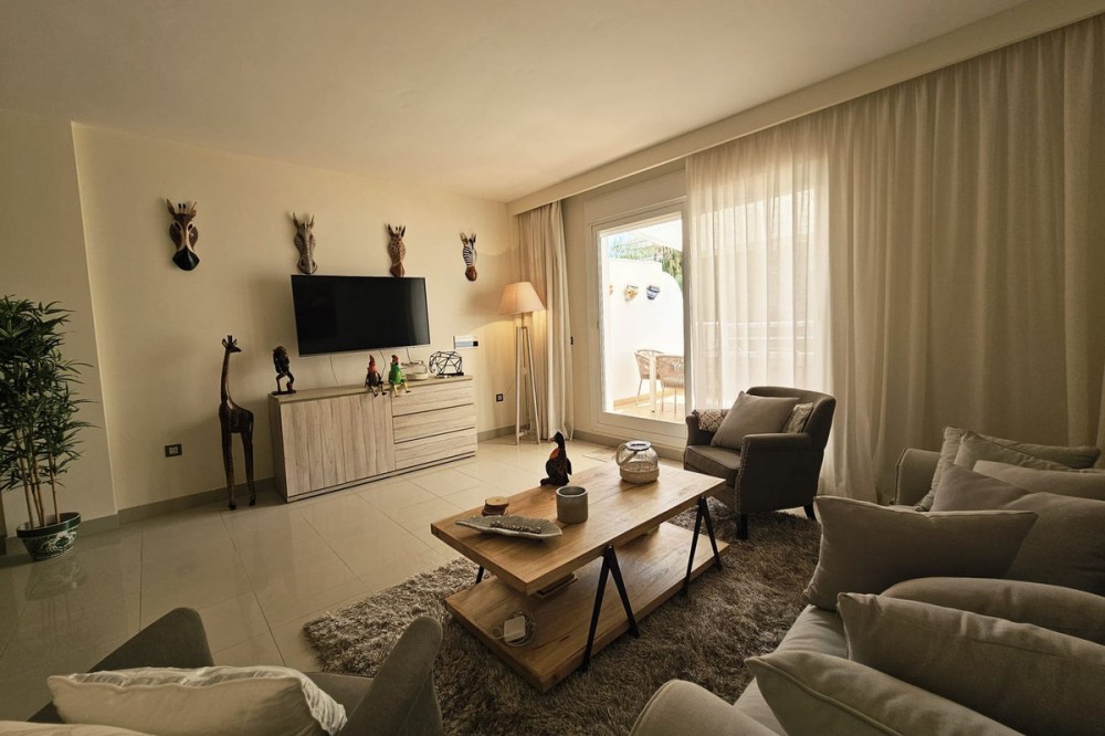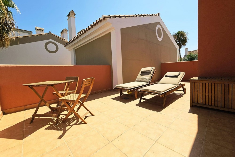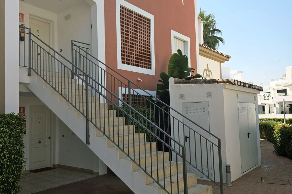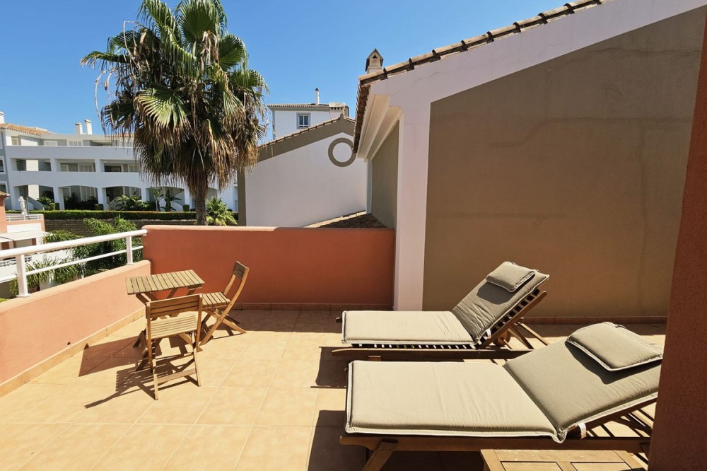 - Beautiful Duplex Apartment in Excellent Condition – Fully Furnished, with Terrace and Parking This stunning duplex property is in excellent condition and offers both comfort and elegance. Located on the first floor, you'll find a spacious living room that opens onto a lovely terrace overlooking the communal garden. The fully equipped kitchen comes with a separate laundry room, including a washing machine. This floor also features two bedrooms and a modern bathroom with a shower. Upstairs, you'll discover a generously sized master bedroom with an ensuite bathroom and access to a private rooftop terrace – the perfect retreat. Every room is equipped with individual air conditioning (hot and cold), ensuring year-round comfort. The living room terrace is fitted with two electric sunshades, providing shade during the warmest hours of the day. The property is tastefully furnished (furniture is optional) and includes all essential utilities. A spacious private parking space and a storage unit are included in the price. Don’t miss out on this elegant and ready-to-move-in home – perfect as a permanent residence or a stylish holiday retreat. Cortijo del Mar Resort – Elegant Mediterranean Living between Marbella and Estepona Cortijo del Mar Resort is a charming and well-maintained residential complex, ideally located between the sought-after towns of Estepona and Marbella. Thanks to its excellent access to the nearby motorway, both destinations are just a 15-minute drive away, making this a perfect base for enjoying the best of the Costa del Sol. Built in 2010, the urbanisation is situated in the prestigious El Campanario area and offers residents a secure and tranquil environment, with night-time security for added peace of mind. The development boasts beautifully landscaped tropical gardens and two stunning communal swimming pools, including a large lagoon-style pool that forms the heart of the resort. Adjacent to the main pool, residents can enjoy the Kambalaya Pool Bar, which provides a relaxed atmosphere and convenient poolside service from Easter through to the end of October. The location is ideal for golf enthusiasts, with Paraiso Golf and El Campanario Golf & Country Club within walking distance. Additionally, the El Pilar shopping centre, offering a wide range of shops, restaurants, cafés, and everyday services, is just a minute’s drive away. Cortijo del Mar offers an exceptional lifestyle, combining resort-style amenities with proximity to essential services and leisure activities. Perfect for year-round living, holiday stays, or as a sound investment opportunity.