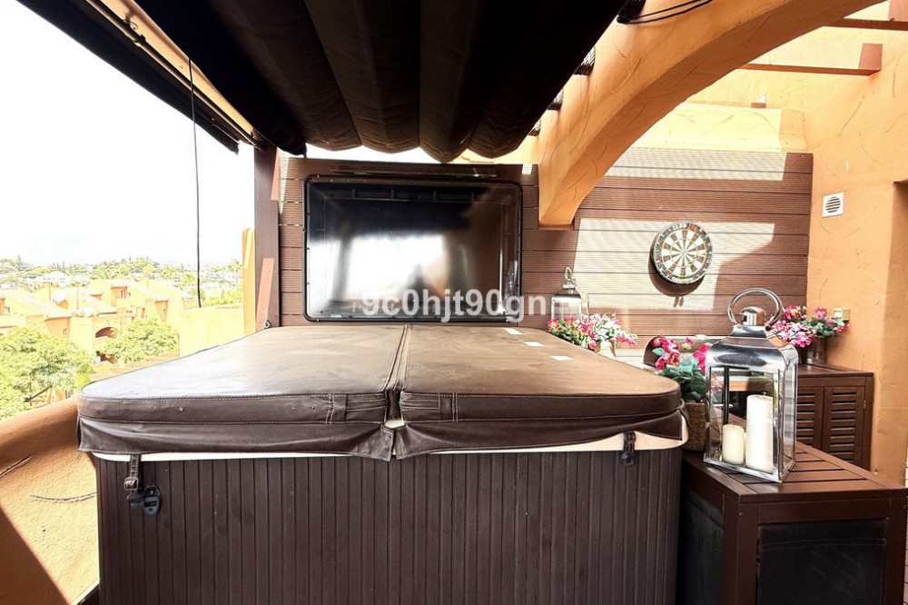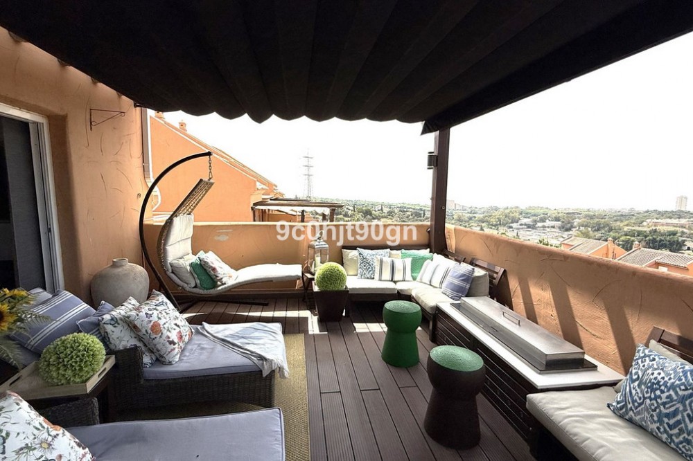 - Discover this beautifully refurbished penthouse located in the prestigious Los Lagos de Santa María Golf development in Elviria. Offering a perfect blend of contemporary style and comfort, this spacious apartment is ideal for those seeking quality living in a tranquil yet well-connected location. This stylish penthouse features 2 double bedrooms and 2 modern bathrooms, both recently renovated with high-end fixtures and elegant finishes. The sleek new kitchen has been fully updated with contemporary cabinetry, quality appliances, and a clean layout ideal for both cooking and entertaining. The standout feature of this property is the refurbished terrace, offering panoramic views over the golf course and surrounding greenery – perfect for outdoor dining, relaxing in the sun, or enjoying the Jacuzzi and the sunset evenings. Additional features include marble flooring, fitted wardrobes, air conditioning (hot and cold), and underground parking with lift access. Set within a secure and well-maintained complex with several communal swimming pools and beautifully landscaped gardens, the property is just minutes from Elviria’s popular commercial centre, sandy beaches, and the renowned Santa María Golf Club. Whether you're looking for a permanent residence, holiday getaway, or a smart investment, this turnkey penthouse ticks all the boxes.