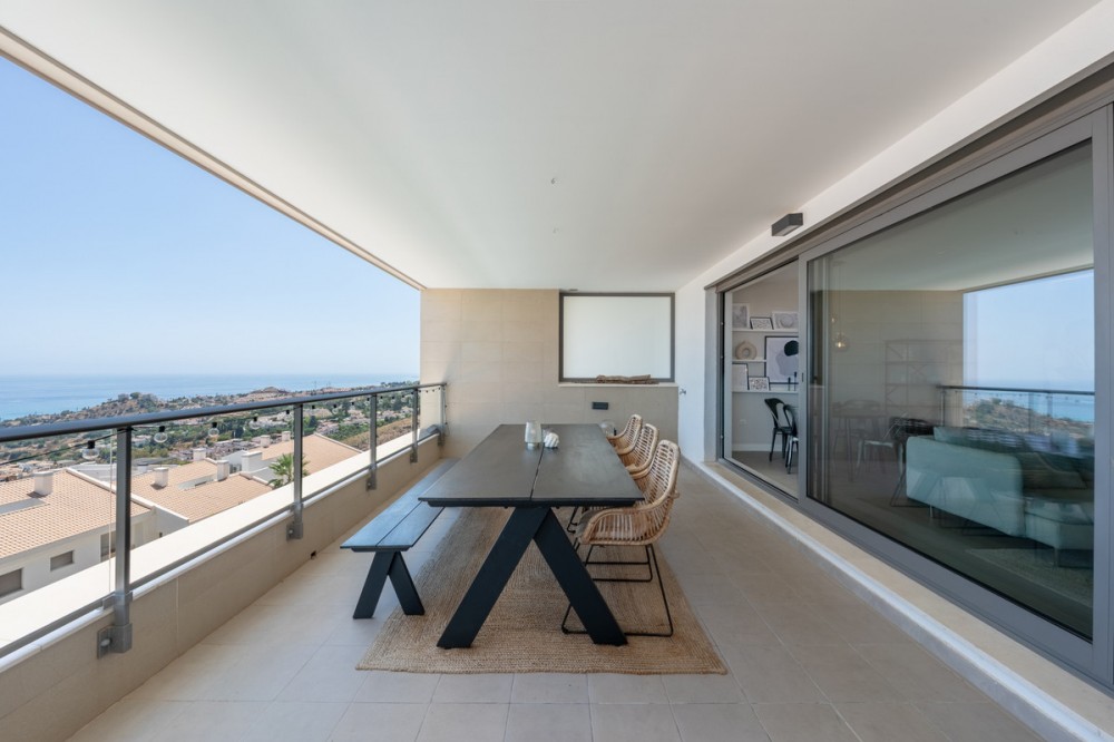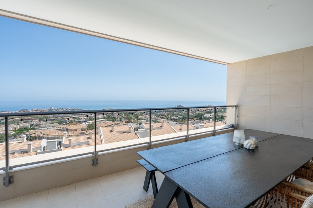- We’re delighted to present this contemporary 2-bedroom, 2-bathroom apartment, located in a modern development built in 2020 in the serene hills of Benalmádena. Designed for comfort and lifestyle, this property is ideal as a full-time residence, a holiday home, or a high-yield rental investment. Step inside to discover a bright and spacious layout, featuring a generous living area, a fully equipped open-plan kitchen, and floor-to-ceiling windows that frame some of the most breathtaking panoramic sea views in the area. The highlight of the home is undoubtedly the expansive south-facing terrace, perfect for dining, relaxing, or simply soaking up the Mediterranean sun. The apartment includes two underground parking spaces, a private storage room, and central air conditioning/heating for year-round comfort. Built to high specifications, the property offers modern finishes and thoughtful design throughout. As a resident, you’ll enjoy access to a wide array of premium community facilities, including a large outdoor pool, spa and sauna, fitness area, and beautifully landscaped gardens—ideal for both wellness and leisure. The location offers the best of both worlds: a peaceful setting just minutes from the charm of Benalmádena Pueblo, with easy access to the AP7 motorway, international schools, Xanit hospital, golf courses, and the golden beaches of Torremuelle, only a 5-minute drive away. Málaga airport is just 10 minutes away, making travel exceptionally convenient. Whether you're looking for a luxurious retreat, a base on the Costa del Sol, or an excellent investment opportunity, this exceptional apartment ticks all the boxes.