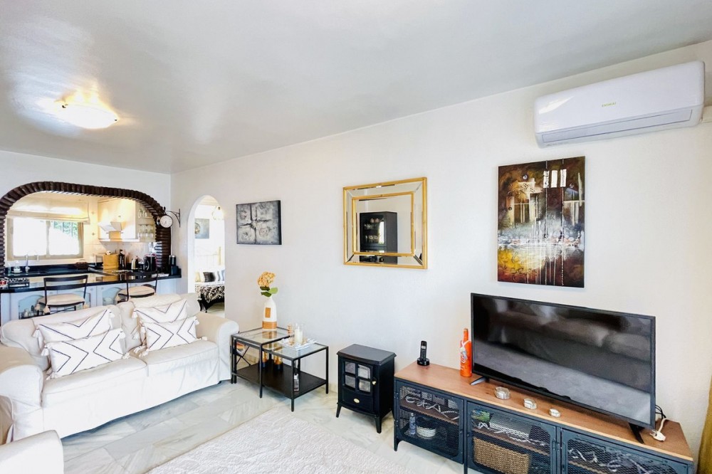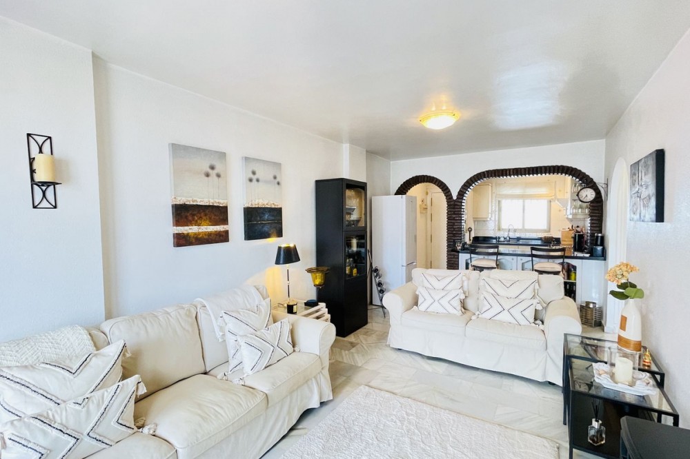 - LOCATION LOCATION LOCATION !!!! Only a 4 minute walk to the beach; super markets; restaurants and shops of Riviera Del Sol you can find this beautifully presented 2 bedroom 1 bathroom apartment ! Situated on the first floor - only a few steps up from the ground floor level - no lift- of an established and very well maintained community that just has been repainted in the beginning of this year and 50 meters from the R11 Sport Club that is known for the amazing gym; groups lessons; tennis and paddle facilities . The apartment is very well kept ; has a fully fitted half open kitchen, air conditioning in the living room and the master bedroom and is sold fully furnished. The terrace has an open view and with its south / west orientation all day sun. The communal gardens and lovely pool are very well maintained and the community fees are low. There is also plenty of parking in the area around the complex. When you’re looking for a sunny holiday home this apartment ticks every box. Don’t miss this opportunity to own a slice of paradise in a top location only 25 min driving from Malaga airport, 10 minutes from Fuengirola and from Marbella centre. Viewings highly recommended – this opportunity won’t stay on the market for long!