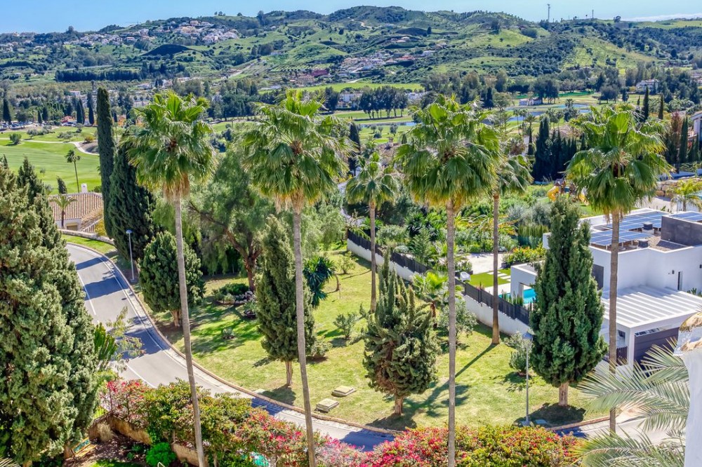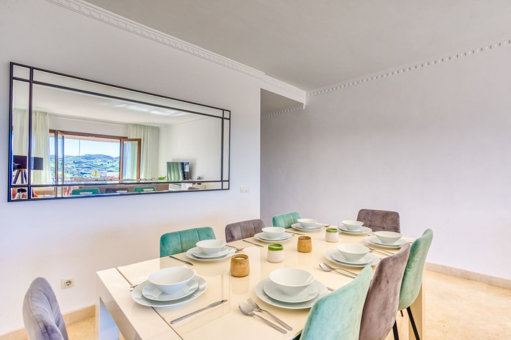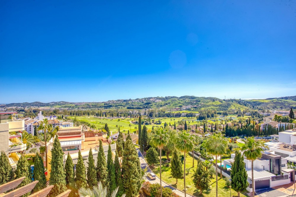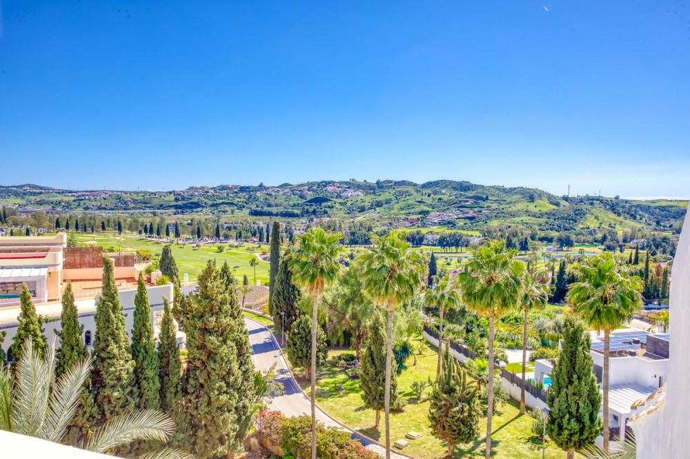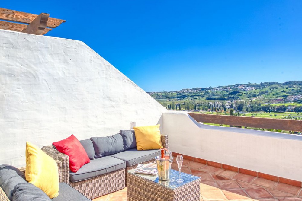- Luxurious South-Facing Duplex Penthouse in Mijas Golf – Panoramic Views & Elegant Design We are delighted to present this exceptional 3-bedroom, 2-bathroom Duplex Penthouse located in the highly sought-after community of Single Homes, in the heart of Mijas Golf. Renowned for its prime location, stunning scenery, and well-maintained grounds, this community offers a lifestyle of comfort, luxury, and convenience. This south-facing penthouse boasts panoramic views over the lush fairways of Mijas Golf and the surrounding mountain range. Enjoy sun-drenched terraces and a peaceful setting, all within easy reach of local amenities. Key Features: Direct lift access to your front door Fully fitted kitchen with separate utility/laundry room Bright and spacious open-plan lounge and dining area, designed with elegance and comfort in mind Expansive main terrace ideal for entertaining, dining al fresco, or simply soaking in the views Two double bedrooms on the entrance level, both with fitted wardrobes; one with direct terrace access Stylish family bathroom on the same level Upstairs, a generously sized master suite awaits, complete with private terrace and en-suite bathroom Thoughtfully designed with privacy and functionality at its core Additional Highlights: 3 beautiful swimming pools surrounded by landscaped gardens Underground parking space and private storage room included Proven rental potential – currently a successful holiday let, but also perfect as a permanent residence or second home Prime Location: Mijas Golf is home to two prestigious 18-hole golf courses and the luxurious La Zambra Hyatt 5-star hotel, featuring world-class dining and spa facilities. Just a 10-minute drive to the golden beaches of La Cala de Mijas and Fuengirola, and under 30 minutes to Málaga Airport. Local amenities are just minutes away, including sports clubs, shops, restaurants, and the popular Zia Lola restaurant with its adjacent supermarket – all within walking distance. A bus stop conveniently located outside the complex offers easy transport options for guests and residents alike. A beautifully maintained property offering style, space, and spectacular views – early viewings highly recommended. Contact us today to arrange your private tour.