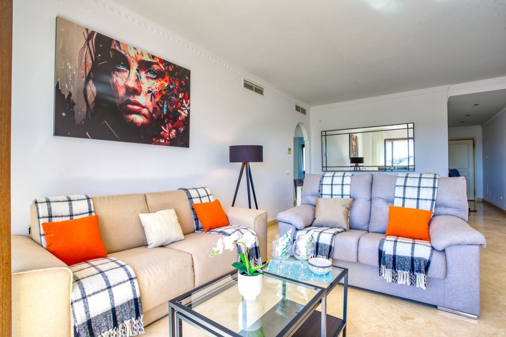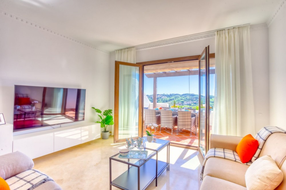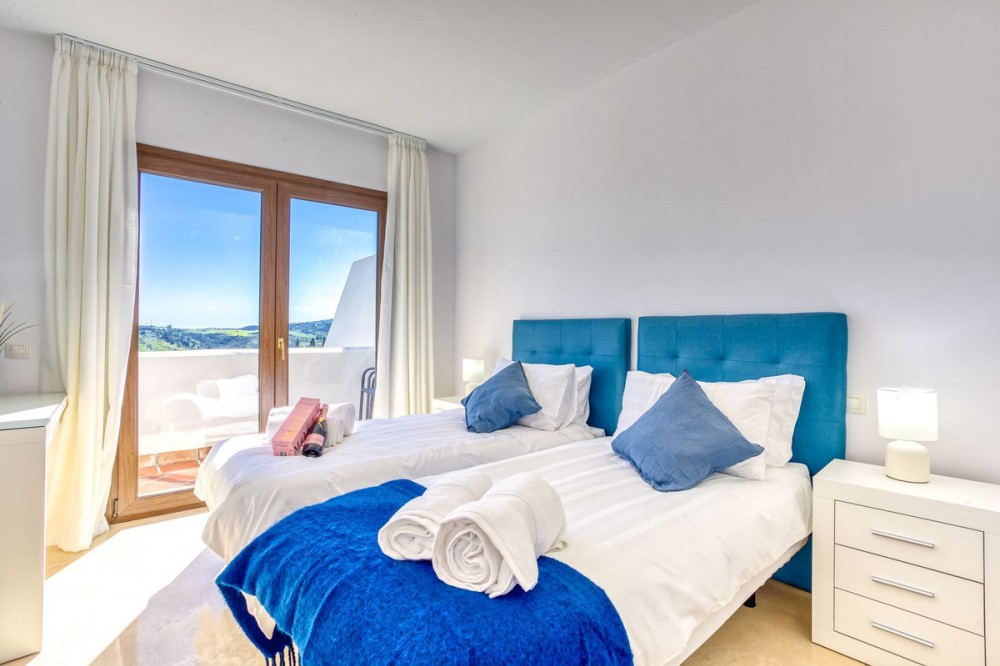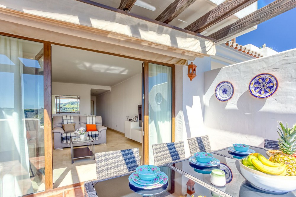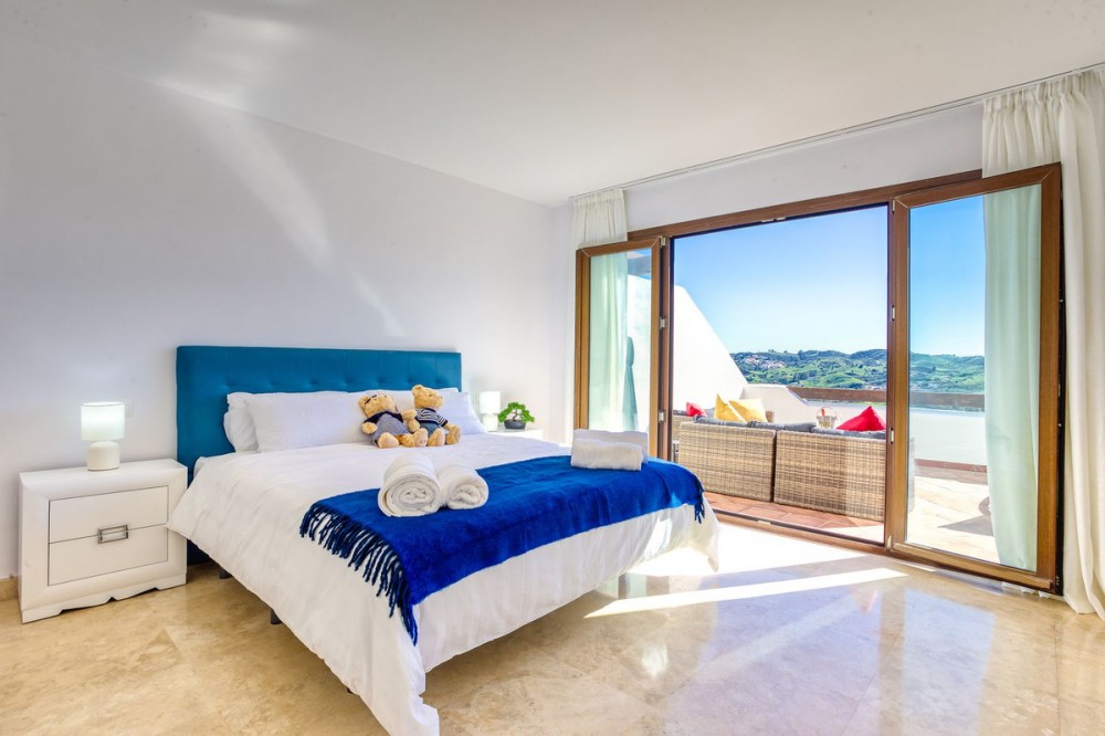 - Luxurious South-Facing Duplex Penthouse in Mijas Golf – Panoramic Views & Elegant Design We are delighted to present this exceptional 3-bedroom, 2-bathroom Duplex Penthouse located in the highly sought-after community of Single Homes, in the heart of Mijas Golf. Renowned for its prime location, stunning scenery, and well-maintained grounds, this community offers a lifestyle of comfort, luxury, and convenience. This south-facing penthouse boasts panoramic views over the lush fairways of Mijas Golf and the surrounding mountain range. Enjoy sun-drenched terraces and a peaceful setting, all within easy reach of local amenities. Key Features: Direct lift access to your front door Fully fitted kitchen with separate utility/laundry room Bright and spacious open-plan lounge and dining area, designed with elegance and comfort in mind Expansive main terrace ideal for entertaining, dining al fresco, or simply soaking in the views Two double bedrooms on the entrance level, both with fitted wardrobes; one with direct terrace access Stylish family bathroom on the same level Upstairs, a generously sized master suite awaits, complete with private terrace and en-suite bathroom Thoughtfully designed with privacy and functionality at its core Additional Highlights: 3 beautiful swimming pools surrounded by landscaped gardens Underground parking space and private storage room included Proven rental potential – currently a successful holiday let, but also perfect as a permanent residence or second home Prime Location: Mijas Golf is home to two prestigious 18-hole golf courses and the luxurious La Zambra Hyatt 5-star hotel, featuring world-class dining and spa facilities. Just a 10-minute drive to the golden beaches of La Cala de Mijas and Fuengirola, and under 30 minutes to Málaga Airport. Local amenities are just minutes away, including sports clubs, shops, restaurants, and the popular Zia Lola restaurant with its adjacent supermarket – all within walking distance. A bus stop conveniently located outside the complex offers easy transport options for guests and residents alike. A beautifully maintained property offering style, space, and spectacular views – early viewings highly recommended. Contact us today to arrange your private tour.