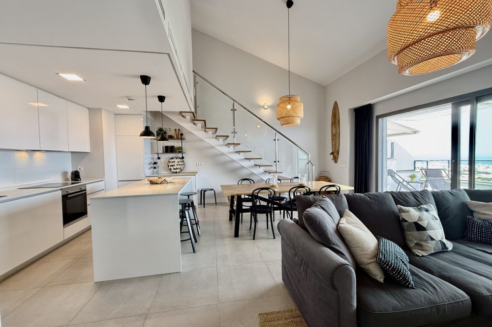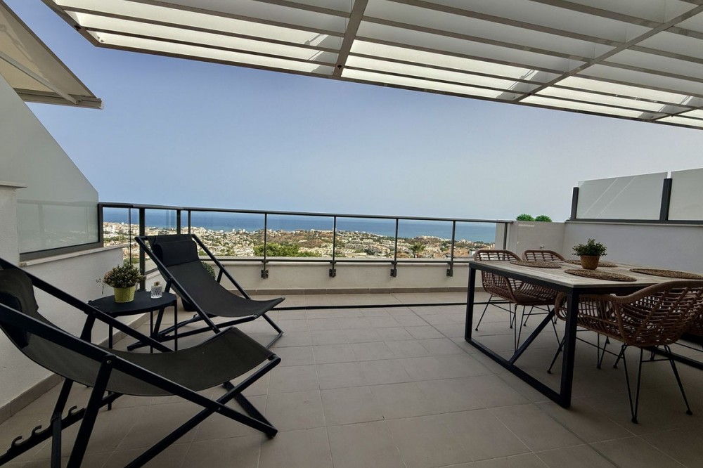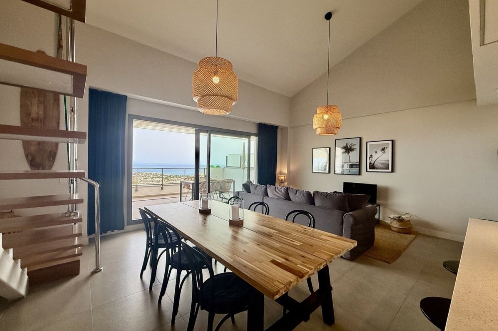 - Discover this charming duplex penthouse in a premium residential complex located in Benalmádena, south-facing with sea views in a unique setting, a pleasure for the senses. It consists of three bedrooms on the upper floor with two bathrooms on the same floor, one of which is en suite, and a spectacular terrace to enjoy the views. On the ground floor, there is a living/dining room with access to a ground floor terrace with panoramic sea views, a kitchen island equipped with state-of-the-art appliances, and a guest toilet. Residential complex with a wide variety of community services for relaxation or socialising, if desired, including: - Wellness area with sauna - Residents' social club - An exclusive ‘gastronomic’ function room with a fully equipped kitchen. -Gym and swimming pools This privileged location is close to essential services such as schools, supermarkets, restaurants, golf courses, hospitals, etc., ensuring comfort and a high quality of life. Just 14 km from Malaga airport, 17 km from the centre of Malaga, 40 km from Marbella Ideal as a main residence, second home or investment