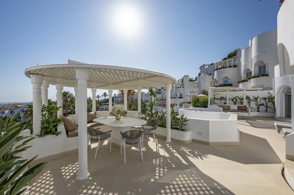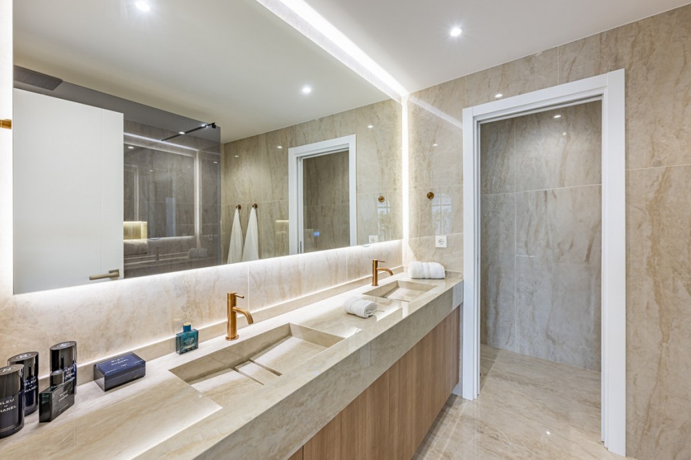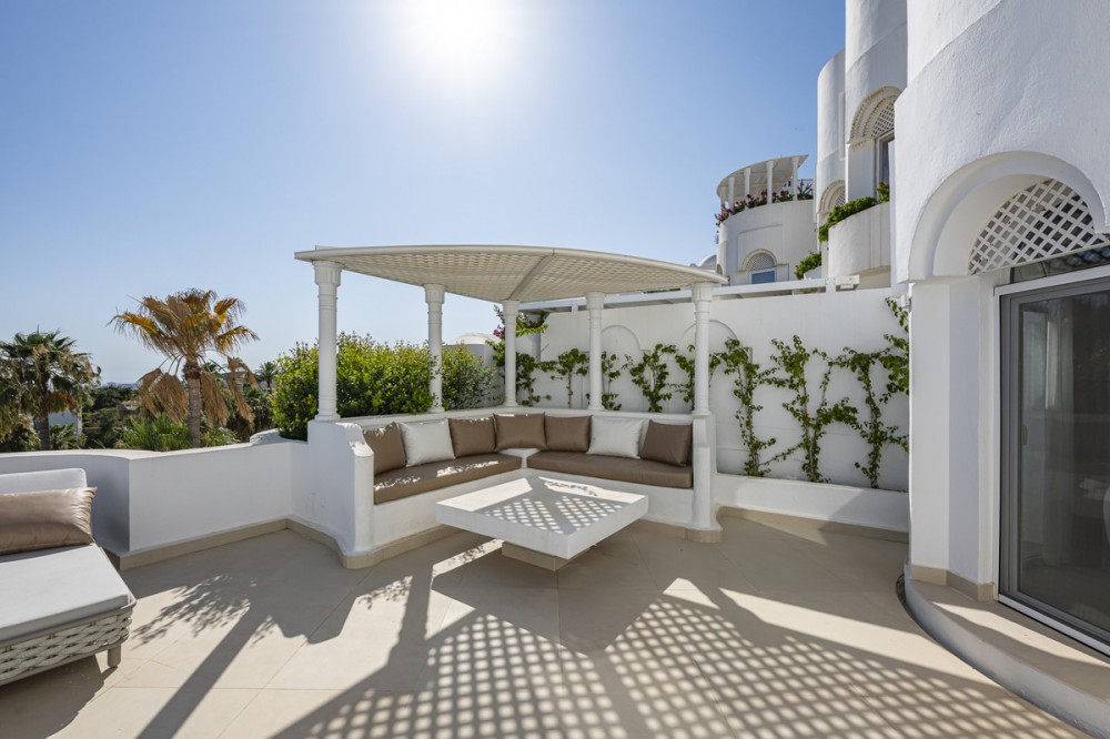 - EXCLUSIVE LISTING; Situated in the prestigious Marbella Golden Mile in Marbella, Malaga, this exceptional luxury apartment offers an unparalleled living experience in one of the region’s most sought-after locations. Exclusively available through sole agency, the property combines contemporary elegance with outstanding amenities and panoramic views of the sea, mountains, and countryside. The residence boasts a generous built area of 195m², with 190m² of refined interior space complemented by a 75m² private terrace, providing ample room for both relaxation and entertaining guests. Designed with comfort and sophistication in mind, the apartment comprises three spacious bedrooms, each with its own en-suite bathroom, and a total of four toilets. The interior features an open plan, fully fitted kitchen equipped with modern appliances, a welcoming living room with a fireplace, and a dedicated dining area. High-quality finishes such as porcelain floors, double glazing, and glass doors enhance the sense of luxury, while fitted wardrobes and a storage room offer practical convenience. Recent renovations have ensured the property is in excellent condition, with optional designer furniture available to suit personal tastes. Technology and security are at the forefront of this home, including a smart home system, video entrance, alarm, and internet connectivity via both Wi-Fi and fibre optic. The apartment is set within a gated community, providing peace of mind and exclusivity, and benefits from amenities such as a private pool with automatic irrigation, a communal garden, and a private garage. Air conditioning and an advanced heating system ensure year-round comfort. The location is particularly advantageous, being mountainside yet close to town, renowned schools, and a diverse selection of restaurants. Residents enjoy easy access to local amenities and transport links, making this apartment an ideal choice for those seeking a luxurious lifestyle in Marbella’s iconic Golden Mile. With breathtaking sea, mountain, and pool views from the covered and private terraces, this property epitomises refined coastal living.