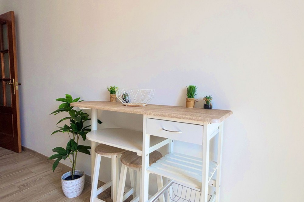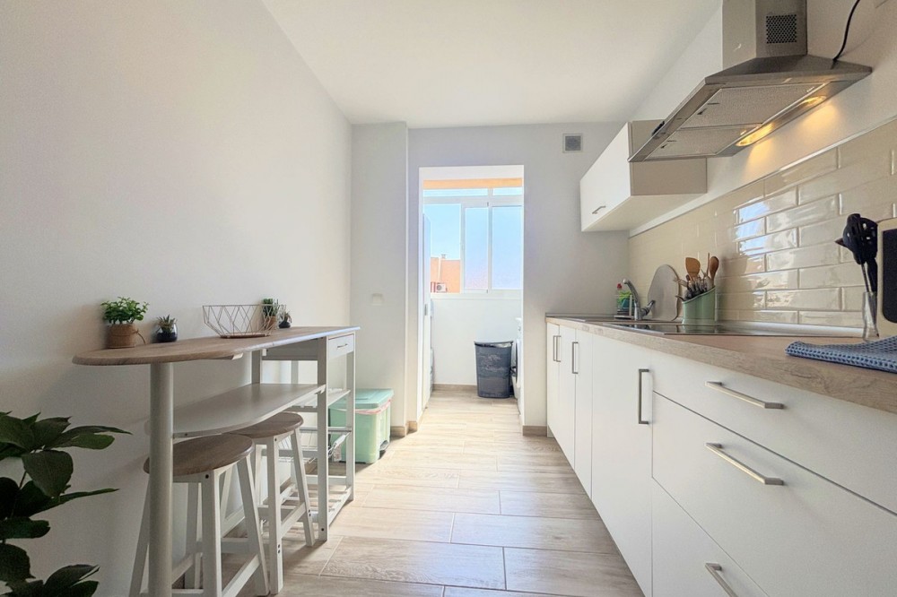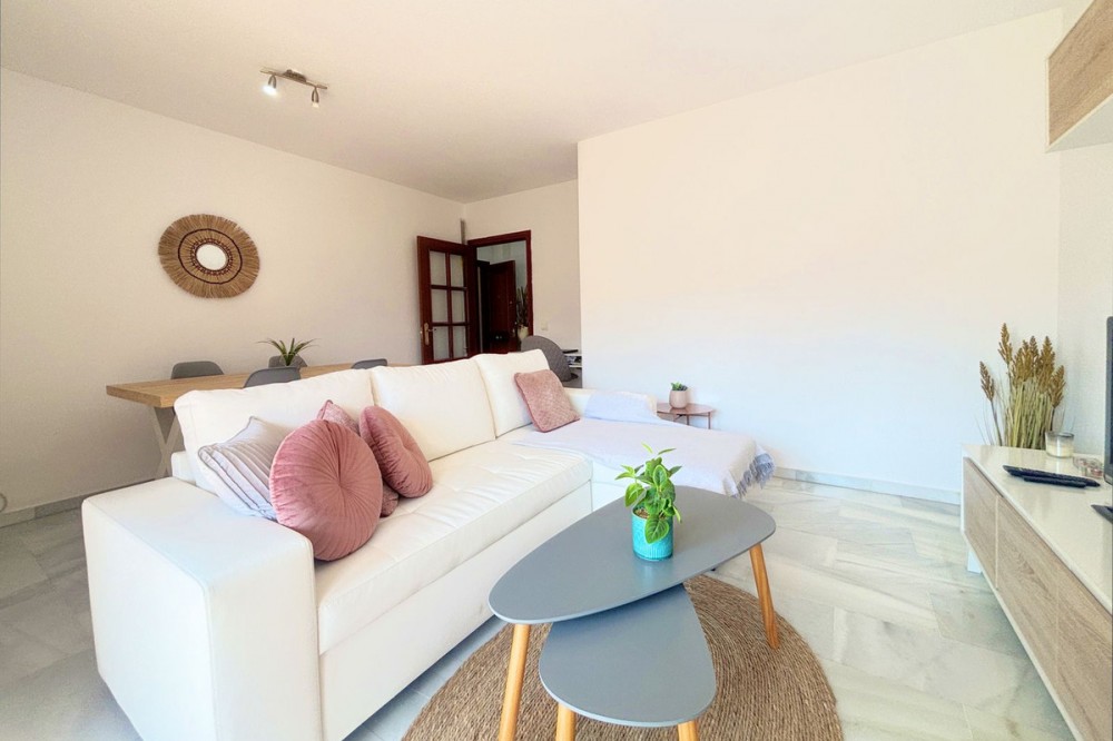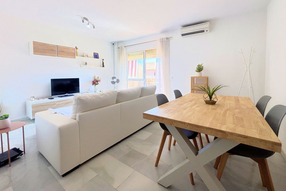 - WONDERFUL APARTMENT WITH TERRACE NEAR ESTEPONA TOWN CENTRELocated just a 10-minute walk from the vibrant heart of Estepona and all essential services, this bright fifth-floor property stands out for its excellent southeast orientation, allowing for abundant natural light throughout the day. The apartment features two comfortable bedrooms, a full bathroom, a fully equipped independent kitchen, and a cozy living room with direct access to a charming terrace — perfect for enjoying the Mediterranean climate. Its functional layout, the peaceful surroundings, and the proximity to shops, schools, and public transport make it an ideal choice as a permanent residence or a rental investment. A unique opportunity to live or invest in one of Estepona’s most sought-after areas.
