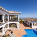 - Luxury Villa in Valtocado – Panoramic Views Set in the prestigious and tranquil urbanisation of Valtocado, Mijas, this impressive modern villa offers the ultimate blend of privacy, comfort, and spectacular scenery. Just 20 minutes from Málaga Airport, 15 minutes from Fuengirola, and only 5 minutes from the charming whitewashed village of Mijas Pueblo, the location is as convenient as it is serene. Perched to capture both the Mediterranean Sea and Ronda mountains, this south-facing property enjoys some of the most breathtaking panoramic views on the Costa del Sol. The villa features underfloor heating, hot and cold A/C, tempered glass windows throughout, and solar panels for both water and underfloor heating. There are two lifts: one from the entrance to the garage, and another to the rooftop terrace with jacuzzi. Outdoors, you’ll find an infinity pool, children’s pool, extensive terraces, and a large outdoor kitchen. On the ground floor, a grand entrance hall with guest WC leads into a vast open-plan dining and living area. To one side is a fully fitted modern kitchen with high-end appliances including two ovens, two fridges, two freezers, induction cookers, dishwasher, microwave, and a special tap for filtered drinking water, with direct garden access. On the other side, patio doors open to a large terrace with glass curtains, perfect for enjoying sunrise and sunset year-round. The elegant living room features coloured LED ceiling lighting, direct terrace access, and a lift to the rooftop jacuzzi. The master suite on this floor boasts a wraparound terrace, a luxurious walk-in closet with central island, and an en-suite bathroom with balcony—ideal for soaking in a hot bath while watching the sun set over the Andalusian hills. The lower level, accessible by stairs or lift, includes a second spacious living area with rustic bar, wine shelving, and billiard table, two generous en-suite bedrooms with garden and pool access (one with Turkish bath), a guest WC, large laundry room with kitchenette and storage, and a cinema room with surround sound and theatre seating. A completely independent guest annex offers a bright kitchen, living room, spacious bedroom, bathroom, and an additional utility room for electrics and water systems. The property is surrounded by a wraparound garden with multiple terraces, a saltwater infinity pool plus a children’s pool, and a two-car garage. An eco-friendly septic tank recycles water for irrigation. This villa combines modern luxury, energy efficiency, and unbeatable panoramic views, all in a prime Costa del Sol location.