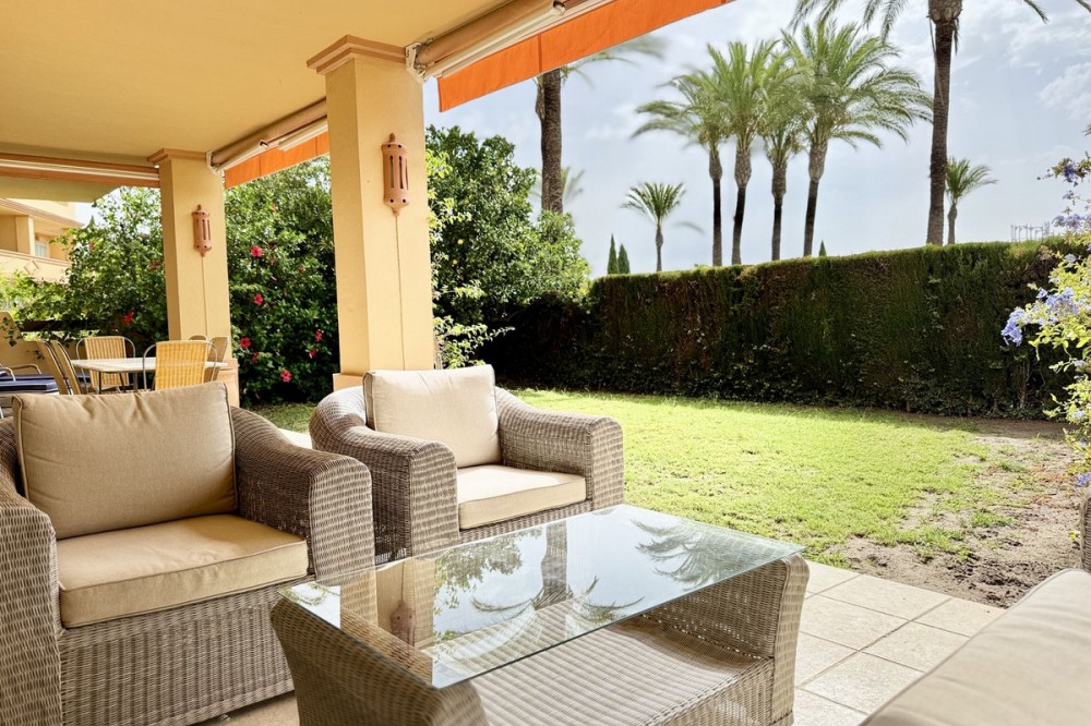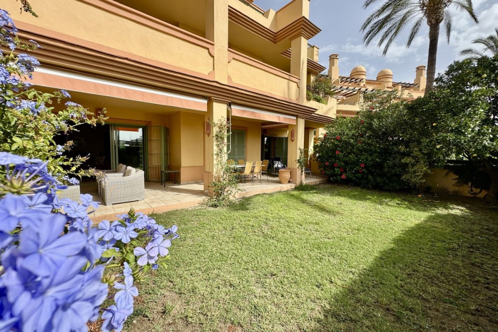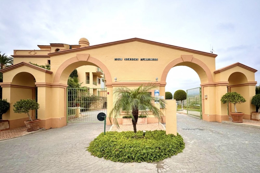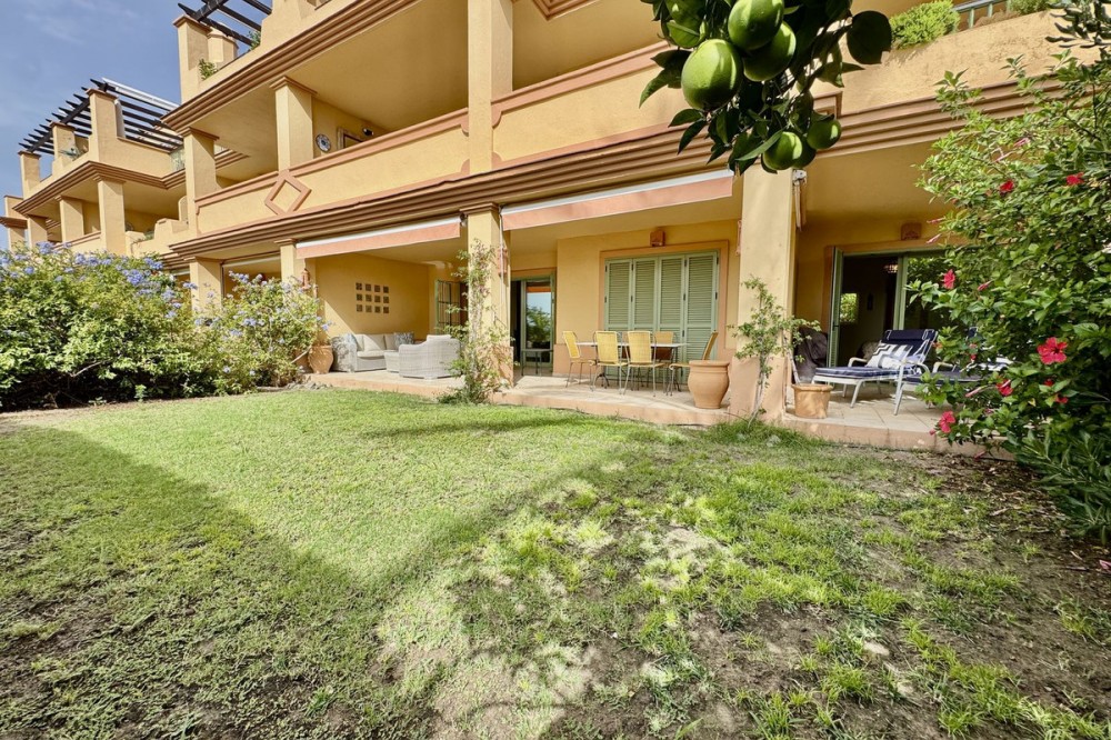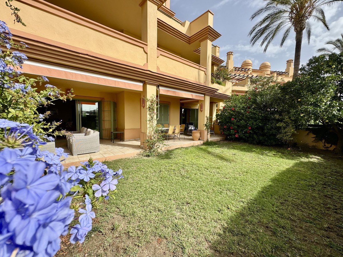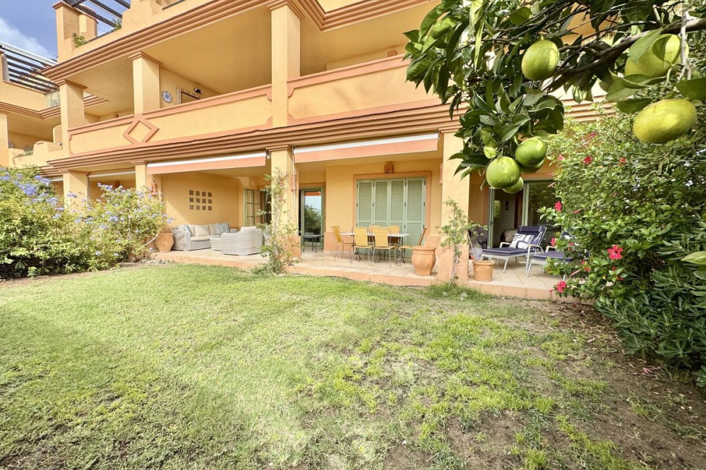 - Beautiful 3-Bedroom Ground Floor Corner Apartment with Private Garden in Los Flamingos Golf Resort. Located in the exclusive and secure Los Flamingos Golf Resort, this spacious 3-bedroom ground floor corner apartment offers a perfect blend of comfort, style, and privacy. With a built area of 162 m², plus a private garden of 77 m² and a terrace of 44 m², this property is ideal as a permanent home or a luxury holiday retreat. Upon entering, a welcoming entrance hall leads into the generous main living area, complete with an elegant fireplace and large windows that open directly to the terrace and lush private garden — a perfect outdoor sanctuary with direct access to the heated communal pool. The newly renovated independent kitchen is spacious and fully equipped with high-end appliances and premium finishes. The master bedroom stands out with its ample space, a brand-new en-suite bathroom, and direct access to the main terrace and garden, blending indoor and outdoor living beautifully. All three bedrooms are equipped with built-in wardrobes and large windows for natural light. The three bathrooms are spacious with underfloor heating. Set within a quiet, gated community surrounded by nature, this property is just: - 5 minutes from the beach and all essential services - 10 minutes from Puerto Banús and its world-class shopping, dining, and entertainment - Adjacent to the Los Flamingos Golf Course and the Villa Padierna Palace Hotel & Spa This apartment is a fantastic choice for those seeking a primary residence, a lock-up-and-leave holiday home, or a buy-to-let investment. It is especially appealing to golf lovers, offering access to one of the finest golf resorts on the Costa del Sol, in an area known for having the best climate in continental Europe. Additional Features: Renovated bathroom and kitchen with top-quality materials, Chimney Direct access to pool from the garden Underground parking space Separate private storage room 24-hour security Beautiful tropical gardens and two outdoor swimming pools (one of which is heated)
