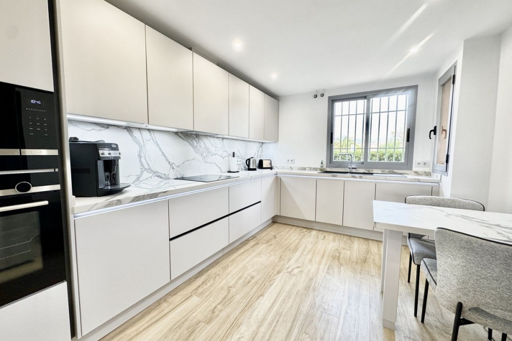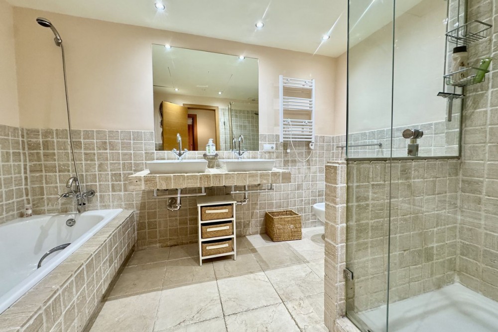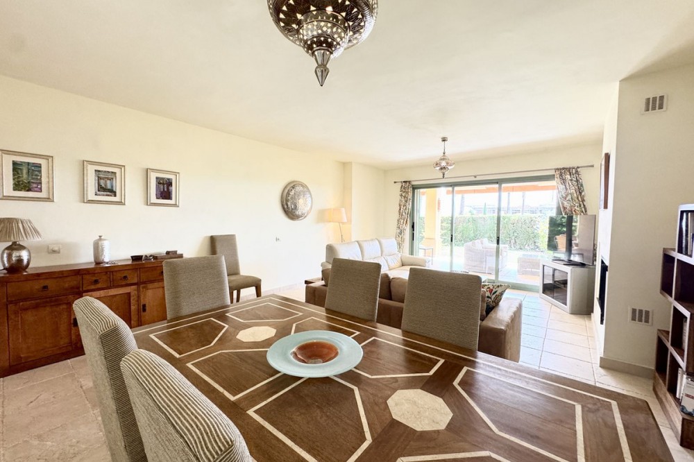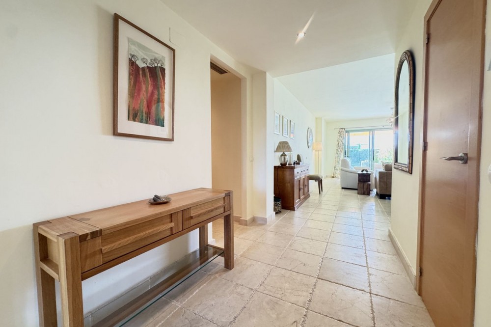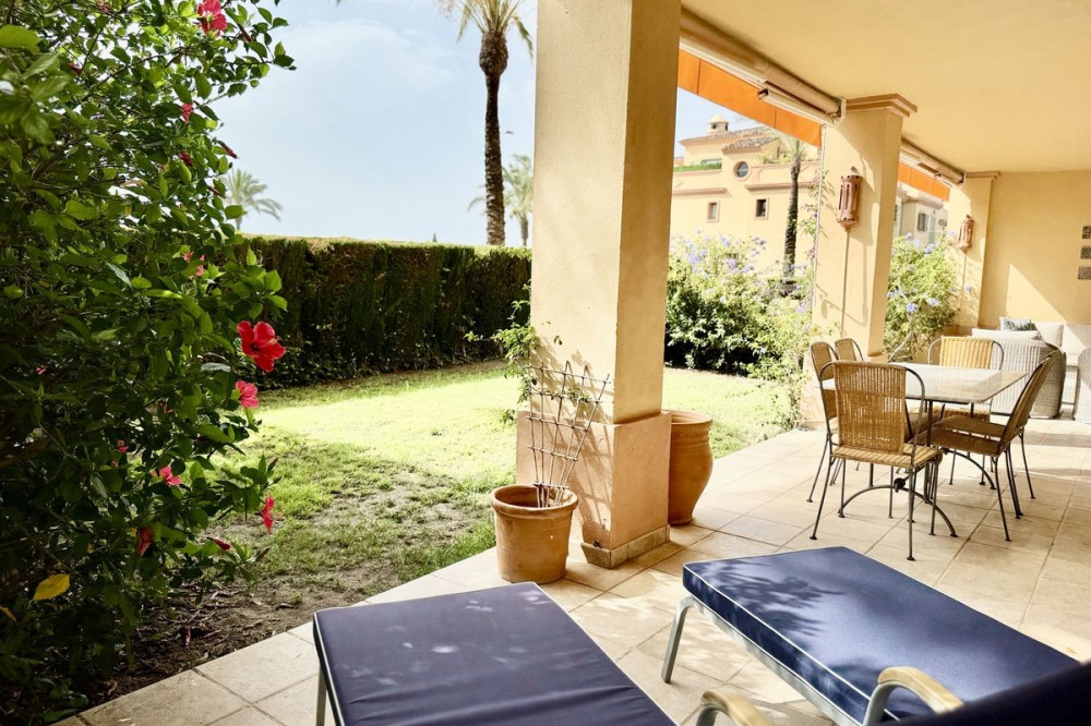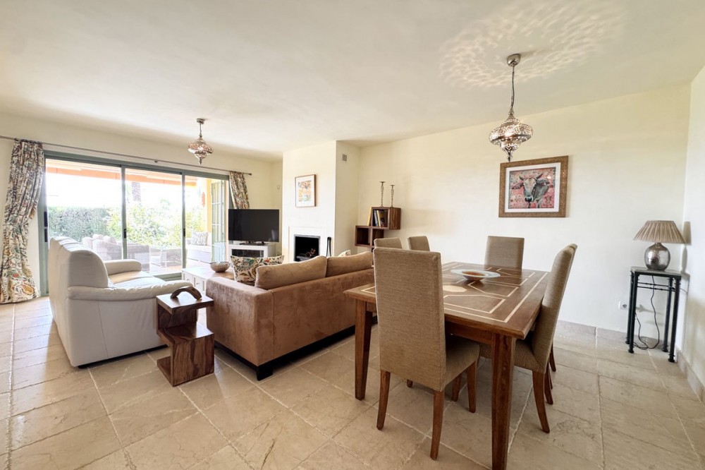 - Beautiful 3-Bedroom Ground Floor Corner Apartment with Private Garden in Los Flamingos Golf Resort. Located in the exclusive and secure Los Flamingos Golf Resort, this spacious 3-bedroom ground floor corner apartment offers a perfect blend of comfort, style, and privacy. With a built area of 162 m², plus a private garden of 77 m² and a terrace of 44 m², this property is ideal as a permanent home or a luxury holiday retreat. Upon entering, a welcoming entrance hall leads into the generous main living area, complete with an elegant fireplace and large windows that open directly to the terrace and lush private garden — a perfect outdoor sanctuary with direct access to the heated communal pool. The newly renovated independent kitchen is spacious and fully equipped with high-end appliances and premium finishes. The master bedroom stands out with its ample space, a brand-new en-suite bathroom, and direct access to the main terrace and garden, blending indoor and outdoor living beautifully. All three bedrooms are equipped with built-in wardrobes and large windows for natural light. The three bathrooms are spacious with underfloor heating. Set within a quiet, gated community surrounded by nature, this property is just: - 5 minutes from the beach and all essential services - 10 minutes from Puerto Banús and its world-class shopping, dining, and entertainment - Adjacent to the Los Flamingos Golf Course and the Villa Padierna Palace Hotel & Spa This apartment is a fantastic choice for those seeking a primary residence, a lock-up-and-leave holiday home, or a buy-to-let investment. It is especially appealing to golf lovers, offering access to one of the finest golf resorts on the Costa del Sol, in an area known for having the best climate in continental Europe. Additional Features: Renovated bathroom and kitchen with top-quality materials, Chimney Direct access to pool from the garden Underground parking space Separate private storage room 24-hour security Beautiful tropical gardens and two outdoor swimming pools (one of which is heated)
