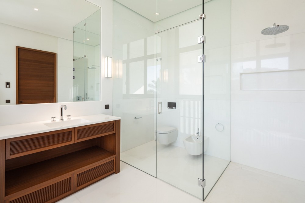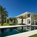 - This exceptional residence, exclusive to the Finca Cortesin resort, exudes a captivating blend of luxury and elegance. Designed by the renowned Jose Maria Sierra architects, this architectural masterpiece stands unrivalled on the Costa del Sol, boasting a remarkable plot and breathtaking views. The property showcases an abundance of floor-to-ceiling windows that grace both levels, allowing natural light to flood the interiors. Its striking white facade, embellished with wooden accents, sets the tone for a seamless transition between the exterior and interior spaces. Of particular note is the impressive ceiling height, soaring to an astonishing 9 metres in the ground-level living area. A unique feature is the smaller living area on the top floor, providing a vantage point overlooking the ground-floor living space—a private retreat, akin to a concealed terrace within the property. The upper level is dedicated to the master bedroom and two guest rooms, each offering their own allure with stunning views of the golf course and Mediterranean Sea. The lower level encompasses the remaining bedrooms, living area and kitchen—a harmonious blend of functionality and style. The entire ground floor effortlessly opens up to the garden, welcoming fresh air and natural light into the property. The crown jewel of this residence is the spectacular garden, expansive in size and meticulously manicured. A haven for outdoor enthusiasts, the garden boasts an enticing pool with dark azure tiles that beckons for a refreshing swim, while the integrated gazebo next to the pool provides an idyllic setting for relaxation. Majestic palm trees line the garden, complementing the sweeping vistas of the golf course and Mediterranean coastline. Delightful landscaping, featuring stunning flower beds and meticulously trimmed bushes, adds a touch of natural beauty. With its privileged frontline golf location, awe-inspiring architecture and unparalleled ambiance, this truly unique property stands as a testament to the allure of the Finca Cortesin Resort.