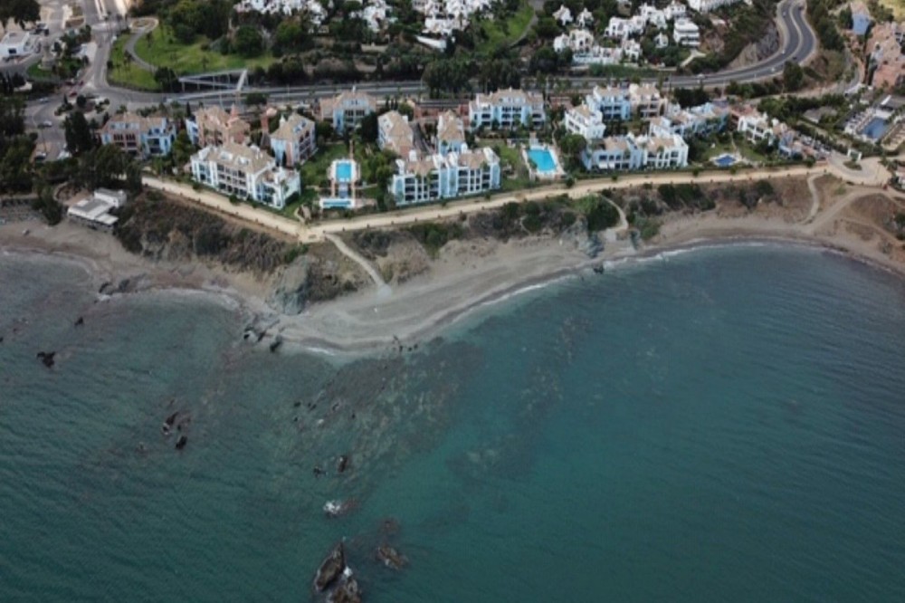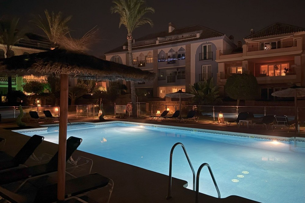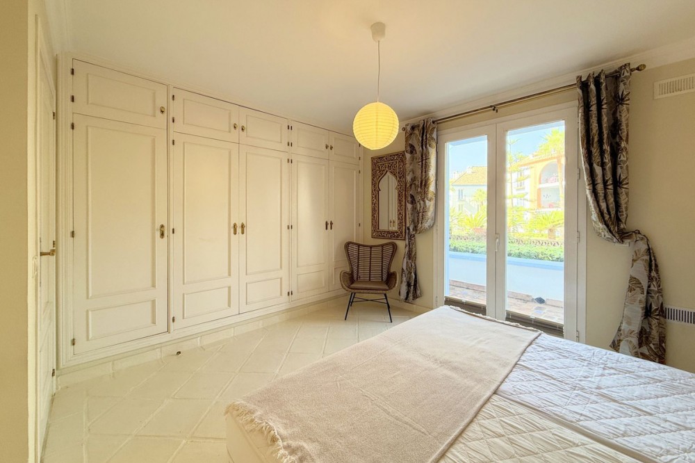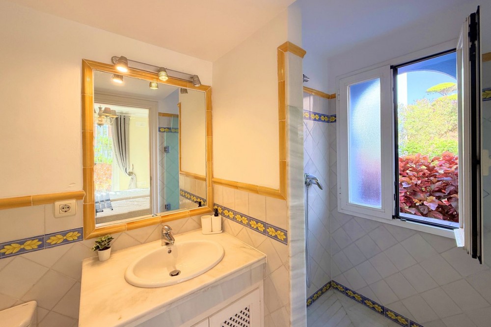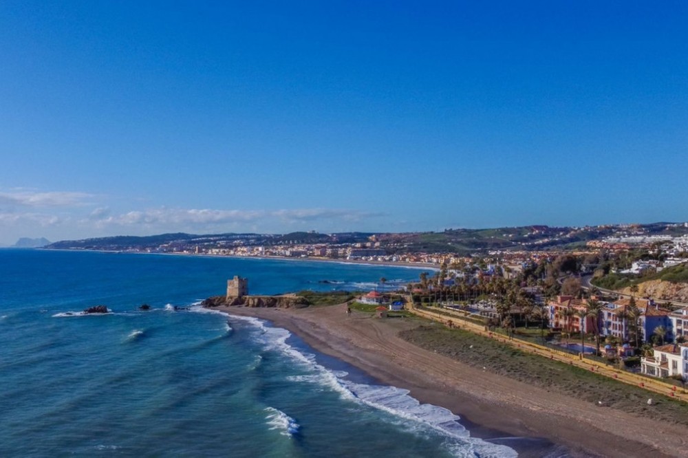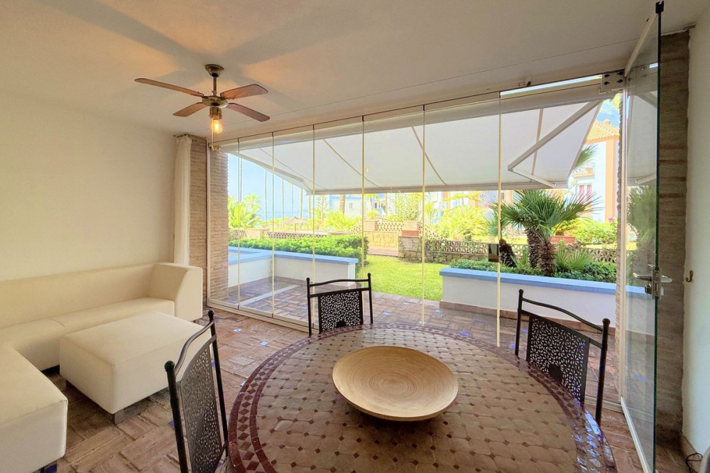 - NEW TO THE MARKET: IMPRESSIVE FIRST-LINE BEACH APARTMENT, GROUND FLOOR, CORNER UNIT, with a PRIVATE GARDEN perfectly maintained by the community, offering SPECTACULAR VIEWS OF THE SEA, THE BEACH, GIBRALTAR, AND AFRICA. Located in the beautiful Bay of Casares, next to a protected historical area with an ancient Arab tower, within the stunning La Perla de la Bahía complex, beautifully designed by fusing Andalusian and Arab styles. Surrounded by lush gardens, magnificent pools (2 heated), a wide variety of decorative fountains, and relaxation areas designed for ultimate enjoyment. Only a 2-minute walk to 3 different beaches, 2 renowned restaurants, and the prestigious Finca Cortesín golf resort, which is awarded every year as the Best Golf Resort in Spain, is ranked among the 50 best golf courses in the world, and hosted the prestigious Solheim Cup competition in 2023, among others. Strategically located between Estepona and the charming Puerto de la Duquesa and the village of Sabinillas, all just a 5-minute drive away, offering access to a wide range of shops, restaurants, leisure activities, and different golf courses. The gated community offers 24-hour security and video surveillance, ensuring peace of mind and safety. This property includes 2 parking spaces in a garage and 1 large storage room. All of this makes it not only a dream residence but also an outstanding investment opportunity with high rental potential. A unique property that must be seen!