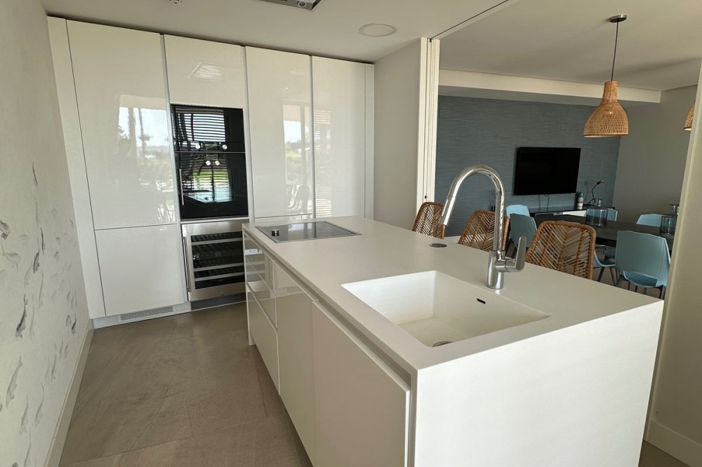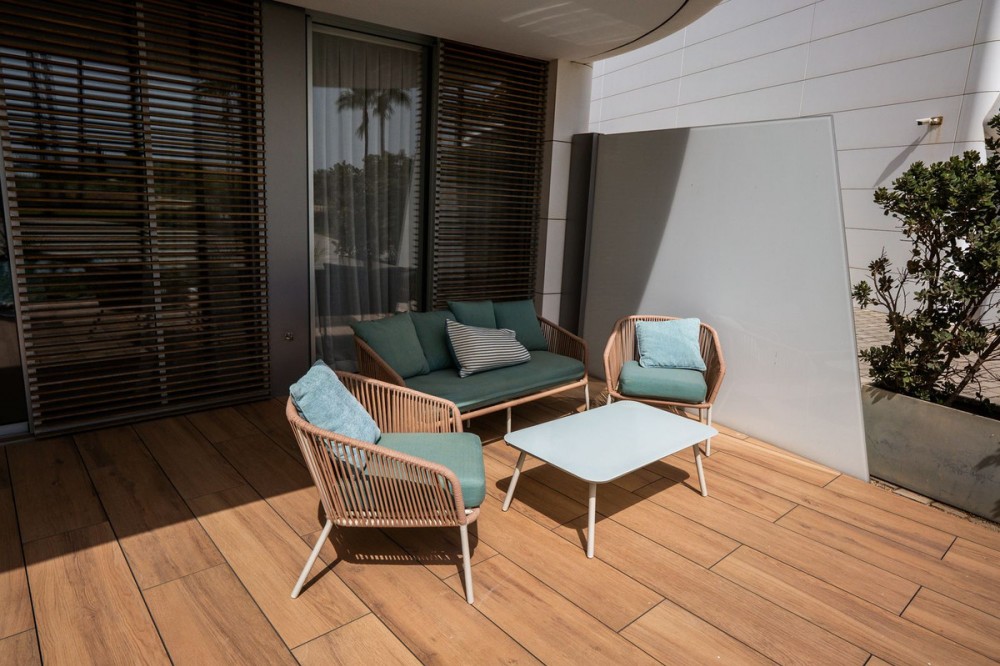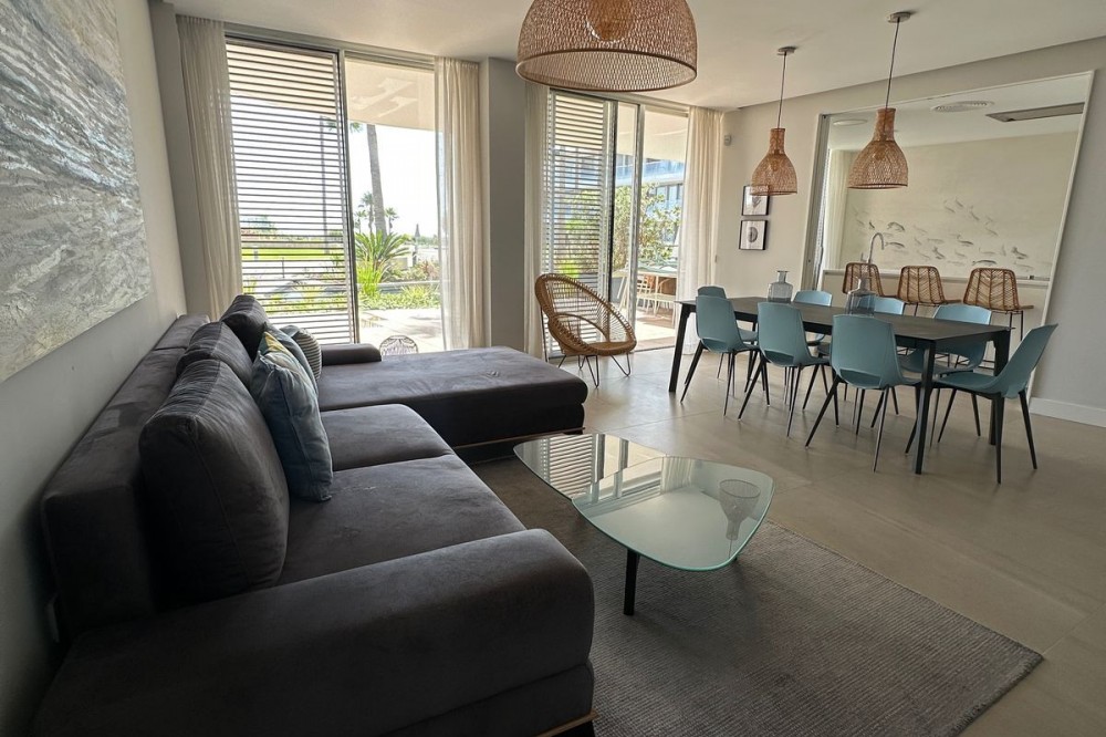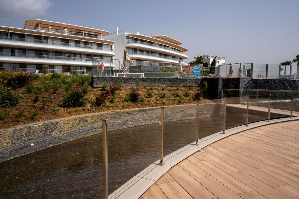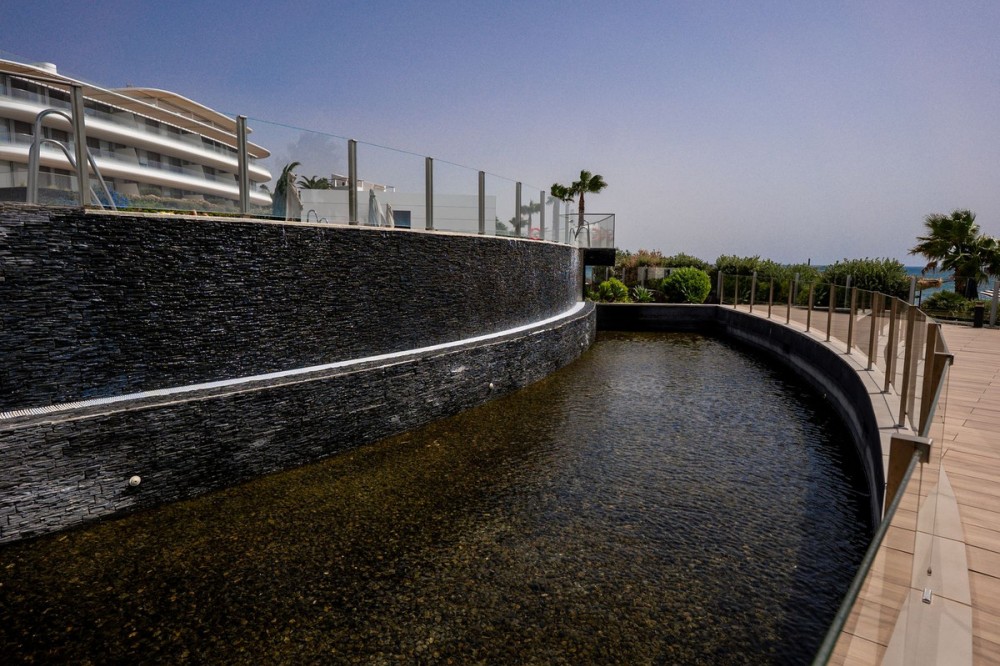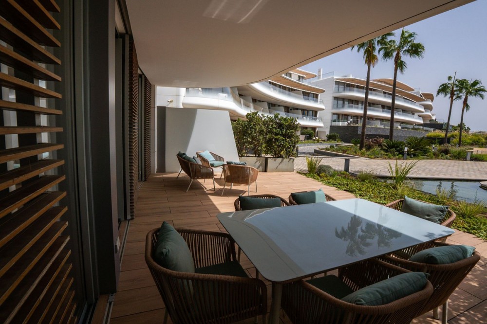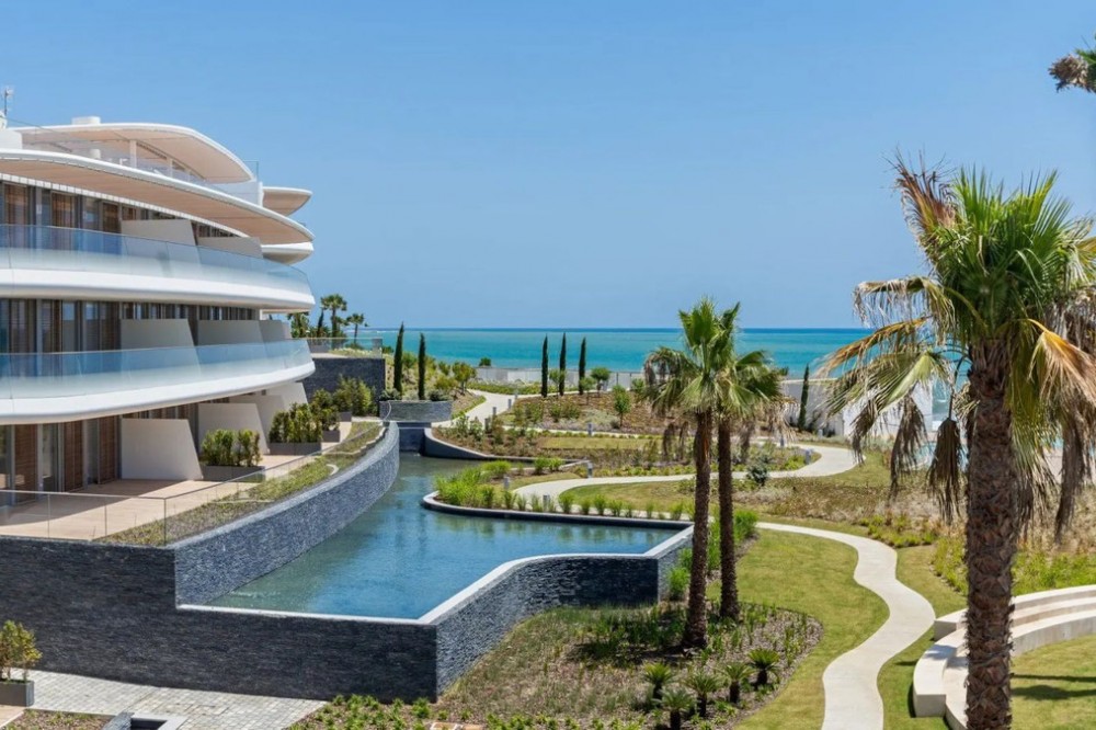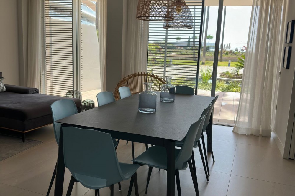 - Luxury Beachfront Apartment in the Prestigious "The Edge" – Estepona This exceptional apartment, located in the complex, offers everything you would expect from a premium beachfront property – modern design, top-quality finishes, spectacular views, and access to world-class amenities. Property Description: This spacious ground floor apartment offers approx. 121 m² of usable space and features 2 bedrooms, 2 elegant bathrooms, and a minimalist-style open-plan kitchen fully equipped with high-end appliances. The bright and airy living area leads directly to a 17 m² south-facing terrace with panoramic views of the Mediterranean Sea – the perfect spot to relax or enjoy al fresco dining. The price includes two underground parking spaces and a storage room, providing added convenience and storage space. Key Features of the Apartment: -South-facing orientation – plenty of natural light throughout the day -Sea views from the terrace -Smart home system -Underfloor heating, air conditioning, and energy-efficient aerothermal technology -Electric blinds, double glazing, and high-quality finishes -Premium kitchen appliances and an option to purchase fully furnished "The Edge" Complex – A Unique Lifestyle Experience: This luxurious beachfront development is the epitome of modern coastal living. Residents enjoy access to an impressive array of amenities: -Infinity outdoor swimming pool with sea views -Heated indoor pool, perfect for the winter months -Spa area with sauna and a fully equipped modern gym -Paddle tennis court, relaxation zones, and beautifully landscaped gardens -Club Nido (chiringuito) -24-hour security, surveillance, and controlled access Location: The complex is located in the western part of Estepona, with direct beach access. Nearby you'll find shops, restaurants, international schools, pharmacies, a hospital, and the marina – plus over 70 golf courses in the region, making it the perfect place to live or holiday all year round.