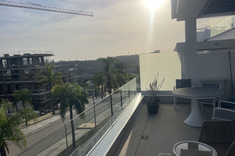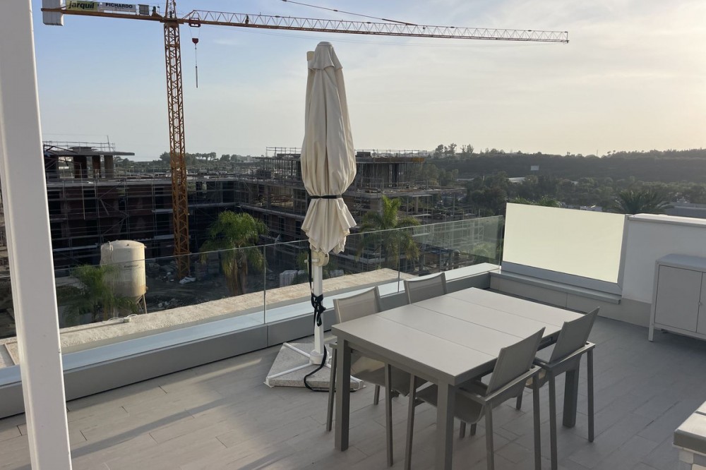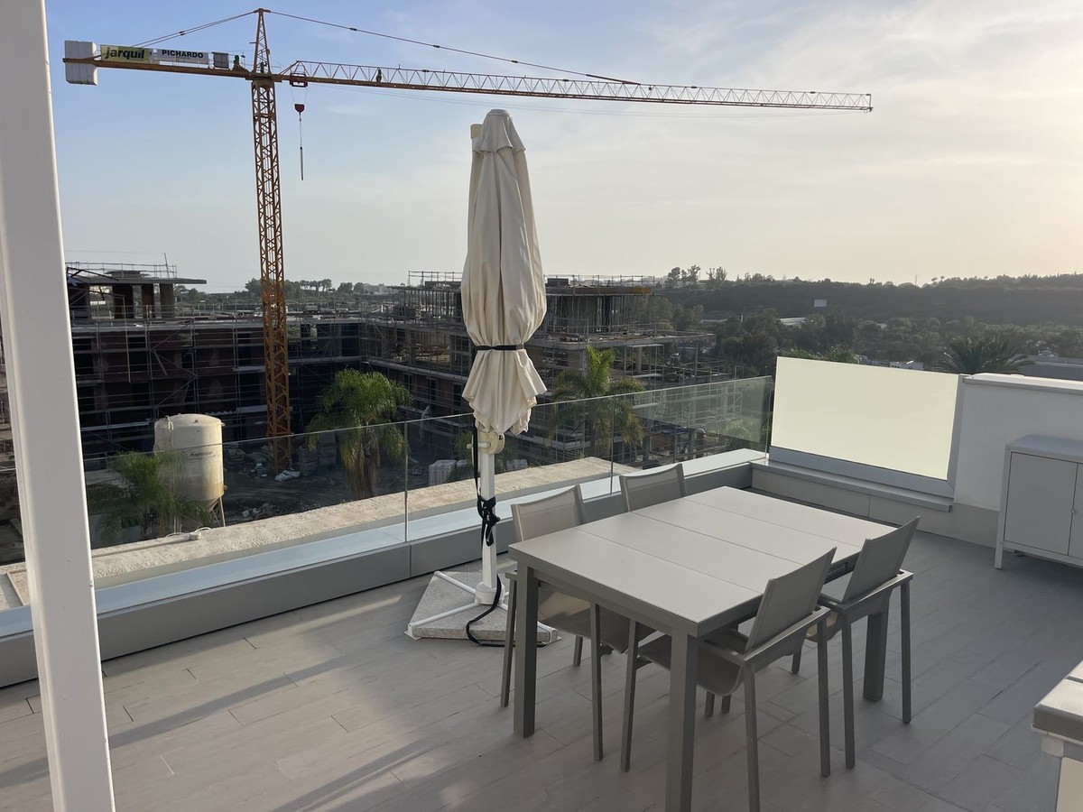 - Modern 2-bedroom penthouse located in the sought-after area of Cancelada, Estepona. This bright and contemporary top-floor residence features an expansive private rooftop solarium offering breathtaking sea views. The apartment includes two spacious bedrooms, sleek modern finishes, and a seamless indoor-outdoor flow that captures the Mediterranean lifestyle. Residents of this secure gated community enjoy access to exceptional amenities including two outdoor pools, a fully equipped gym, an indoor heated pool, and 24/7 security for peace of mind. The property also includes a private parking space in the underground garage and a separate storage room. Whether you’re looking for a stylish holiday escape, a rental investment, or a year-round home, this penthouse offers it all — with the added bonus of sea views from the rooftop solarium, top-tier facilities, and a location just minutes from golf courses, beaches and walking distance to cozy Cancelada village with a lot of great restaurants! A new neighboring residential complex is currently under development next door and is scheduled for completion in November 2025.