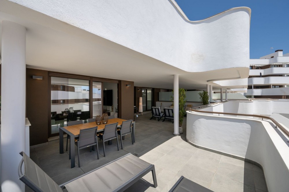 - Lovely brand new 3 bedroom apartment in Estepona Charming Mid Floor Apartment with Sea View – Prime Location! Welcome to this beautifully maintained 3-bedroom, 2-bathroom mid floor apartment, perfectly situated within walking distance to shops, restaurants, and the beach. With its south-facing orientation, this home is bathed in natural light throughout the day, offering a warm and inviting atmosphere. The apartment features a spacious open-plan kitchen and living room, ideal for both relaxing and entertaining. Two of the bedrooms offer direct access to a generous terrace, perfect for enjoying your morning coffee or evening sunsets with a partial sea view. Additional highlights include: ✔️ Private parking space in the secure community garage ✔️ Swimming pool within the community ✔️ Wheelchair-friendly access and layout ✔️ Dedicated laundry room and balcony for drying clothes ✔️ Easy, step-free access throughout the property Whether you're looking for a permanent residence, holiday home, or investment property, this apartment offers the perfect blend of comfort, convenience, and coastal living. This apartment comes fully furnitured. Don’t miss this rare opportunity – schedule your viewing today!