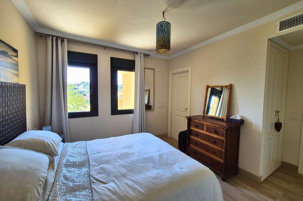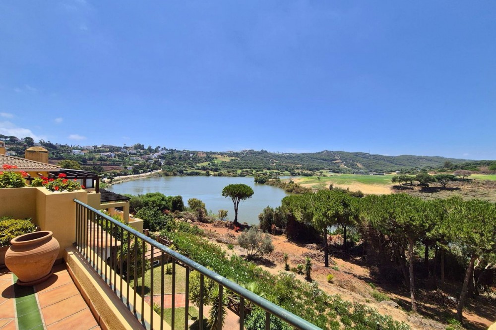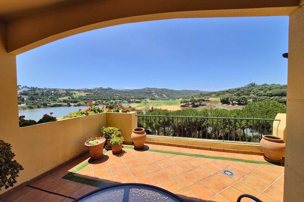 - Beautiful 2-bedroom, 2-bathroom penthouse, perfectly situated in the prestigious area of Sotogrande Alto. Offering breathtaking panoramic views over the Almenara Golf Course and its peaceful lake, this property combines comfort, elegance, and a privileged lifestyle. The interior features a bright and spacious living-dining area with a cozy fireplace, opening onto a generous terrace, ideal for relaxing or entertaining while enjoying the stunning scenery. The fully equipped kitchen is complemented by a separate utility room, and there's also a convenient guest cloakroom. Comfort is guaranteed year-round thanks to underfloor heating in the bathrooms and hot/cold air conditioning throughout the property. It also includes two private parking spaces and a secure storage room. Set within a beautifully maintained community, residents have access to landscaped gardens and three inviting swimming pools, creating a serene, resort-like atmosphere. Ideally located just minutes from renowned golf courses, Sotogrande International School, and the Marina, and within walking distance of the exclusive SO/ Sotogrande Spa & Golf Resort this penthouse is a rare opportunity for those seeking refined living in one of the most desirable areas of the Costa del Sol.