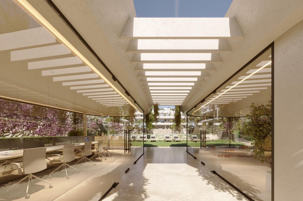- New Development: Prices from €389,000 to €999,000. [Bedrooms: 1 - 4] [Bathrooms: 1 - 2] [Built size: 51m2 - 124m2]. This is not simply a place to live. It’s a lifestyle ecosystem. From sunrise swims in your private pool to sunset walks along the coastal path, this is more than just a home — it’s a statement. Located in the vibrant heart of Estepona’s emerging west side, this thoughtfully designed, low-density development introduces a collection of 78 luxurious 1, 2, 3, and 4-bedroom apartments, brought to life with vision and care. Surrounded by lush vegetation and bathed in natural light, each residence offers a personal retreat from the ordinary. There’s a quiet elegance to the interiors here. A soothing palette of neutral tones, natural textures of wood and stone, and flowing spaces with floor-to-ceiling glass doors that dissolve the boundary between indoors and out. Architecture in this enclave enhances the natural surroundings. Smart orientation and low-density planning ensure optimal privacy, abundant sunlight, and expansive green views. Each apartment harmonizes with its environment. Sculptural yet understated, curved terraces mimic the coastline’s natural rhythm, while communal areas are deeply rooted in nature, featuring green roofs, layered planting, and the gentle shade of palm trees. This development offers resort-style amenities, discreetly integrated into the landscape. A tranquil spa hidden behind flowering stone walls, a serene coworking space with garden views and filtered light, and a fitness suite where glass walls reveal trees instead of treadmills. Start your day with a peaceful swim in the heated indoor pool or recharge in the refreshing outdoor saltwater pool. Unwind in the spa with a sense of stillness that money can’t buy, or share a fireside drink with like-minded neighbours as the evening sets in.