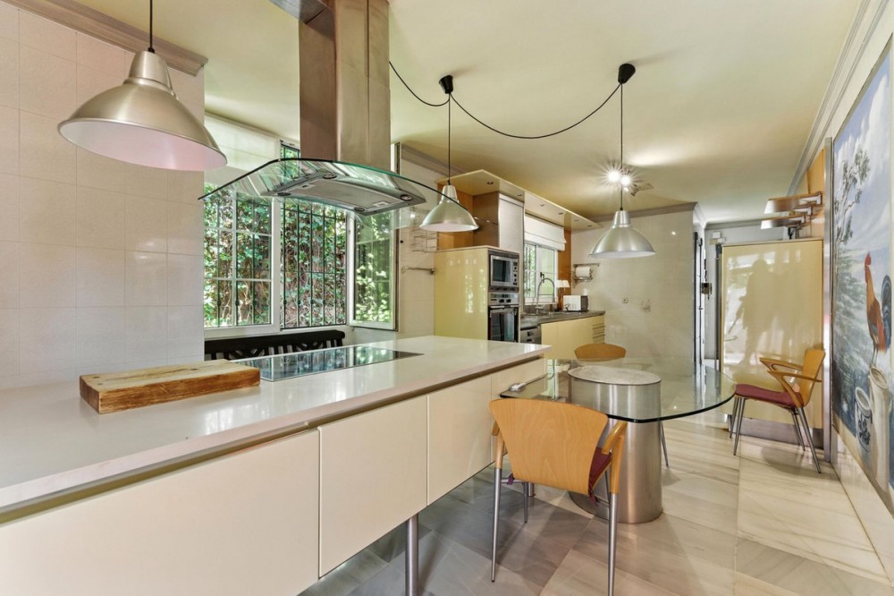 - Discover the timeless charm of Andalusian architecture combined with modern luxury in this exceptional villa, ideally situated in the heart of Marbella Centro. Just a short walk from the historic Old Town and the beach, this magnificent single-family residence offers the perfect blend of traditional craftsmanship, elegant design, and contemporary comfort. Set on a plot of 767 square meters, this Andalusian-style home reflects a perfect balance between solid construction and refined detail. The villa features ten spacious bedrooms, five bathrooms, and a three-car underground garage, surrounded by landscaped gardens, generous terraces, and a private swimming pool that invite relaxation and outdoor enjoyment. The ground floor welcomes you through a grand entrance porch into a spacious hallway that leads to an elegant living room with a stone fireplace and a formal dining room, both overlooking the garden. At the heart of the home, a central interior patio fills the living spaces with natural light. The fully equipped kitchen includes a separate pantry, laundry, and ironing area, while a large covered terrace with a barbecue provides the ideal setting for entertaining family and friends. This level also includes four comfortable bedrooms and two bathrooms, with direct access to the garden and pool area. The first and second floors, along with a solarium, offer six additional bedrooms and three bathrooms, each designed to provide maximum comfort and privacy. Two private terraces open to beautiful views of the surroundings, while the solarium terrace boasts breathtaking panoramic vistas of Marbella. This level also includes a storage loft, a dedicated area for the boiler and solar panels, and a central patio designed for the possible installation of an elevator. The basement features a secure three-car garage with automatic doors, providing convenience and safety. Throughout the villa, every detail reflects quality and sophistication. Premium features include underfloor heating, white marble flooring, and a double-combustion stone fireplace suitable for both gas and natural wood. The walls are adorned with handcrafted mural decorations and natural lime finishes, complemented by detailed plaster moldings that enhance the home’s elegance. The property is fully equipped with an integrated music system, fiber optic internet, security double-glazed Climalit windows with noise insulation, and wrought iron security bars. Motorized awnings and automated LED lighting offer modern convenience, while a full alarm and camera surveillance system ensures complete peace of mind. The exterior is equally impressive, featuring mature gardens with large perimeter trees that provide privacy, natural stone elements throughout — including columns, staircases, fireplaces, and fountains — and beautifully landscaped areas with a private ornamental pond and decorative obelisks. The grand natural stone entrance and antique wooden front door further emphasize the home’s distinctive Andalusian character. This exclusive villa enjoys a prime location within walking distance of Marbella’s vibrant Old Town, luxury boutiques, fine dining, and the city’s renowned beaches. It also offers easy access to top-rated golf courses, international schools, and all the world-class amenities that make the Costa del Sol one of Europe’s most desirable destinations. This impeccable Andalusian-style villa is a rare opportunity in Marbella Centro — a unique combination of classic charm, modern comfort, and an unbeatable location. For more information or to schedule a private viewing, please contact us today.