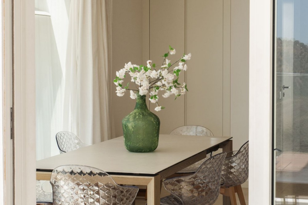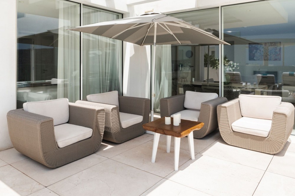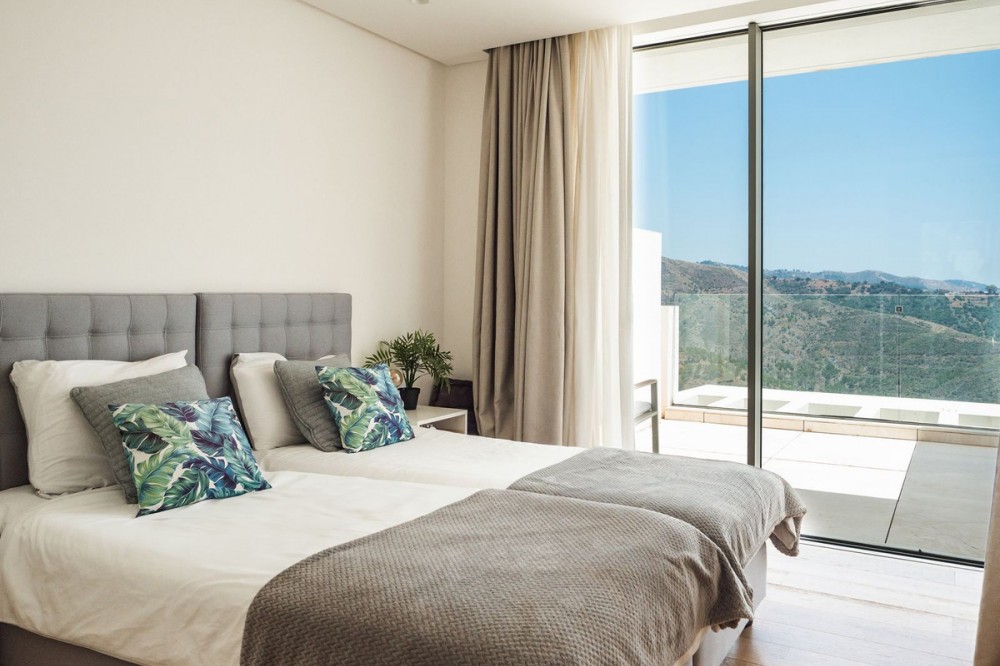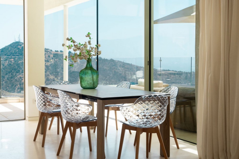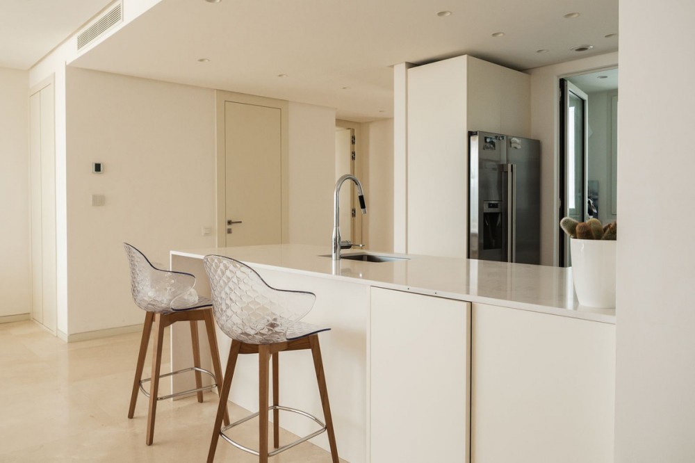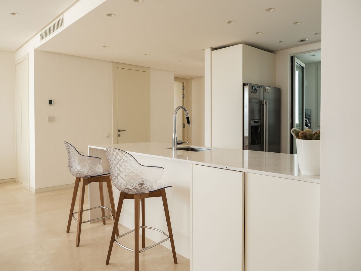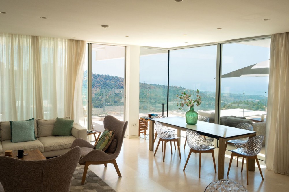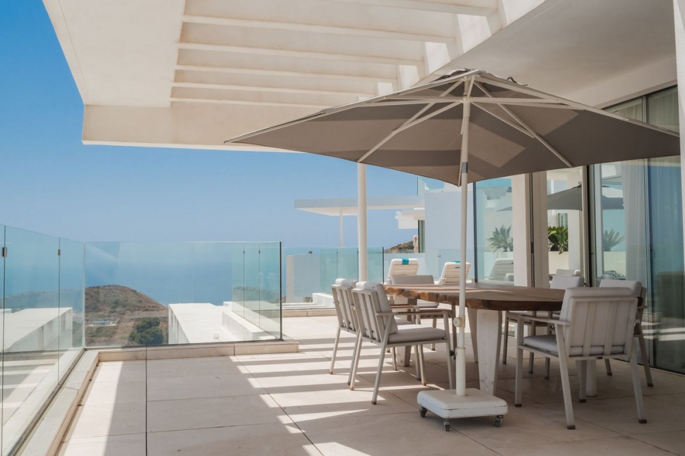 - Discover this stunning duplex penthouse, one of the most exclusive properties currently available in the prestigious resort-style community of Palo Alto. This home stands out for its spacious, elegant interiors and expansive terraces offering breathtaking panoramic views of the Mediterranean Sea and the mountains, with sunshine all day long. Built to the highest standards and completed in 2020, this penthouse combines luxury, comfort, and design. The open-plan living area flows seamlessly into the kitchen and dining space. The kitchen, designed by Gunni & Trentino and equipped with Siemens appliances, has direct access to a convenient separate laundry area. Stepping out onto the main terrace, you are greeted by some of the most spectacular sea and mountain views in Marbella. Every corner offers private seating areas with a great sense of seclusion. This terrace features a private pool and a staircase leading up to the rooftop. On the rooftop terrace, the feeling is akin to being in a private villa. The additional 100 m² of space includes a swimming pool, sun loungers, and a lounge sofa — the perfect setting to relax in complete serenity and luxury. The property offers 3 bedrooms, 2 bathrooms, and 1 guest toilet. The master bedroom, with en-suite bathroom, has direct access to the terrace and a king-size bed facing the sunset. The second bedroom, located on the opposite side of the penthouse, also has terrace access, ideal for enjoying the morning sun. The third bedroom is generously sized with two single beds. These last two bedrooms share a bathroom with a bathtub and toilet. The entire home is equipped with a central air-conditioning system providing both heating and cooling, with individual controls in each room. The price includes two secure underground parking spaces and a storage room, with elevator access directly to the penthouse entrance. Living in Palo Alto means enjoying top-class services: 24-hour security, concierge, tennis court, gym, spa, organic food market, outdoor swimming pools, and countless areas to take in the natural beauty of the mountains and sea. All this is just minutes away from La Cañada Shopping Centre, Puerto Banús, and Marbella town centre.