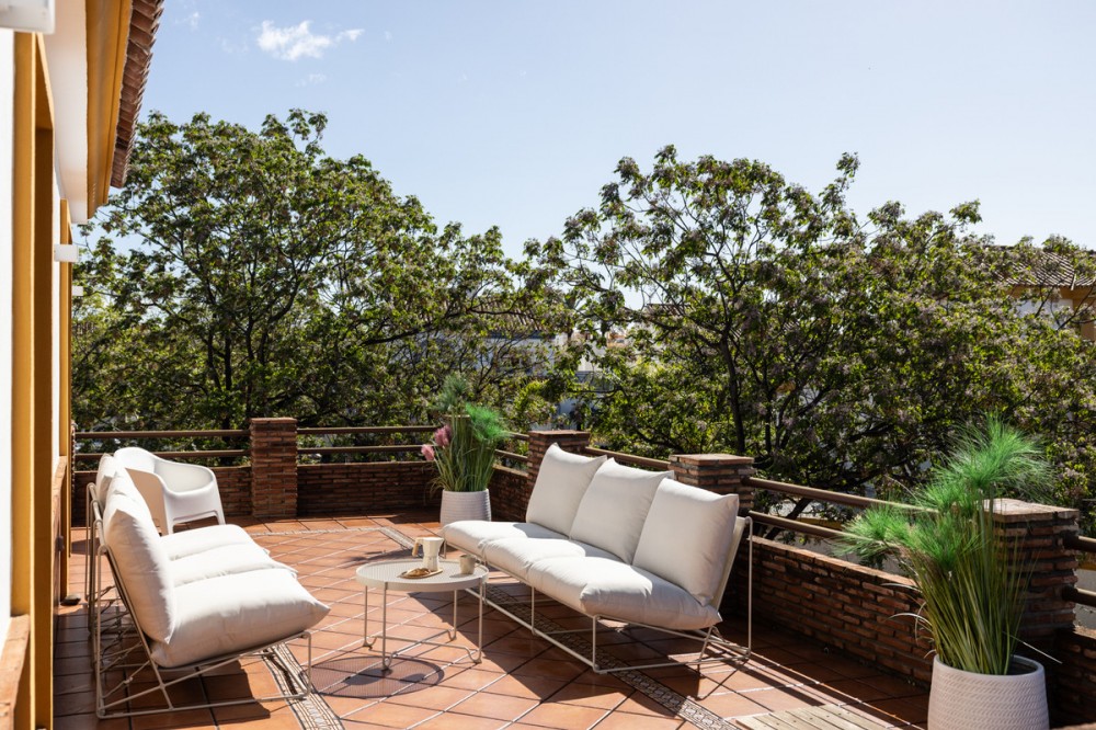 - We are thrilled to present our exclusive listing; an unparalleled opportunity to own an exquisite and modern villa located in the highly sought-after area of San Pedro de Alcantara. Renovated and in impeccable condition, this property epitomizes luxurious living in a tranquil and secure neighborhood. As you step into the villa you are immediately welcomed by a stunning double-height entrance hall, setting the tone for elegance and grandeur. The spacious living room and dining area bathe in natural light, courtesy of expansive glass doors that open to a generous covered terrace, perfect for al fresco dining and entertaining. This exceptional villa features four well-appointed bedrooms and three stylish bathrooms, including two en-suite options, ensuring comfort for families or guests alike. The bathrooms boast high-quality fixtures that exude sophistication, complemented by a convenient guest toilet. Entertainment abounds in this property, with dedicated spaces including a cinema room, playroom, and bar, all designed for memorable gatherings. For the fitness enthusiast, a fully equipped gymnasium awaits, while the spacious garage accommodates two cars with additional driveway space for three more. For those who needs more space, there is a posssibility to extend and have even more space. Set on a substantial 737m² plot, the beautifully landscaped garden, adorned with fruit trees, is a private oasis. The heated pool invites relaxation, while the upper-level terrace offers captivating views over the gardens and shimmering sea, creating the perfect backdrop for breathtaking sunsets. In addition, if you need more space, there is a possibility to built some more rooms easily. Location is paramount, and this villa excels with its proximity to the city center, beach, diverse restaurants, shops, playgrounds, and schools—all within walking distance. Renowned for its peaceful atmosphere, this area is undoubtedly ideal for those seeking a harmonious lifestyle. Seize this opportunity to own a luxurious villa that redefines elegance and comfort. Whether as a family residence or a vacation retreat, this property is an exceptional find. Don’t miss out—schedule your viewing today!