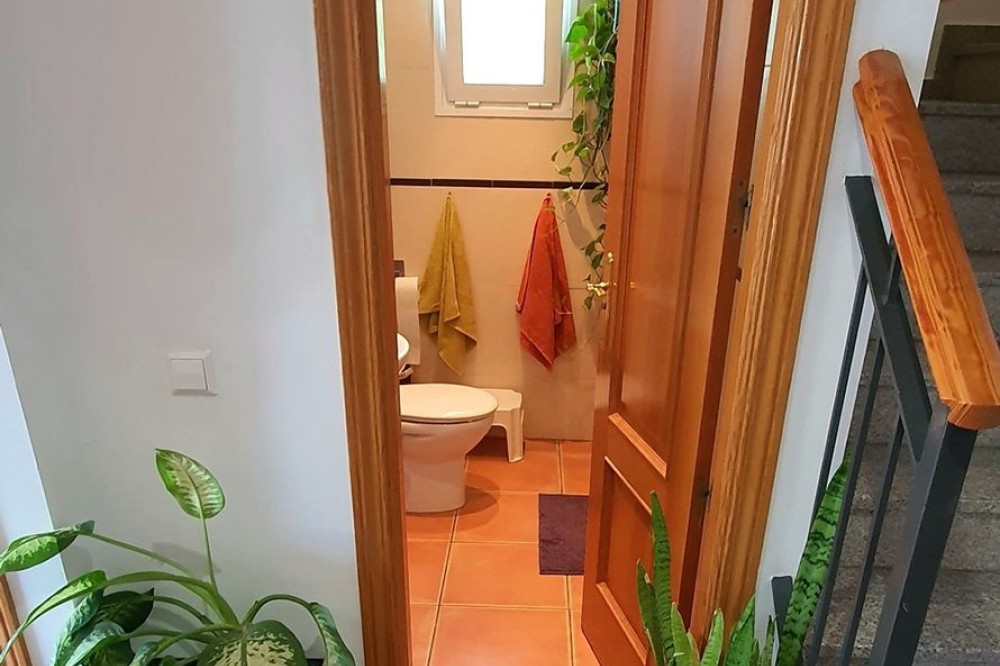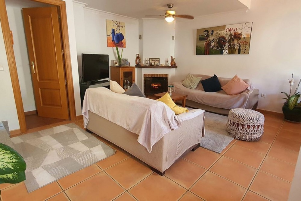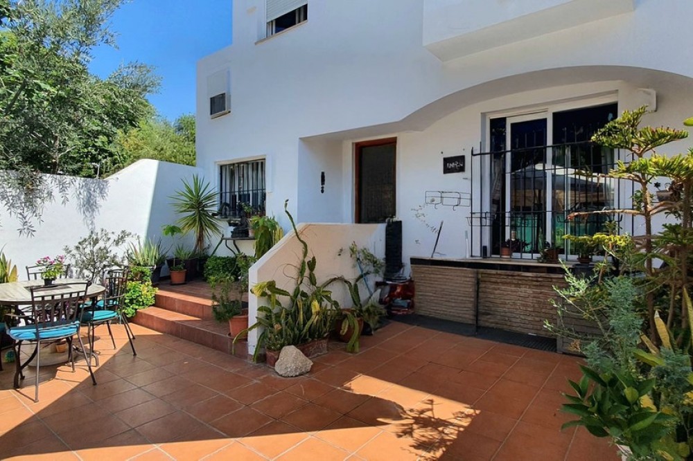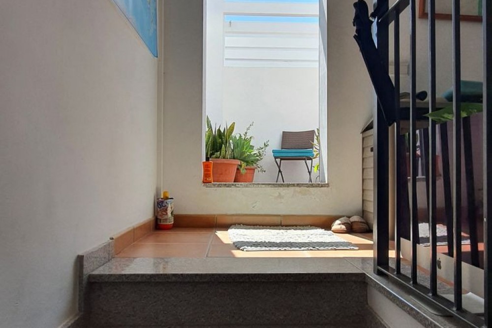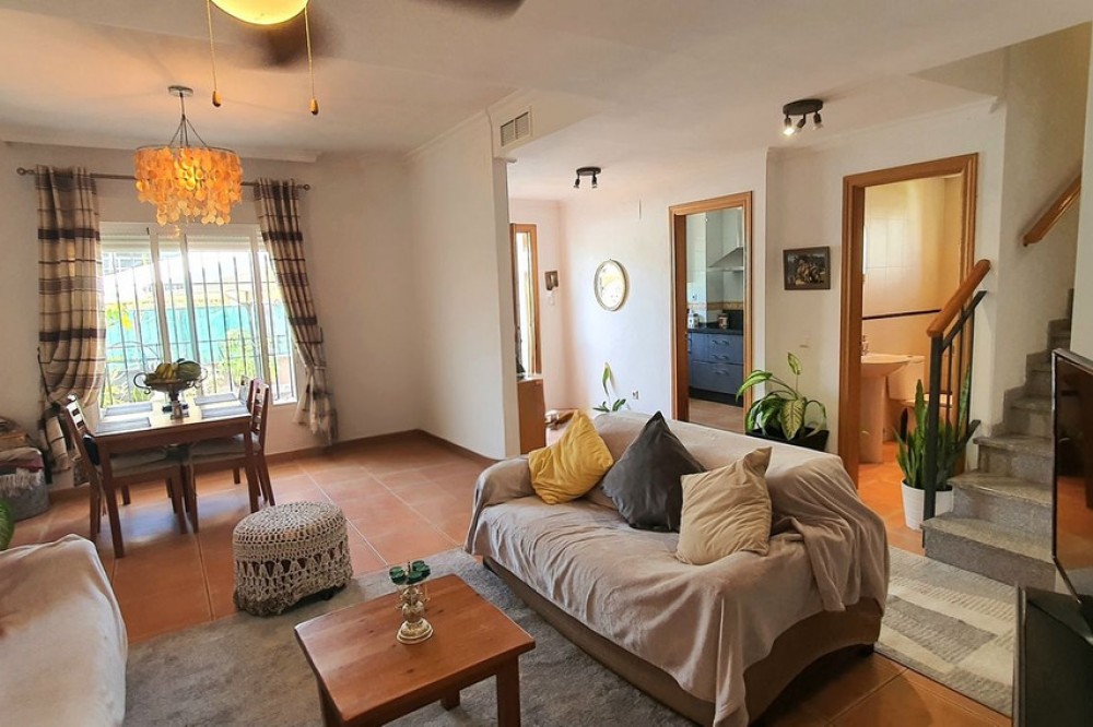 - This exceptional large corner townhouse offers space, comfort, and versatility for the entire family. On the lower level, you’ll find a generous 52 m² entertainment room, ideal for conversion into a guest apartment, gym, games room, or private home cinema. At the entrance, a welcoming terrace leads you up just two steps to the main door, opening into a spacious and inviting living room complete with an atmospheric fireplace. The dining area conveniently connects to the kitchen, offering the potential to create a modern open-plan kitchen and lounge. A guest bathroom is also located on this floor. The first floor features three well proportioned bedrooms, including a primary bedroom with its own en-suite bathroom. On the next level, you’ll find a versatile space perfect for a private office or creative studio. From here, step out onto your large L shaped roof terrace, where its south facing orientation ensures sunshine and views throughout the day. Additional benefits include a private carport for secure parking, as well as access to a spacious communal swimming pool the perfect spot to refresh and unwind. Located in the sought after Torreblanca area, all essential amenities are within easy reach. The train station is just a five minute walk, and the beach is only minutes away. This property offers exceptional potential to become the perfect family home, all within walking distance to shops, services, and the sea. Contact us today to arrange a viewing and experience this remarkable property for yourself.