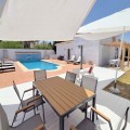- ***Stunning Character Villa in Princesa Kristina, Duquesa*** Nestled in the desirable residential area of Princesa Kristina, Duquesa, this exceptional character villa offers elegant living with a perfect blend of traditional charm and modern comforts. From the moment you enter the grounds, you’ll be captivated by the villa’s beauty and thoughtful design, with delightful details around every corner. A spacious driveway provides ample parking for multiple vehicles, while a charming pathway leads to a welcoming internal courtyard and sweeping staircase to the upper level. Inside, the ground floor opens to a generous open-plan living and dining area, featuring oversized patio doors with electric shutters that flood the space with natural light and open out to the west-facing garden. Down the hall is a stylish guest bathroom with a walk-in shower and a beautifully presented guest bedroom complete with contemporary open-plan wardrobe space. The kitchen has been renovated to an exceptional standard, fully equipped with top-of-the-line appliances and high-quality finishes. Adjacent to the kitchen is a practical utility/laundry room for added convenience. On the east wing of the villa, you’ll find another well-appointed bedroom and the main bedroom suite, which includes patio doors leading to a private outdoor area, electric shutters, a walk-in wardrobe, and a luxurious en-suite bathroom. From the central courtyard, an elegant staircase leads to the upper floor, where two additional bedrooms await. Each has its own en-suite bathroom and private terrace, offering breathtaking views of the surrounding countryside and mountains. Step outside and discover an oasis designed for outdoor living. The villa boasts a south-facing, heated private pool and multiple terraces and garden areas to relax, entertain, and enjoy the Mediterranean lifestyle. Additional features include full air-conditioning throughout and high-quality furnishings including a hot tub — the property is being sold fully furnished, ready for you to move in and enjoy.