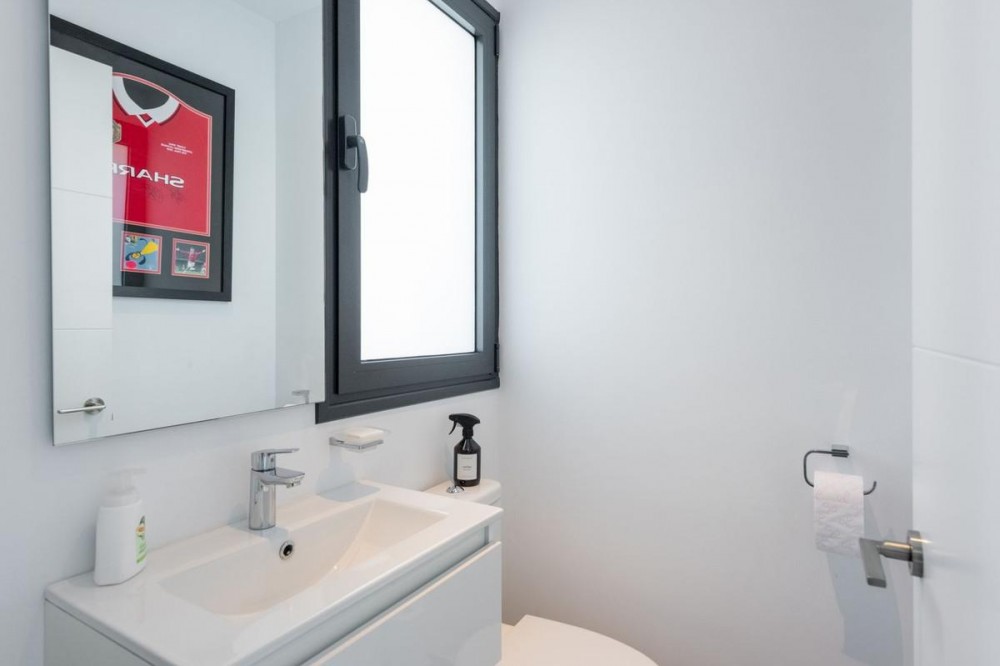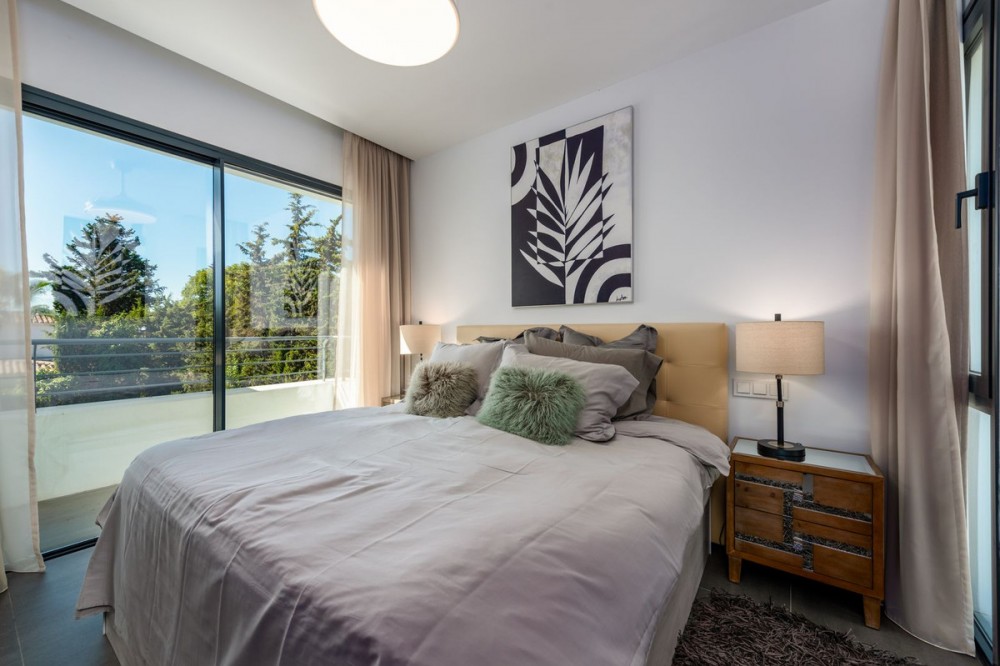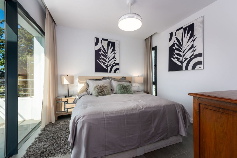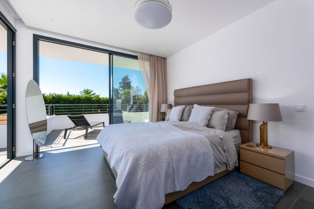 - Modern beachside Villa for sale on the New Golden Mile between Marbella and Estepona Discover this modern luxury villa for sale in the New Golden Mile, Estepona, perfectly located between Marbella and Estepona on Spain’s exclusive Costa del Sol. This perfect double height ceilings contemporary villa boasts 4 double bedrooms each with its own ensuite bathroom . The property stands on a large plot, with lots of privacy, walking distance to the beach near Casasola on the Estepona New Golden Mile area, closest to Marbella than Estepona. The property is in Atalaya beachside community within walking distance to all amenities: supermarkets, restaurants, shops..but sits in a very quiet residential neighbourhood. This contemporary property is just a short walk from the beach and close to world-class golf courses, international schools, shops, and fine dining, offering the ultimate Mediterranean lifestyle. Set on a generous 1,140 m² private plot, this contemporary villa boasts 430 m² of built space on 2 floors, the open-plan design floods the interiors with natural light, with large floor-to-ceiling windows and seamless indoor-outdoor living. Key Features of this Villa in Marbella – Atalaya Casasola area: Modern fully fitted kitchen with high-end appliances with separate laundry utility room. One guest bedroom and its bathroom is located on the ground floor perfect for people with reduced mobility. Guest toilets can be found on the ground floor in the entrance hall as well. The 3 other suites are on the upper floor. The master suite and one other guest bedroom enjoy a spacious joint open terrace, overlooking the magnificent garden and pool. Bright open-plan living and dining areas with double height ceiling, leading to a huge covered terrace, a wooden deck and walkway to the 40m pool. Lots of storage space and built in wardrobes. South, South West, South East orientation for all-day sunshine. The private swimming pool & landscaped Mediterranean garden are immaculate and easy to maintain. The owners added lots of very nice and intelligent features such as outdoor terrace fans, night lights with automatic switches, outdoor ground plugs in various ingenious places, a filtered water tap in the open modern kitchen, which switches between ice cold, boiling hot and fizzy water, Solar hot water system, and much more which make everyday life easy and well organised. The outdoor private parking space for 2 cars thru the automatic gate opens to the walkway leading to the main entrance door and its magnificent ancient Olive Tree. This contemporary villa is 10 minutes drive to Marbella town, 15 minutes to Estepona and 45 minutes to Malaga airport. Designed for comfort, elegance, and functionality — ideal as a family home, holiday residence, or rental investment. A stunning property perfect for a family and ready to move in nice and easy, Start enjoying the lifestyle this property offers right away without cumbersome renovations. The designer furniture is negotiable. Rare opportunity at the very attractive price of 1,995,000.00€.