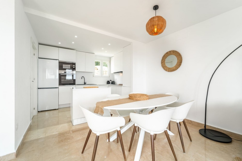 - The Perfect Family Escape — Sunshine, Sea Views & Style. Discover the perfect blend of modern comfort and natural serenity with this beautifully renovated, three-bedroom, three-bathroom penthouse duplex . This stunning property offers an exceptional living experience, situated within a peaceful, gated community surrounded by lush landscapes and just a short walk from vibrant beach life. Key Features & Amenities Generously Proportioned Living: The spacious, open-plan layout is perfect for families, providing a seamless flow from the living area to a large, sun-drenched terrace. Panoramic Vistas: Enjoy incredible, uninterrupted sea and mountain views from two private, south and southwest-facing terraces, creating the perfect backdrop for morning coffee or sunset cocktails. Gourmet Kitchen: The fully fitted kitchen features sleek, modern appliances, making meal preparation a delight for any home chef. A Retreat into Nature: Relax and unwind in a tranquil setting with access to three sparkling communal swimming pools, set within meticulously maintained gardens. Peace of Mind: Live securely in a safe, gated complex, providing comfort and privacy for you and your loved ones. Thoughtful Layout The ground floor boasts an inviting open-plan living area that seamlessly opens onto a large south-facing terrace. This level also includes a modern, fully fitted kitchen, a full bathroom with a walk-in shower, and a bedroom with direct terrace access. The upstairs is dedicated to two additional bedrooms and two bathrooms. The primary bedroom features its own en-suite bathroom, while the second bedroom has a separate full bathroom with bath. Complemented by a private, southwest-facing terrace, offering a personal sanctuary with stunning views. Effortless Convenience Just a 10-minute walk brings you and the family to the stunning local beaches, as well as charming beach bars and restaurants. A quick 5-minute drive to the lively Duquesa Marina and 15-minute drive to both Estepona and Sotogrande Marinas, offering plenty of activities for all ages. Effortless Travel: Conveniently located just 35 minutes from Gibraltar Airport and 55 minutes from Malaga Airport. Making travel easy for visiting family and friends. A World of Leisure: Marbella is only a 30-minute drive away, putting world-class shopping, dining, and nightlife within easy reach.
